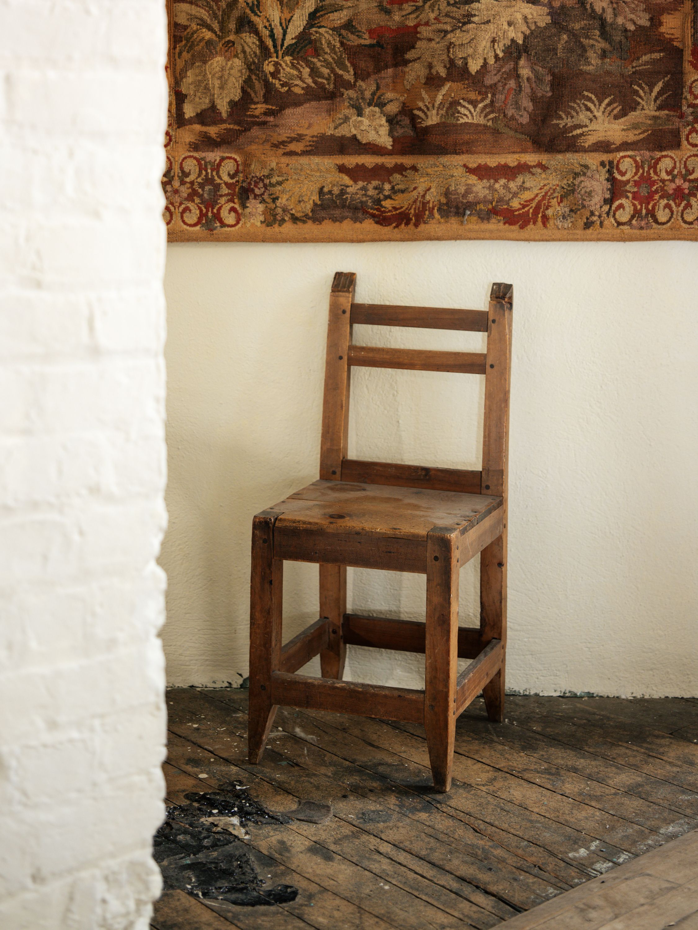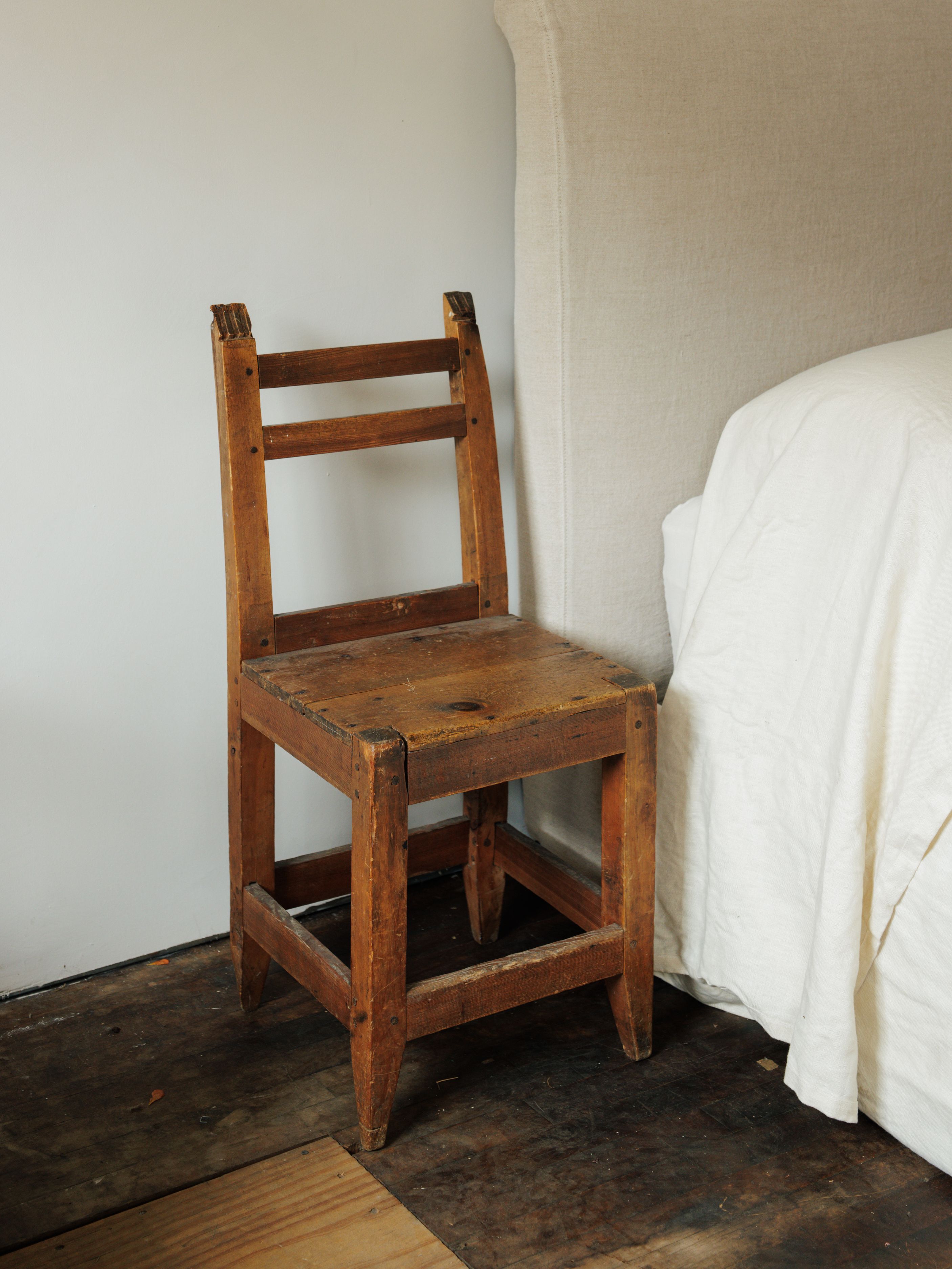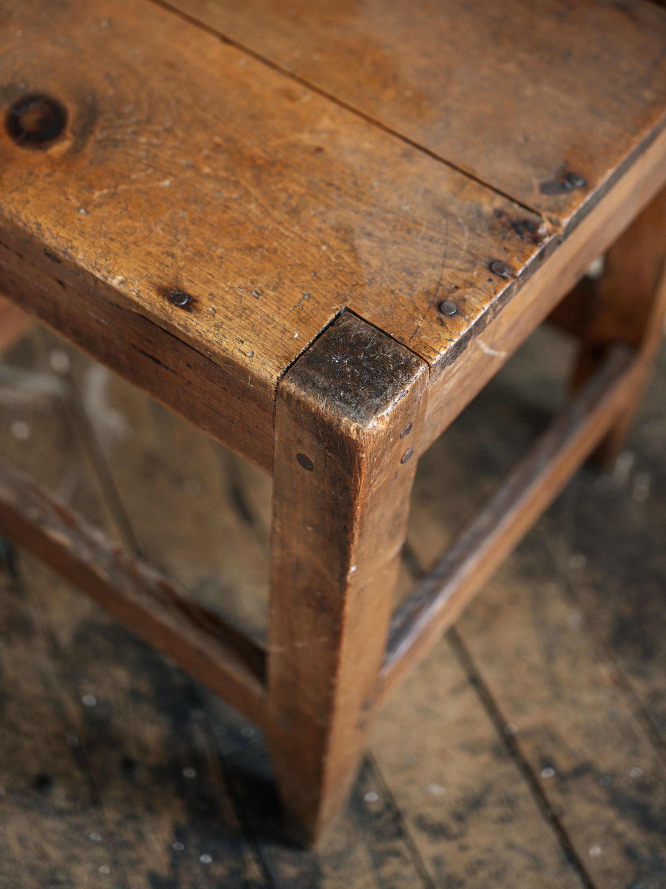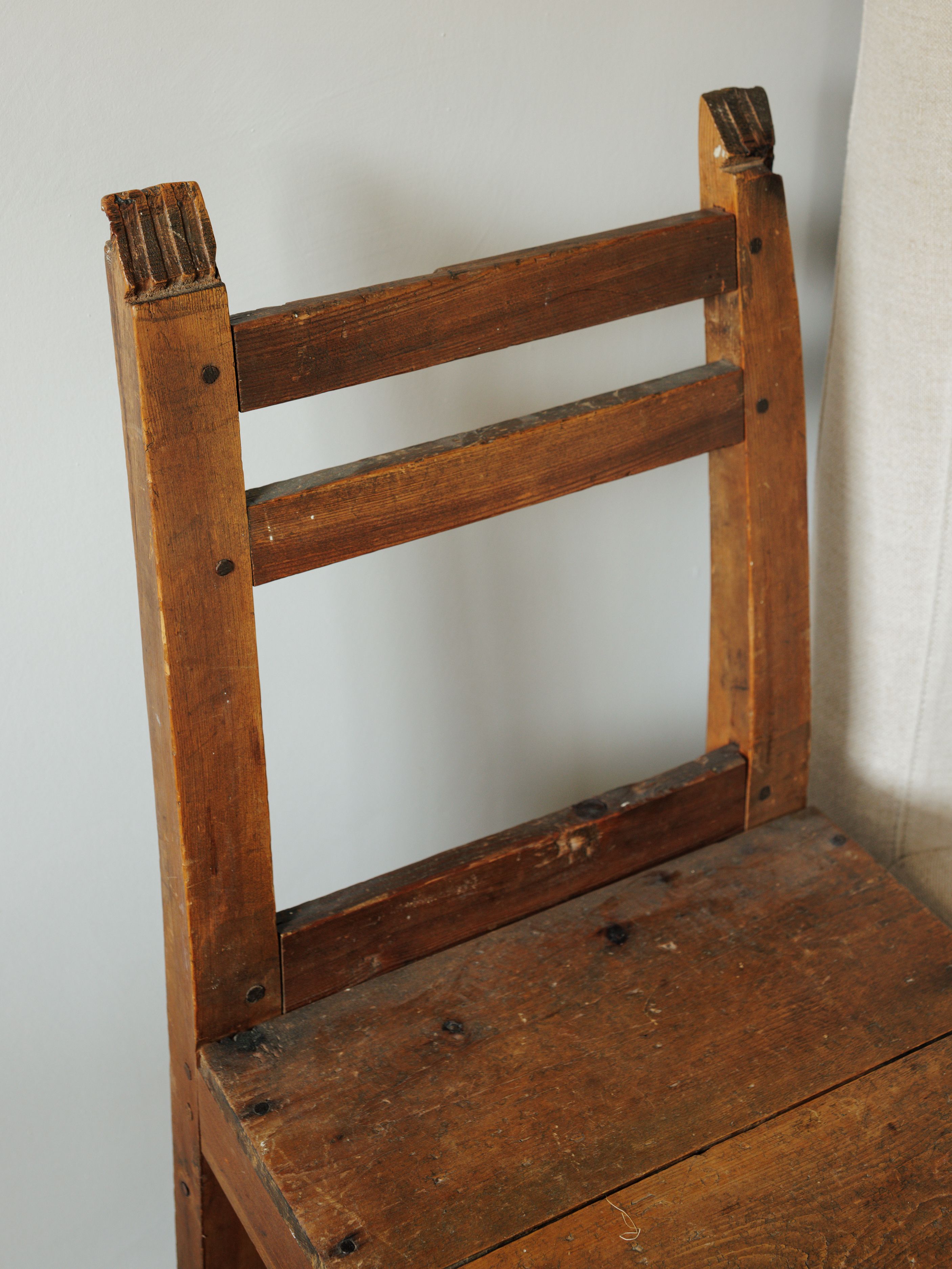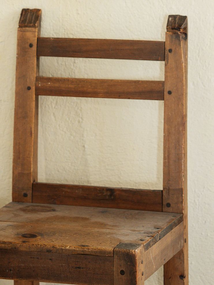 Dear collector, this little guy has a side to side wobble and some visible repairs and nails on the seat, but it functions perfectly.