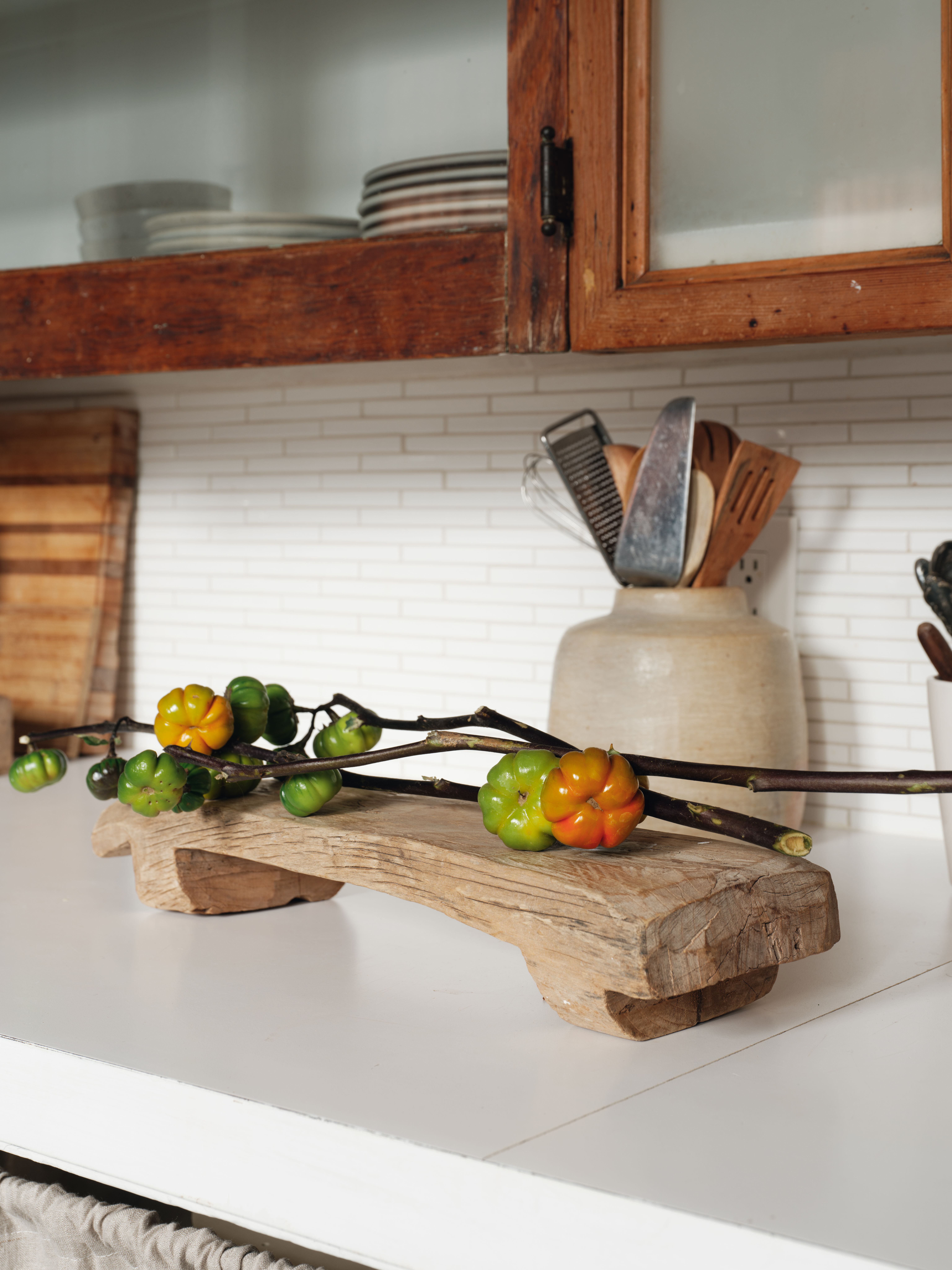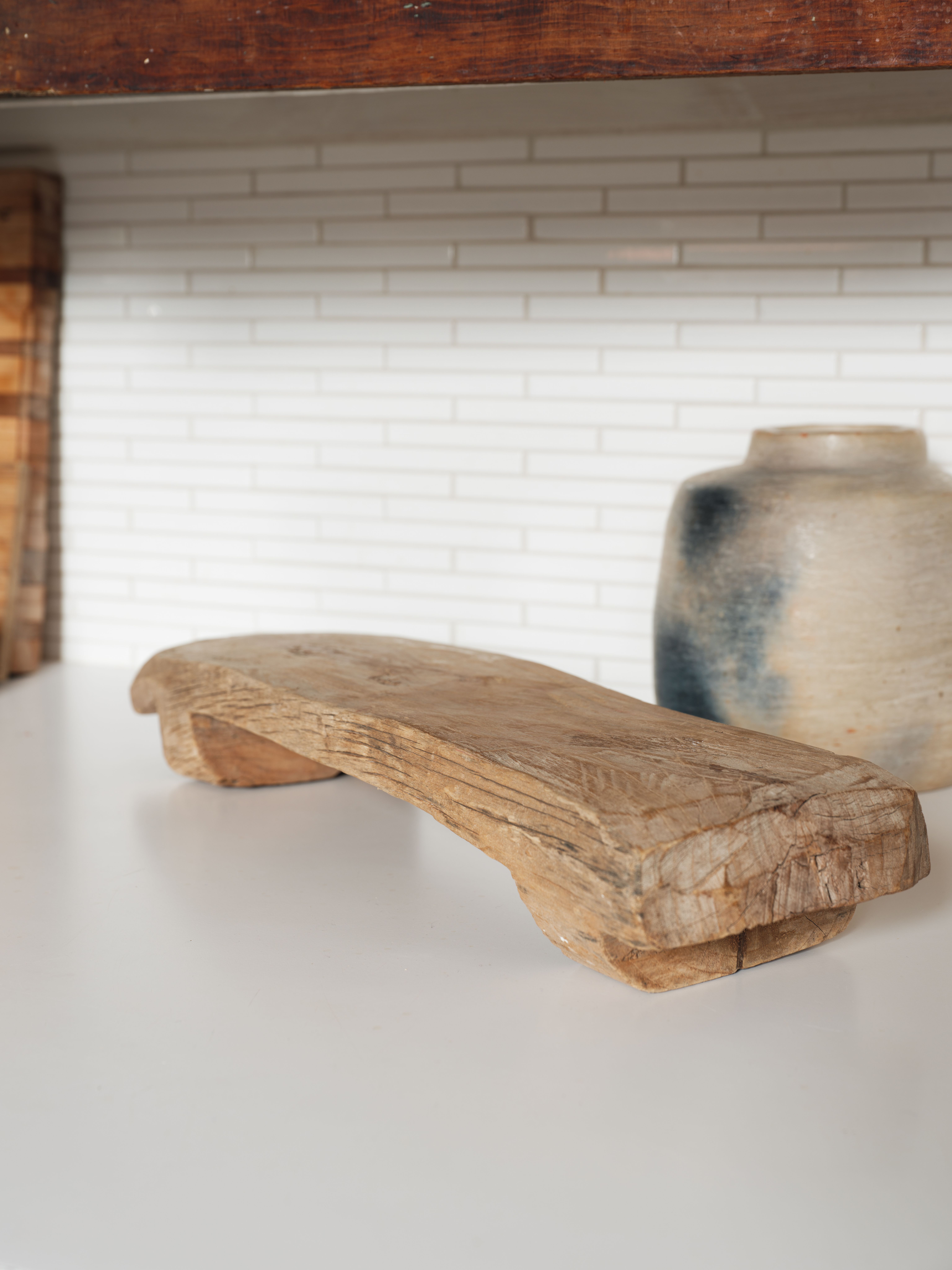 Long ago, the vintage Bajot Board was a cherished item in India, used for spiritual offerings or as a unique dining surface. Each of Berbere's handpicked Bajot risers tells its own story, carefully selected for their unparalleled craftsmanship. This particular piece stands out as one of our most versatile finds, perfect for adding height and texture to any tabletop in your home.