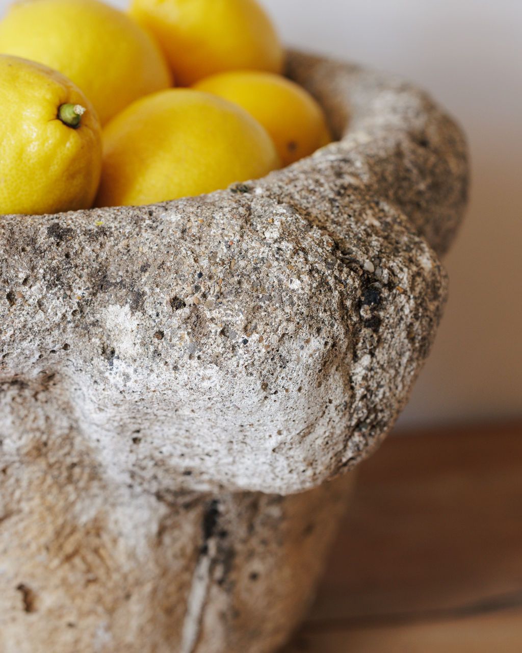 If there is one thing about Sylvie, she loves an animal motif. This weathered and worn stone pot, thought to be a garden pot dating back to the early 20th century has faint traces of a ram's head. Sylvie loves placing it on her coffee table, filled with greenery or a simple pillar candle.
