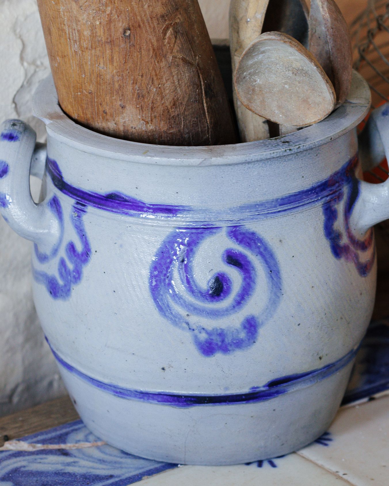 This Alsace salt-glazed ceramic pot has us swooning. Handmade in the late 19th-century, this beauty embodies Alsace's rich French-German heritage. The delicate blue and grey hues are sure to bring your neutral kitchen to life. Sylvie loves using it as a charming piece for storing utensils or as a decorative piece on your carefully curated shelves.