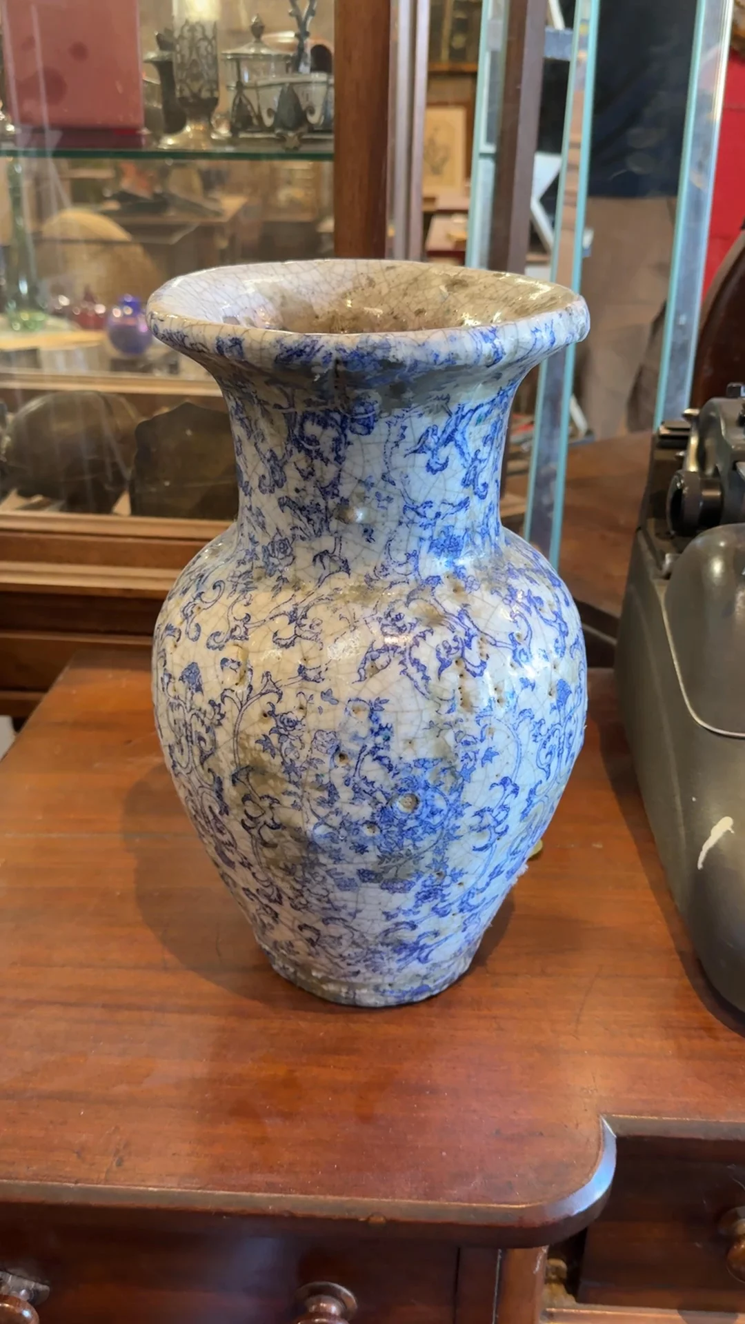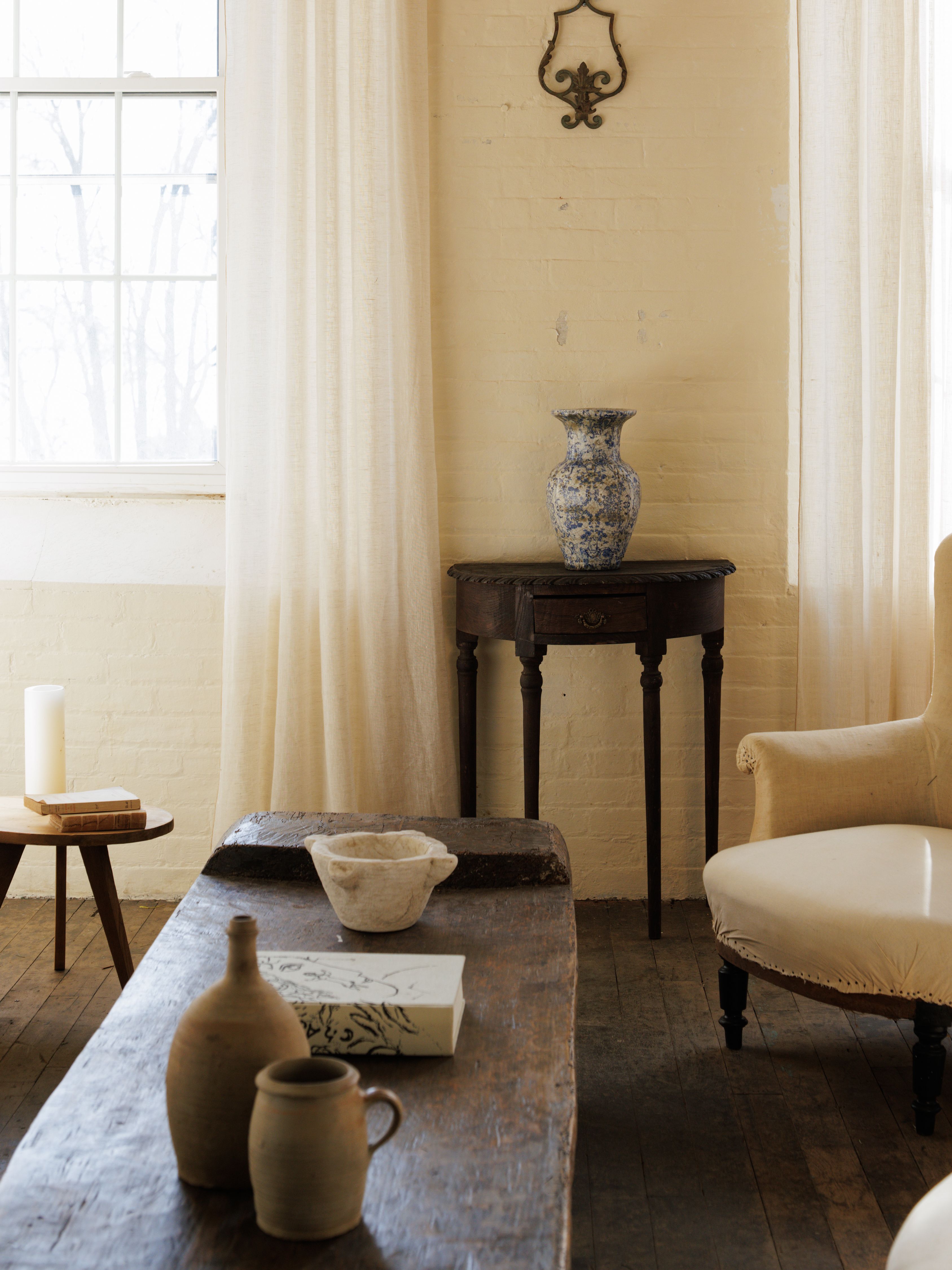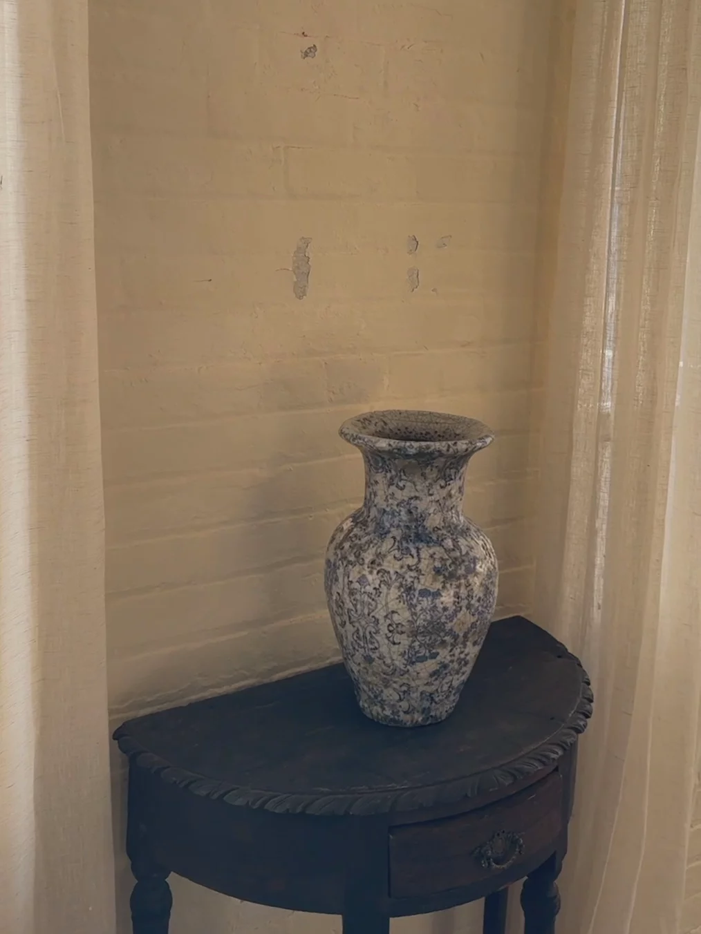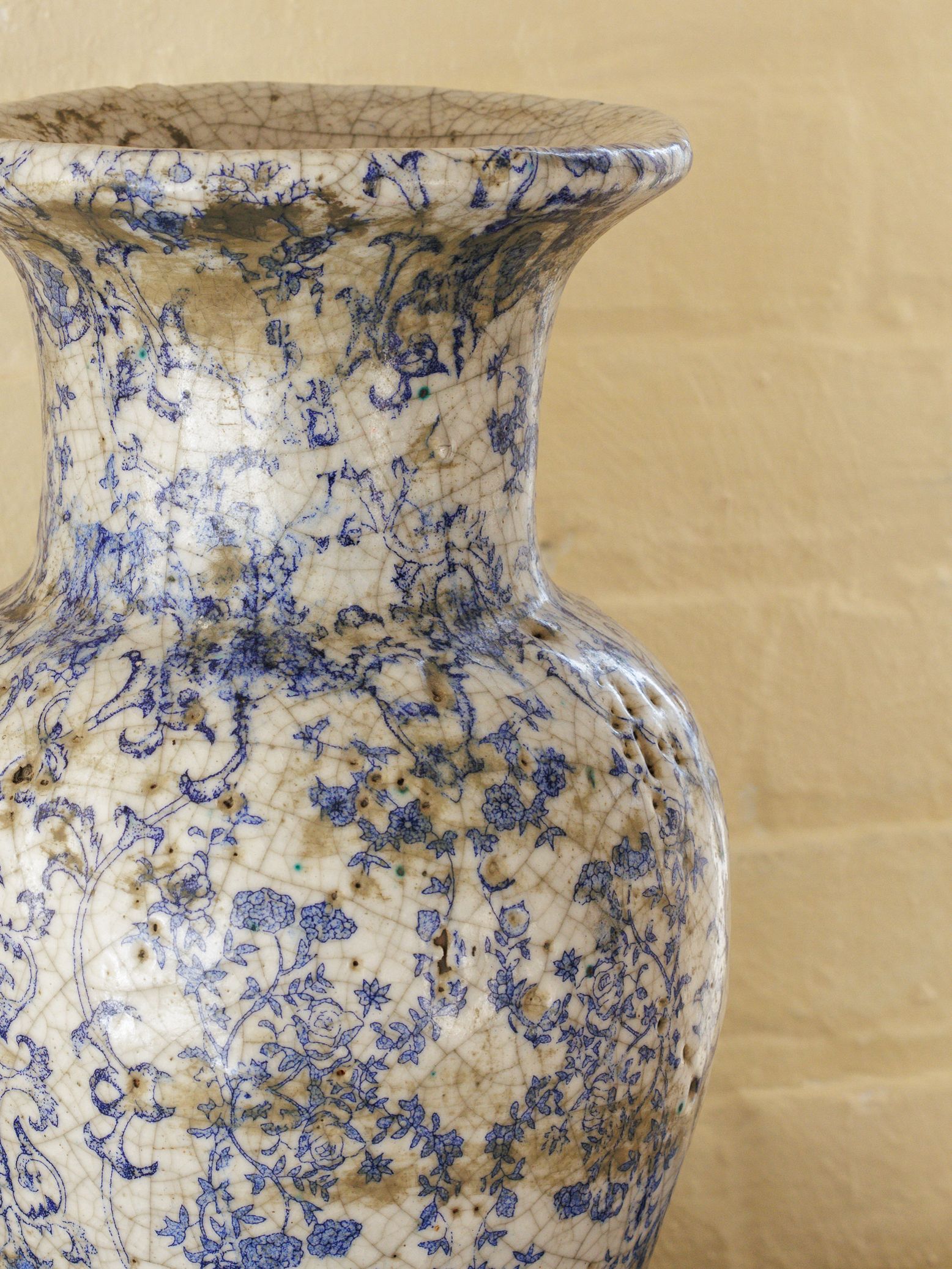 Sylvie hesitated to part with this beauty. A rare French chinoiserie glazed ceramic vessel, its cracked glaze tells a story of age and beauty. Though its exact history remains a mystery, one can imagine it gracing a French farmhouse, patiently waiting for its next caretaker. Hand painted with intricate motifs, this exquisite piece is ideal for showcasing freshly cut branches or standing boldly on its own.