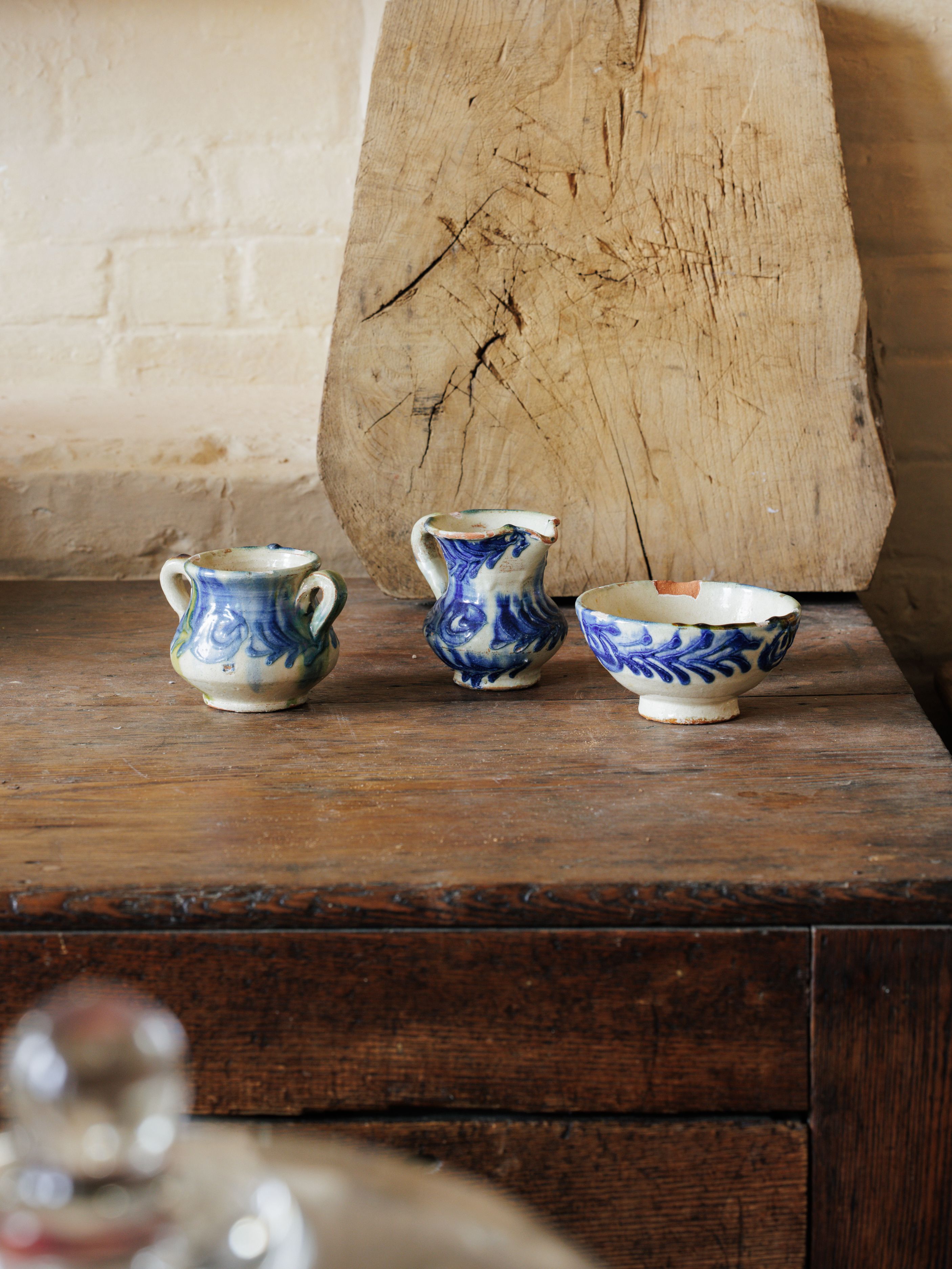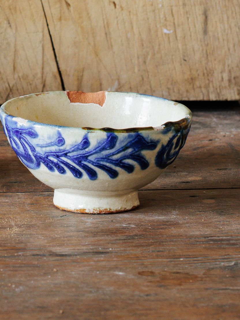 This Spanish Fajalauza tea set, found in Avignon, is steeped in history and artistry. Originating from Granada, Fajalauza pottery is highly sought after for its hand-painted designs inspired by Moorish traditions. These pieces feature the iconic blue and white glaze and a traditional pomegranate motif—a symbol of Granada itself. Sylvie loves using this set during quiet morning moments and then styled on open shelving especially in the kitchen. Known for their collectible appeal, they’re a rare glimpse into the centuries-old craftsmanship of the potters who worked near the Fajalauza Gate in the Albaicín district.