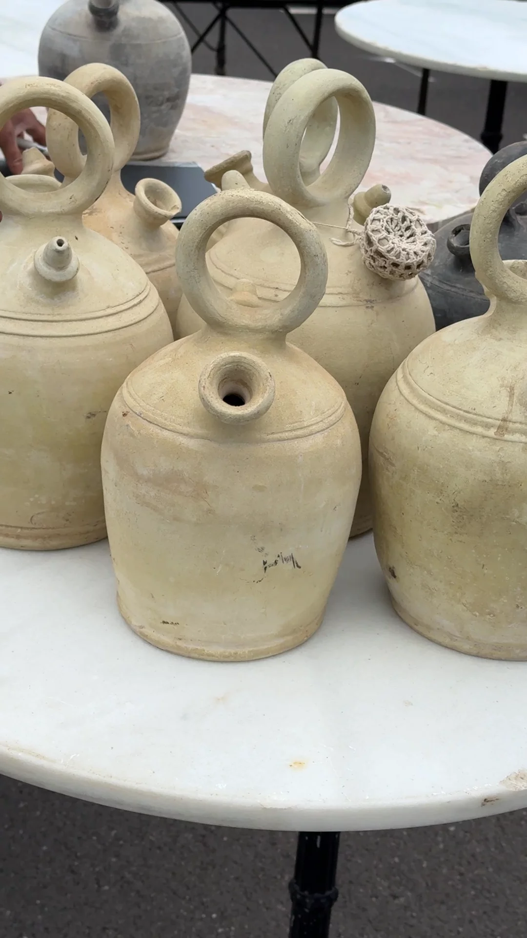 This matte cream-colored botijo—a traditional Spanish water vessel—is one of our favorite vessels. Crafted from porous clay, the botijo naturally cools water through evaporation, providing refreshment even in the heat of summer. Its distinctive form, with a wide belly and dual spouts, make it a true conversation starter. Perfect to stage on top of a stack of books, or as a beautiful object displayed on your coffee table.