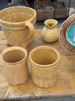 This antique Savoie jug, unearthed in Avignon, is a testament to the rich pottery traditions of the Savoie region in southeastern France. Crafted in the 19th century, it features a distinctive marbled glaze known as "jaspé," characterized by swirling patterns of earthy tones - deep browns, warm ochres, and subtle creams. It once likely served as a household vessel for water or wine. Sylvie loves to display this piece on the kitchen shelf, or used as a vase for fresh blooms.