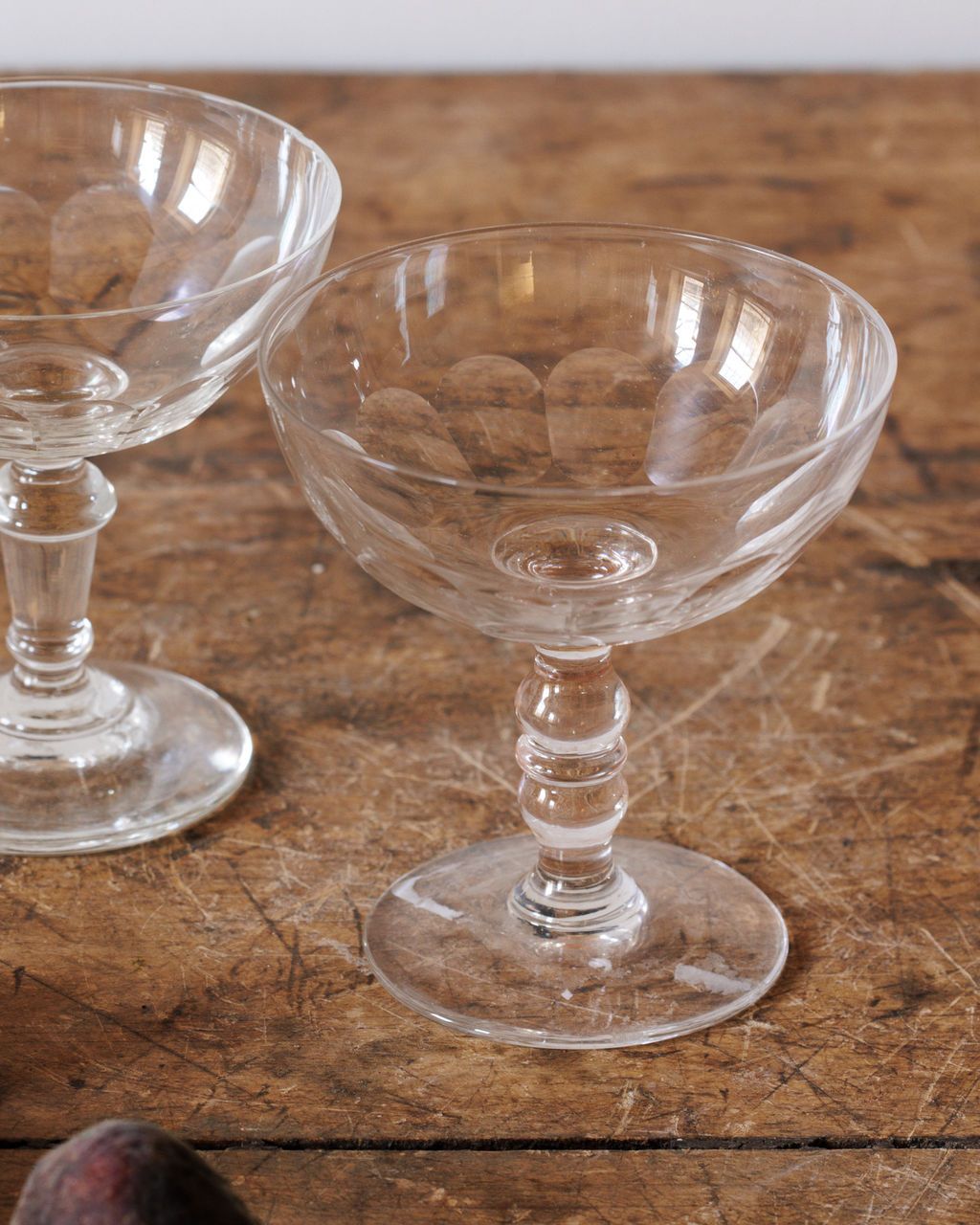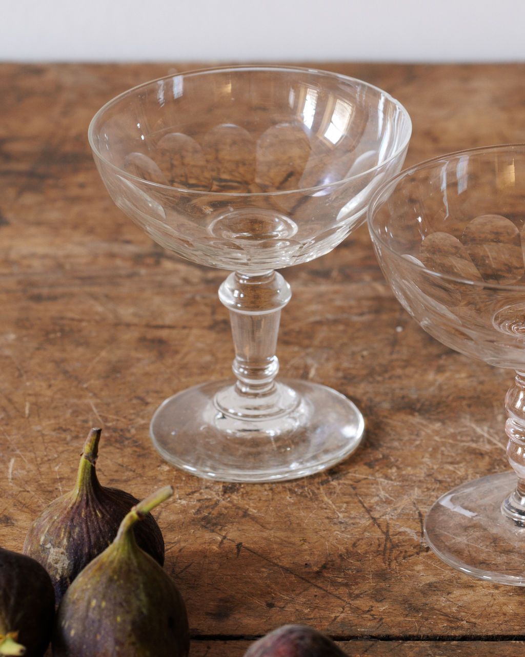 Originally from a private collection in Provence, Simon welcomed Sylvie into his bastide to take her pick. These champagne coupes follow the classic French shape that first appeared in the 18th century, when glassmakers believed a wide, shallow bowl made bubbly livelier and more festive. Legend claims the form was modeled after the breast of a French aristocrat, a tale that survived simply because it delighted people. Originally used for sparkling wine at salons and lively gatherings, Sylvie likes them now in sets of two or four for celebratory evenings at home when a cold bottle and good company are all you need.