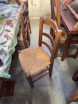 A true French classic. This set of four rush-seated chairs, discovered in Marseille, brings that effortless, lived-in warmth only vintage pieces can offer. Crafted in the mid-20th century, their mid-tone wood frames contrast beautifully with the tightly woven rush seats—each one in remarkable condition. Finding a full set like this is no easy feat, making them an ideal addition to a dining space or breakfast nook.