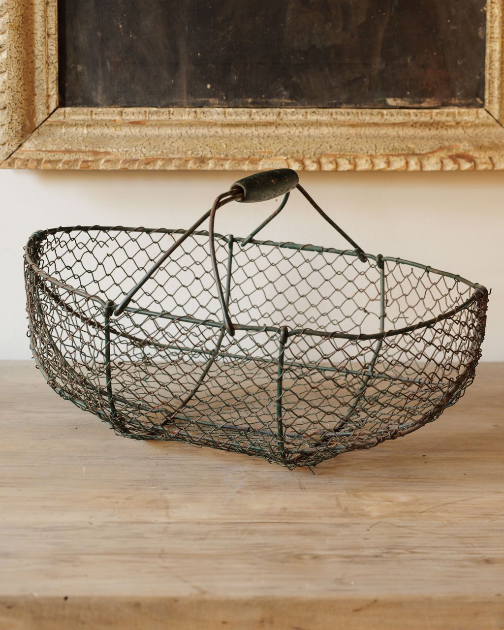 The basket that never stops being useful. Found in Barjols and once used on a nearby farm for gathering vegetables and fruit, this metal harvesting basket has a wooden handle worn smooth from years of work. Its open wire frame makes it light to carry and beautiful to look at- practicality made charming. Sylvie can’t live without these, using them for everything from market hauls to storing linens or citrus on the counter. Always at home in motion, always ready to be filled.