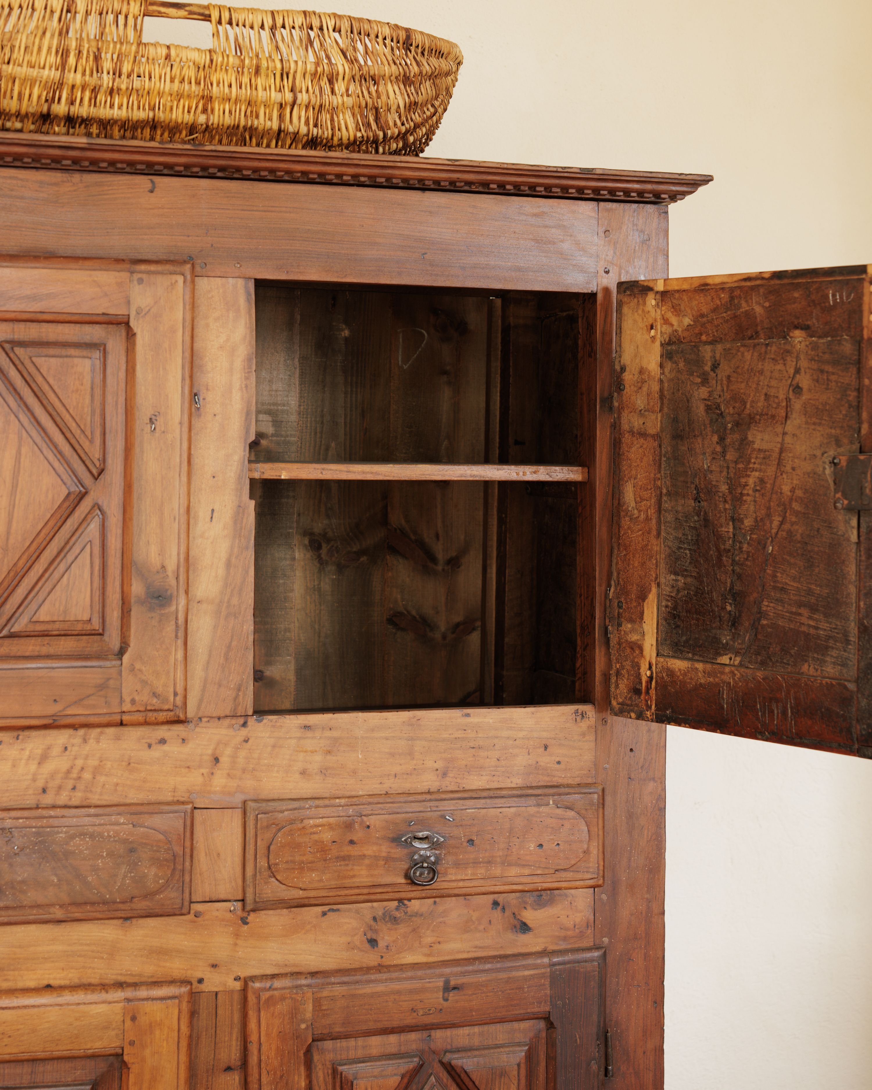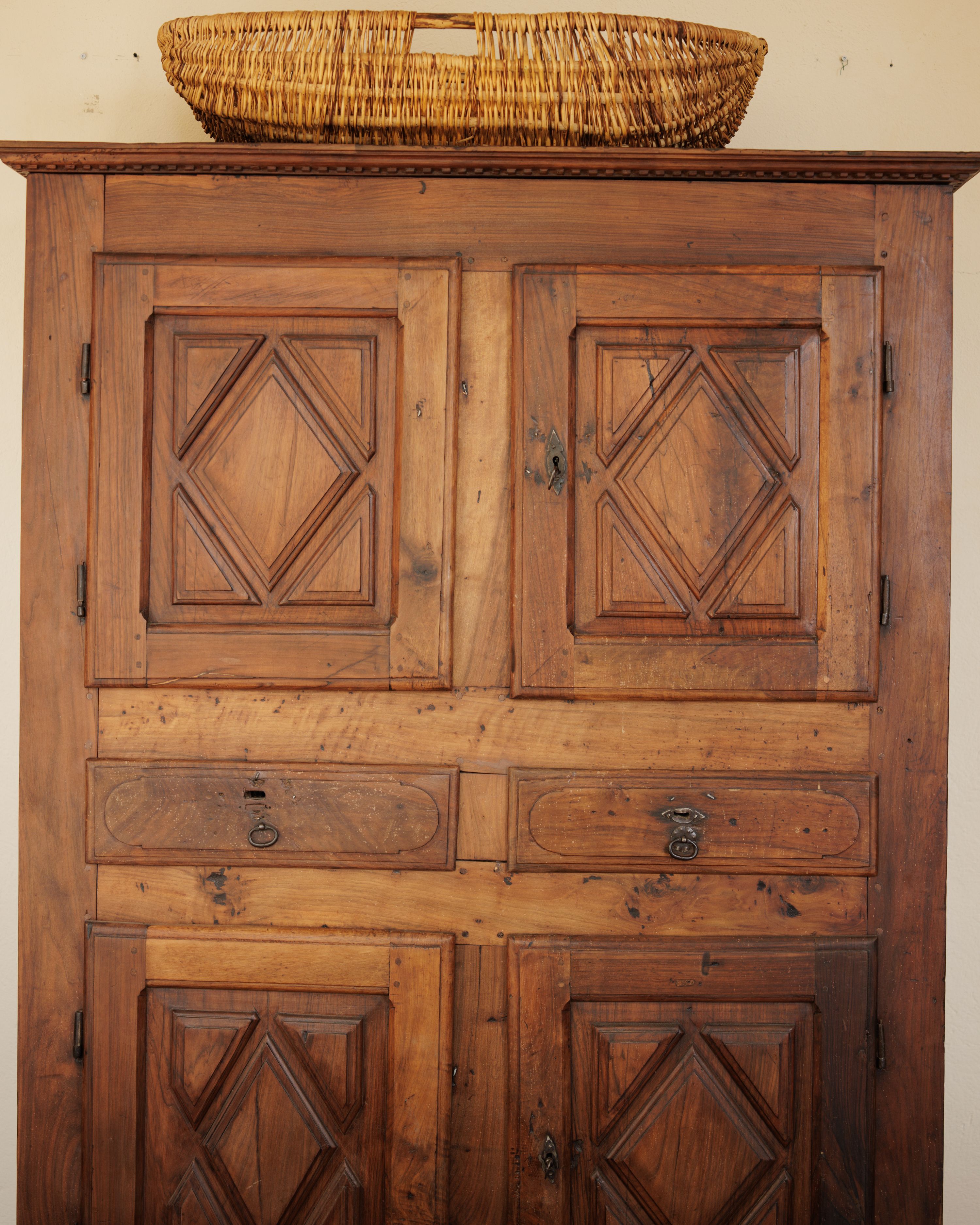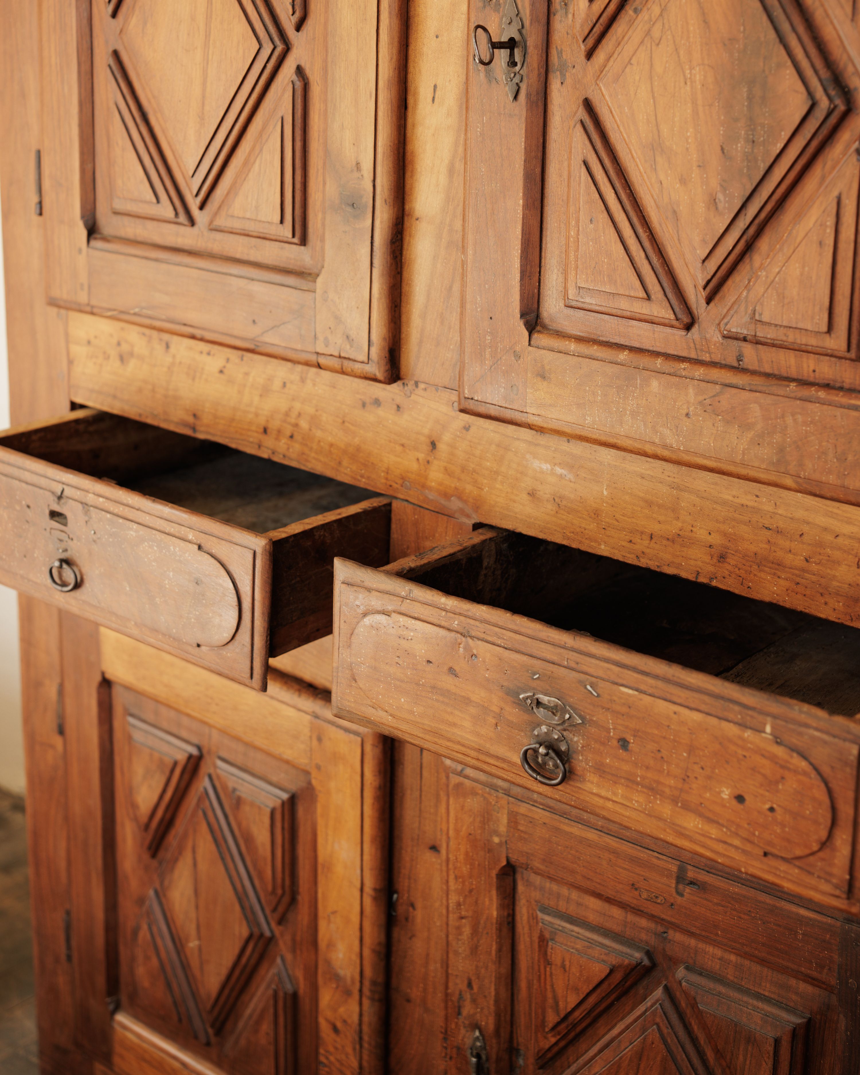 Jaw dropped. A true rarity, and one of Sylvie’s most exciting finds this season. This 17th-century Louis XIII-style cupboard, discovered in Barjols, is a remarkable example of early French furniture—defined by its geometric panels, solid oak construction, and a departure from Renaissance ornamentation in favor of bold, architectural simplicity. Pieces like this are incredibly difficult to source in such beautiful condition, especially with working hardware and the original key intact. The cupboard’s dual-door and drawer design speaks to its utilitarian roots, likely used to store everything from linens to serving ware in a well-appointed home. We were going to keep this one for ourselves...