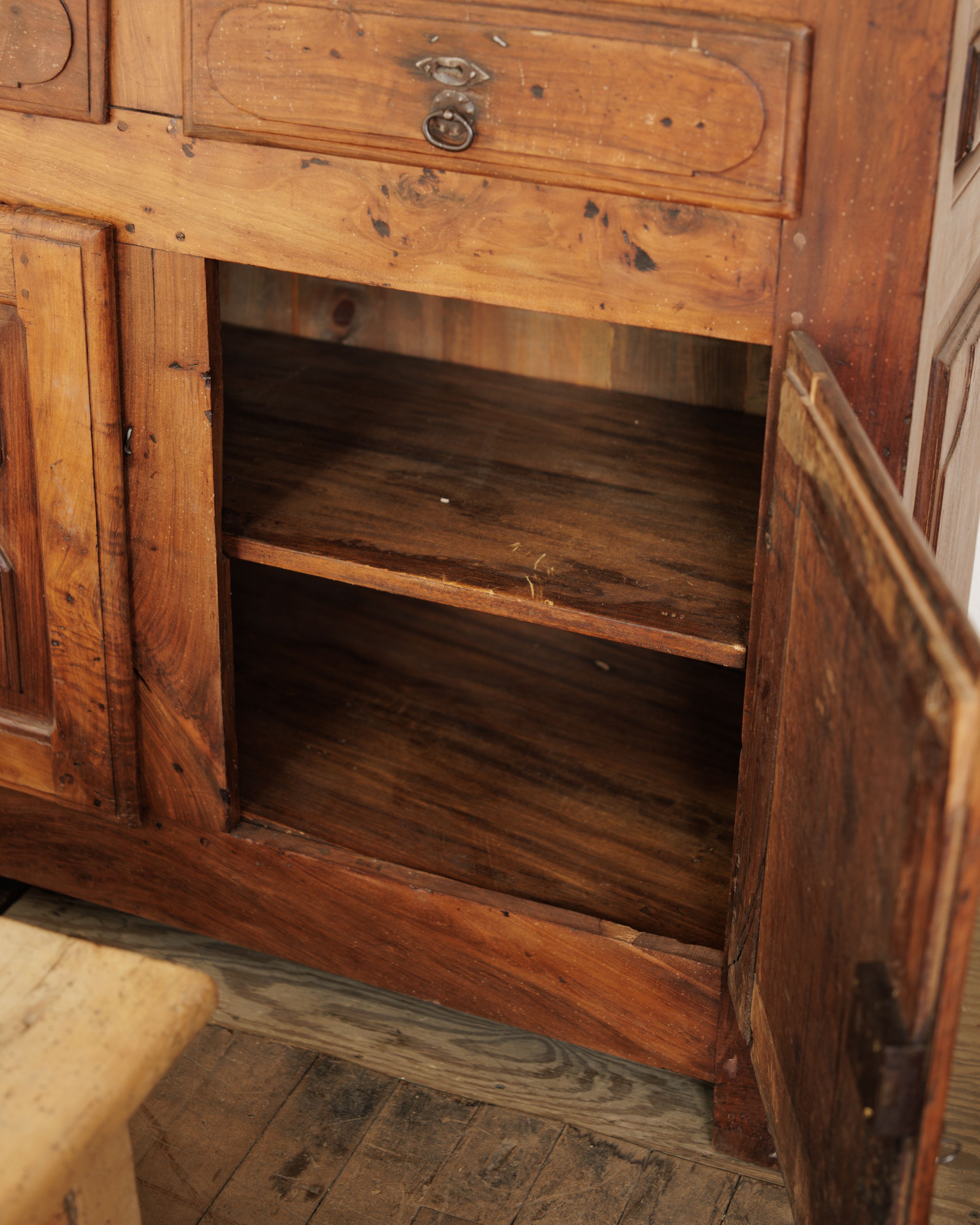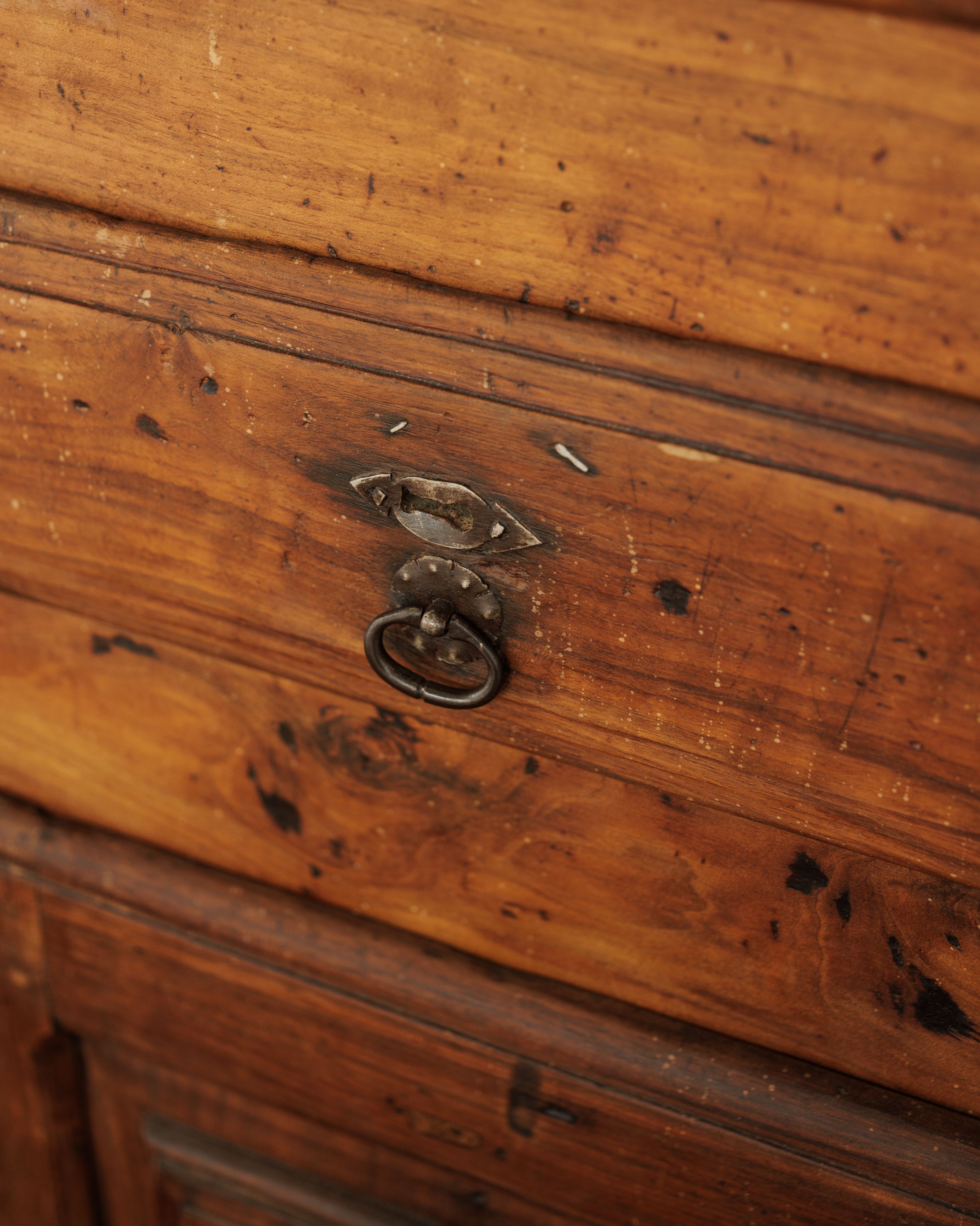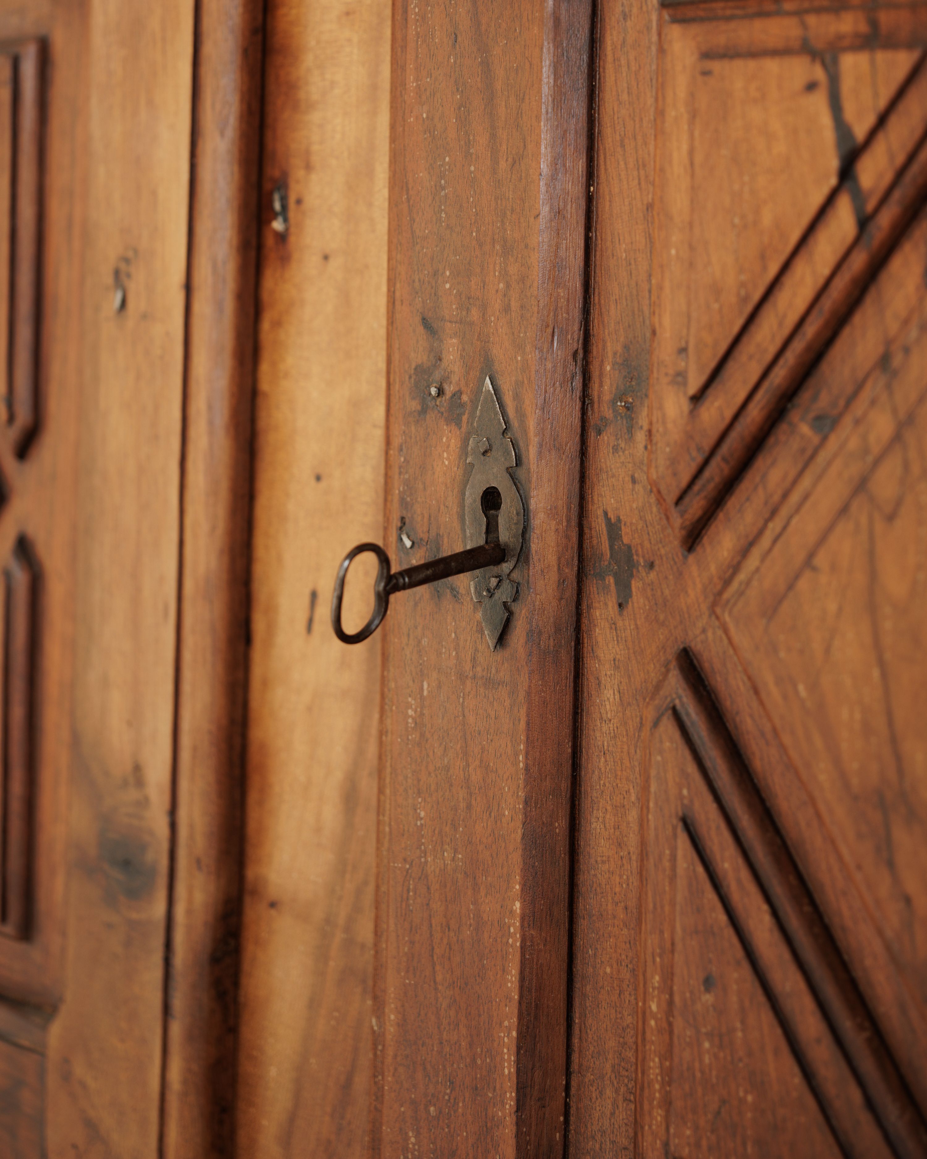 Jaw dropped. A true rarity, and one of Sylvie’s most exciting finds this season. This 17th-century Louis XIII-style cupboard, discovered in Barjols, is a remarkable example of early French furniture—defined by its geometric panels, solid oak construction, and a departure from Renaissance ornamentation in favor of bold, architectural simplicity. Pieces like this are incredibly difficult to source in such beautiful condition, especially with working hardware and the original key intact. The cupboard’s dual-door and drawer design speaks to its utilitarian roots, likely used to store everything from linens to serving ware in a well-appointed home. We were going to keep this one for ourselves...