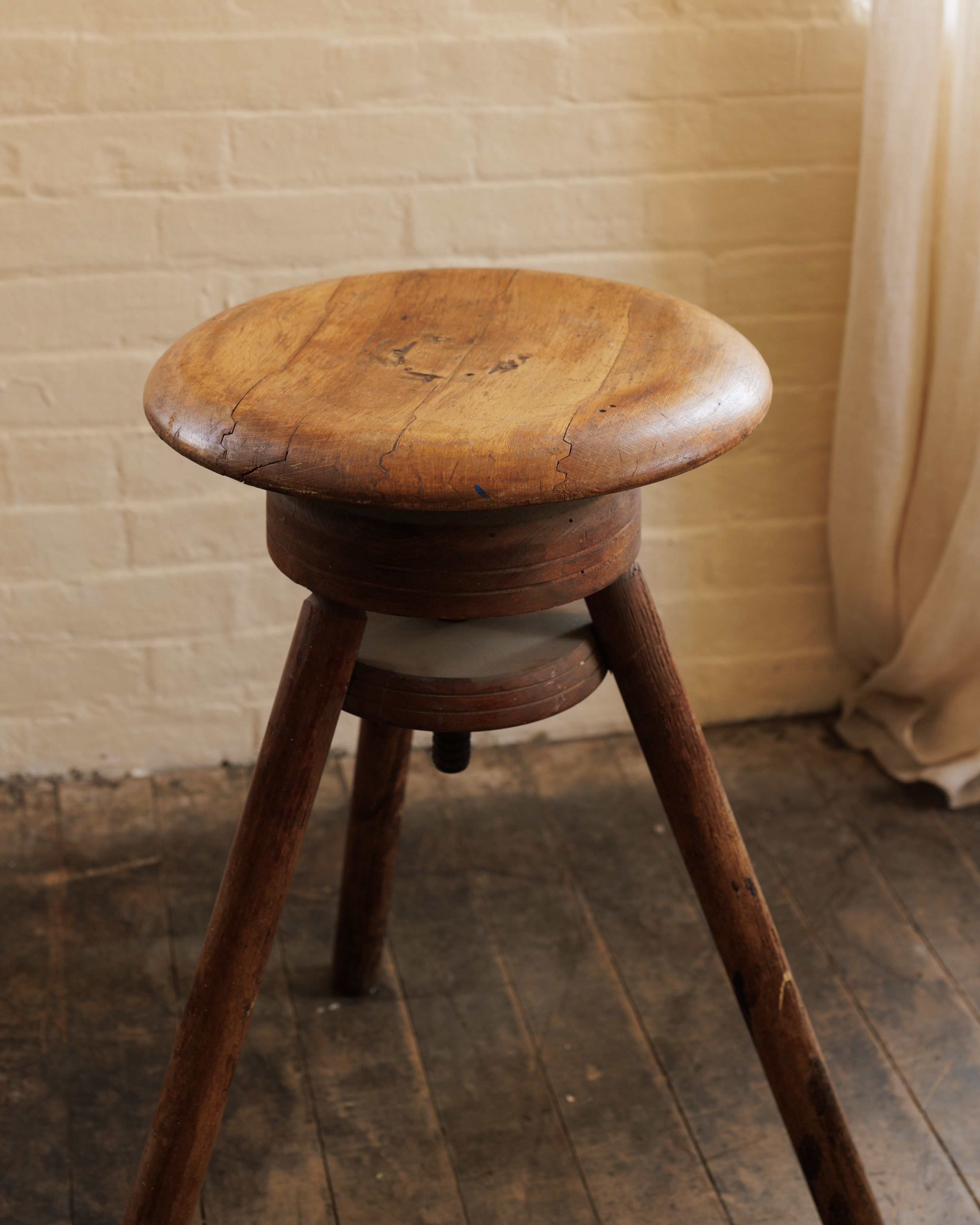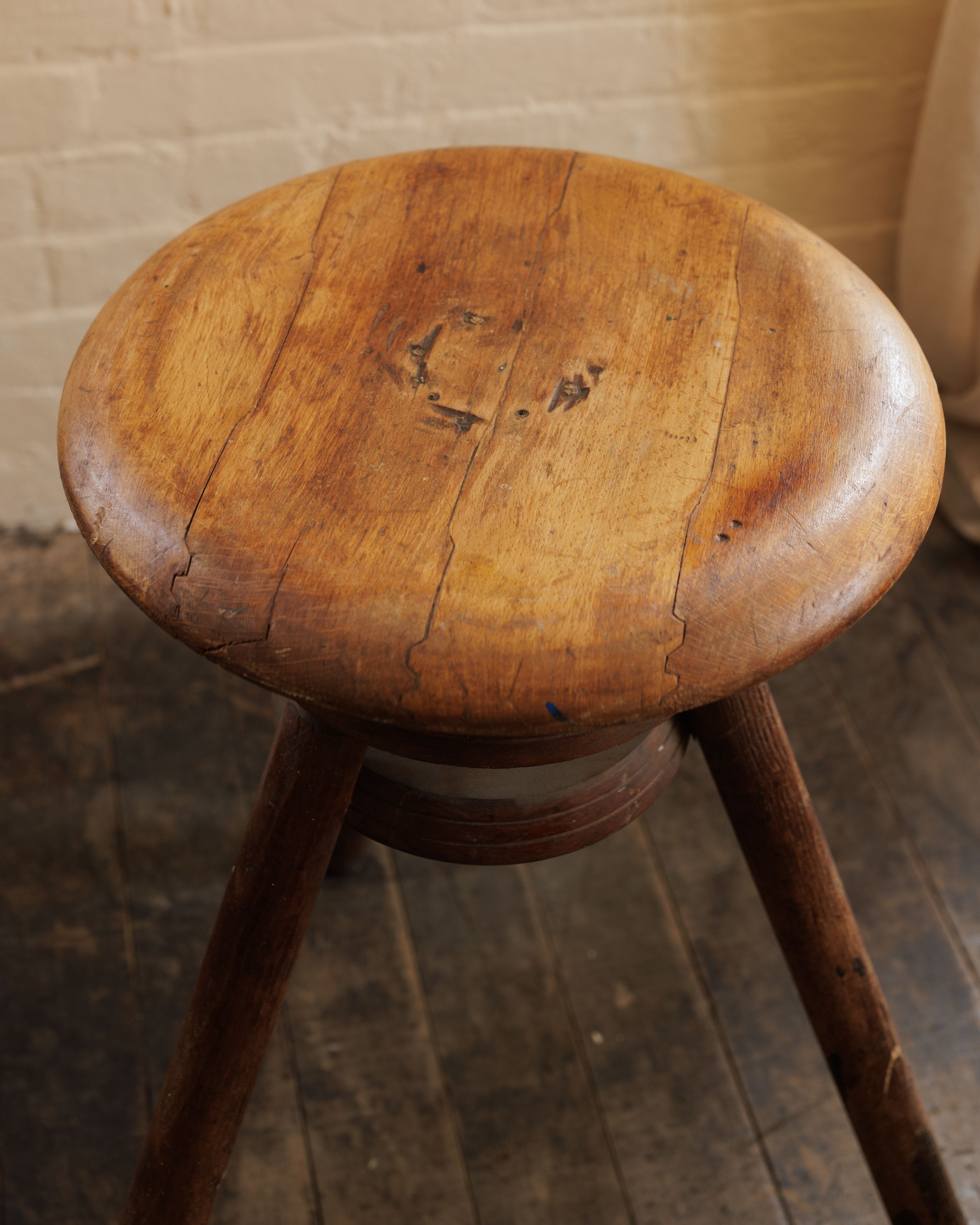 This adjustable workman’s stool, unearthed from a workshop in Barjols, is a Sylvie obsession. Once a tool for craftsmen adapting to the demands of their trade, its adjustable feature is a testament to French ingenuity. In wonderful condition, it’s ready for a new chapter—style it as a unique side table, a pedestal for your favorite vessel, or the ultimate coffee cup perch in a cozy reading nook.