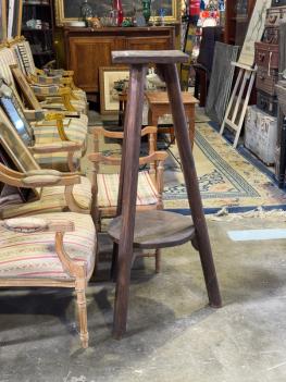 Dark wood pedestal table, sourced in Vauvert and believed to have once belonged to a local sculptor. With its striking triangular form and elevated shelf, Sylvie uses it to lift floral arrangements or showcase a favorite bust—perfect for adding drama to a quiet corner.