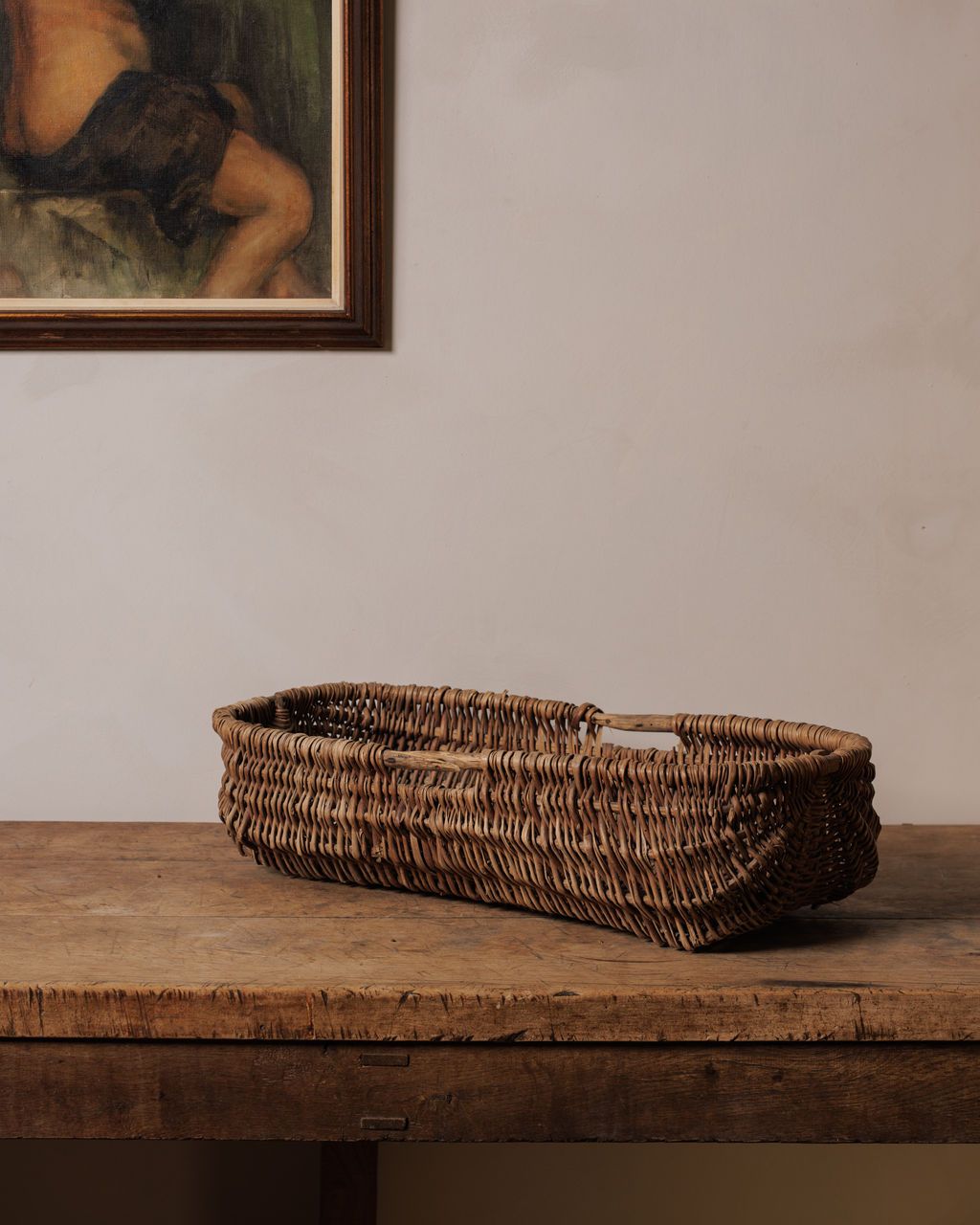 Found in the markets of Villeneuve and currently en route to our estate, this 1920s grape harvesting basket from Normandy is the real deal. Handwoven with natural reed and incorporated hand holds- it’s the kind of piece that tells a story. Once used to gather grapes and apples, it’s aged beautifully, with a weathered finish that only gets better with time. Sylvie loves it packed with blankets on a cabinet top or casually leaning in a corner.
