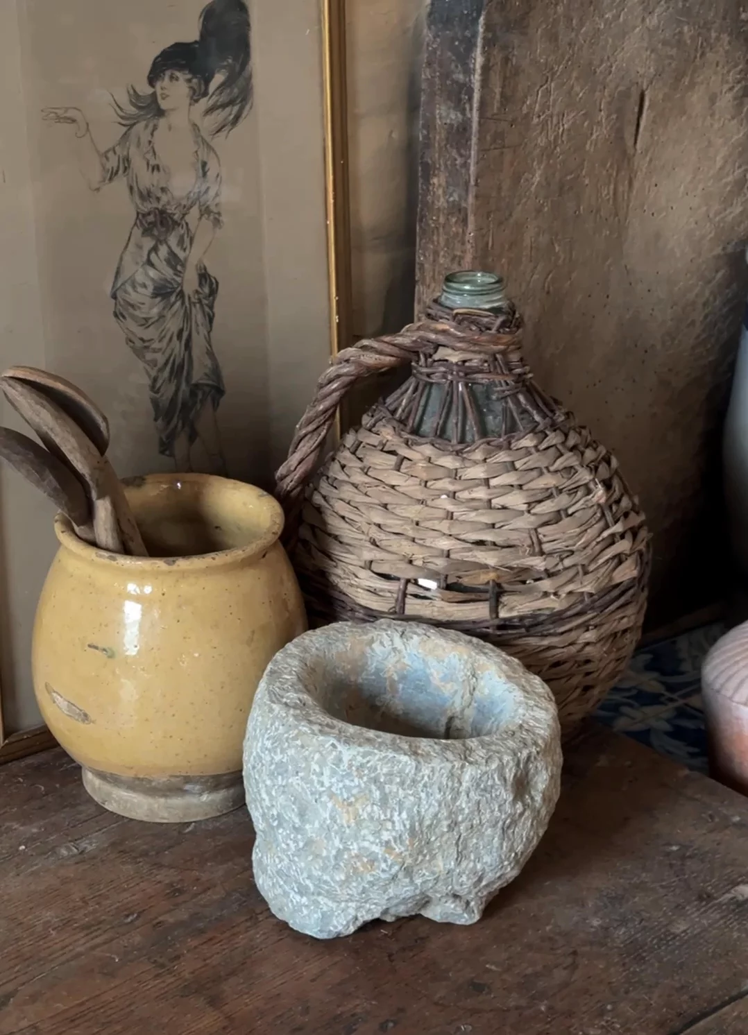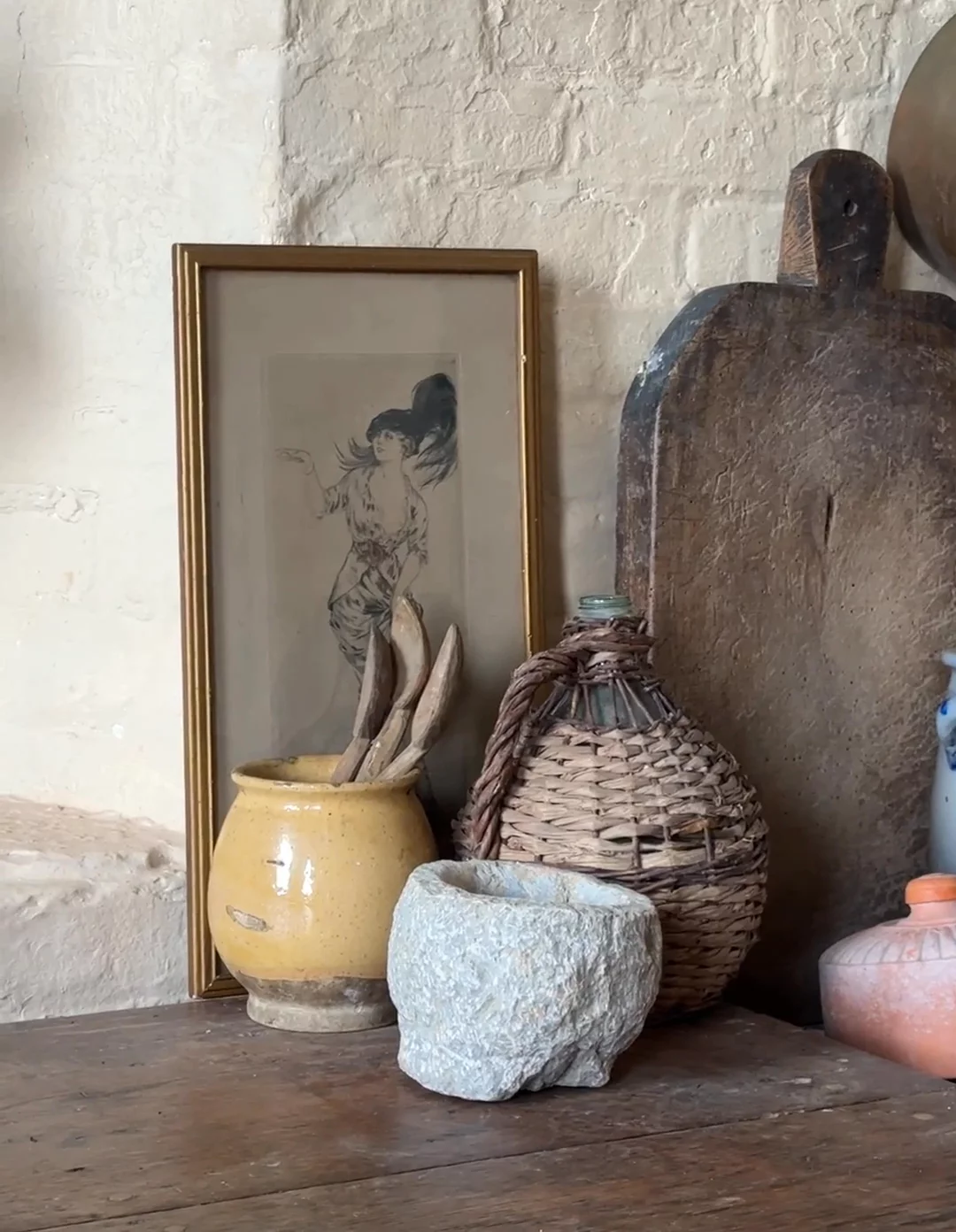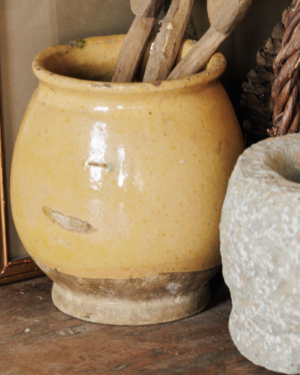 We’d never seen one quite like this petit yellow pot. This curiosity was found in Avignon and dates to the late 19th century. Likely used for kitchen prep or storage, its rounded form and pale yellow glaze speak to the practical ceramics of Provençal households. Now, it makes the perfect kitchen countertop vessel 'jam' packed with wooden spoons, or filled with pens and pencils in your office.