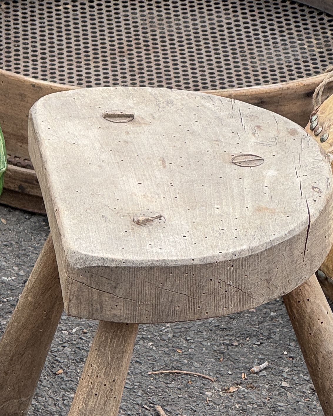 This antique piece wears its history beautifully—past woodworm holes, repairs, cracks, patina, and stains all add to its character.