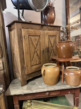 Decadent and a little dramatic, just how we like it. This Louis XIV-style oak cabinet was built with authority in mind, its double-panel doors and bold X motifs echoing the grandeur of 17th-century royal design. It comes with its original key, and the interior shelves were lined in cheerful patterned paper at some point along its journey, adding just enough personality to soften the pomp. Sylvie likes to use it as a linen cabinet, stacked with freshly laundered sheets and hand-embroidered pillowcases.