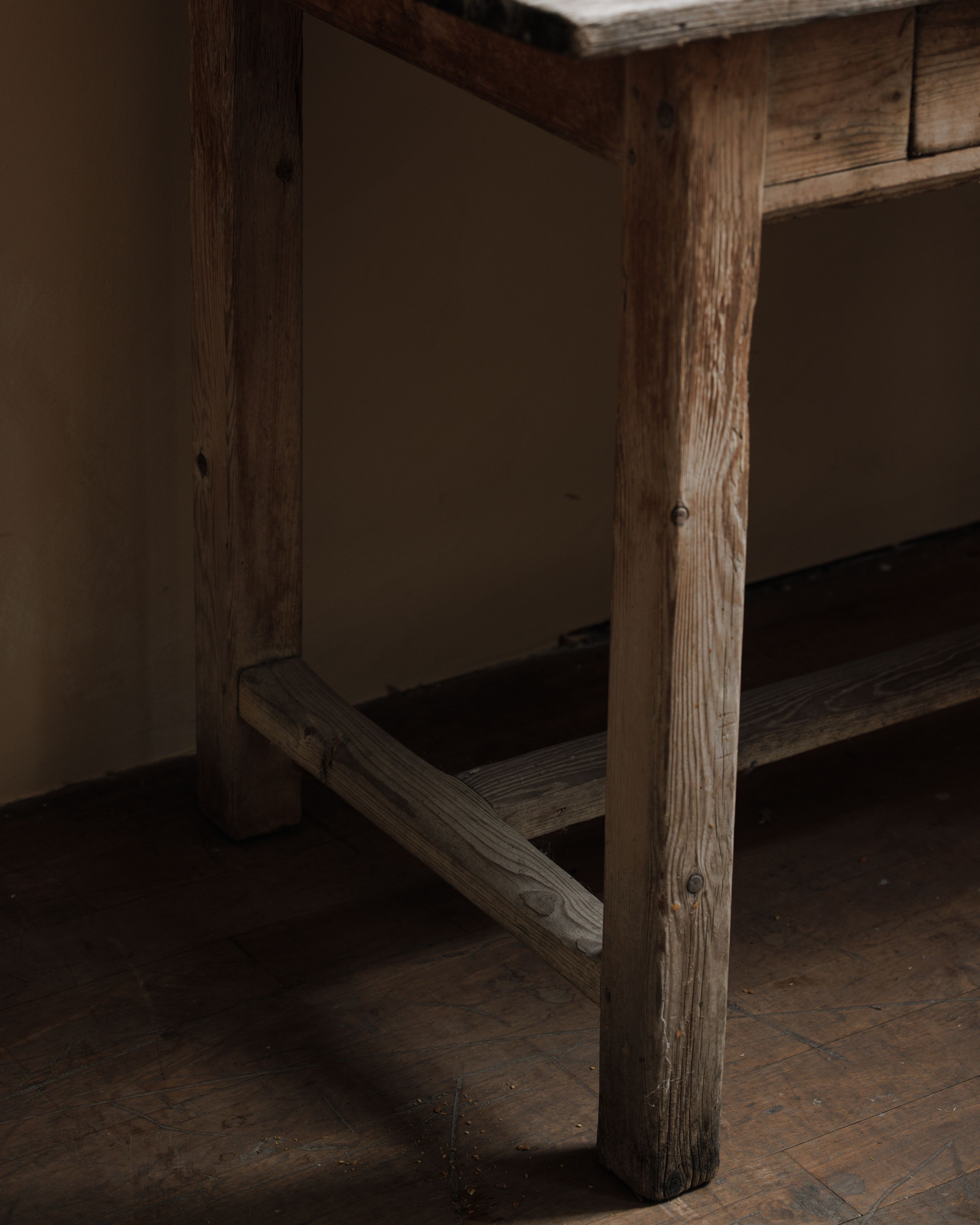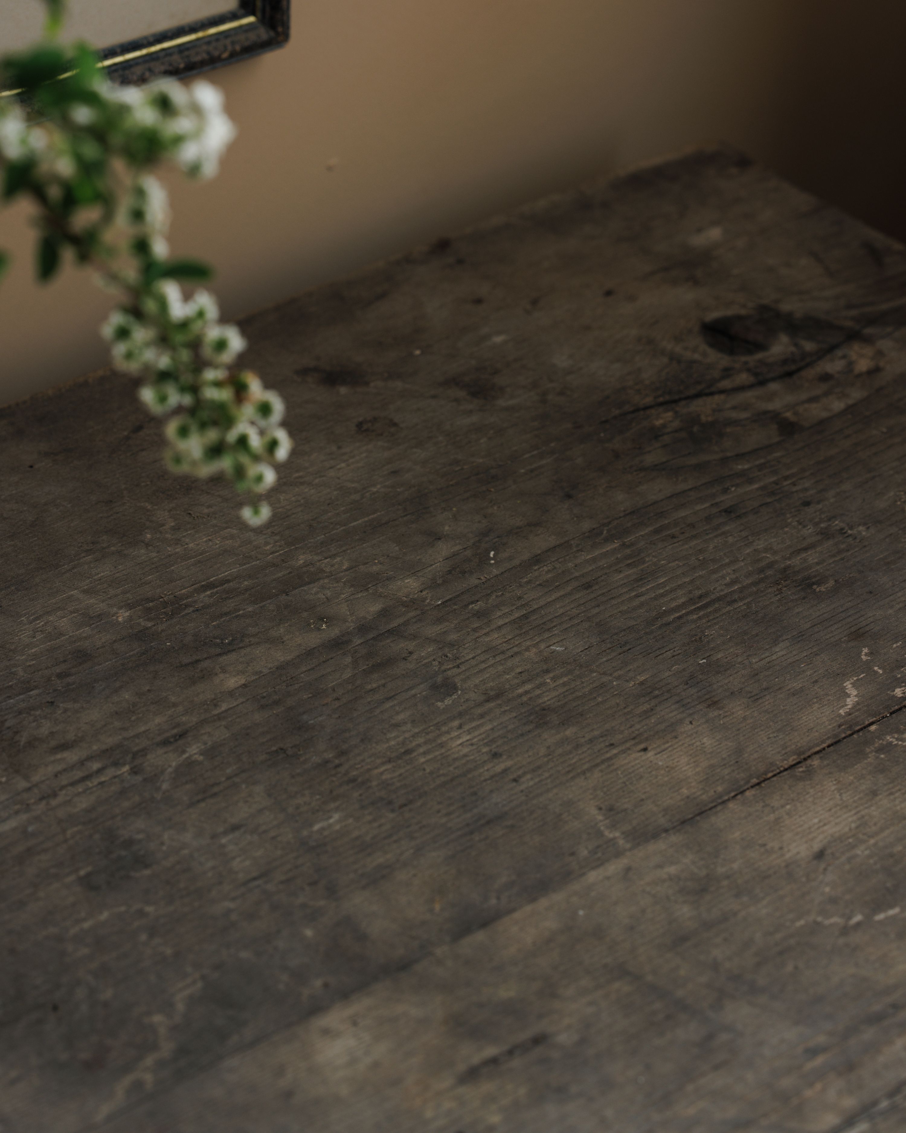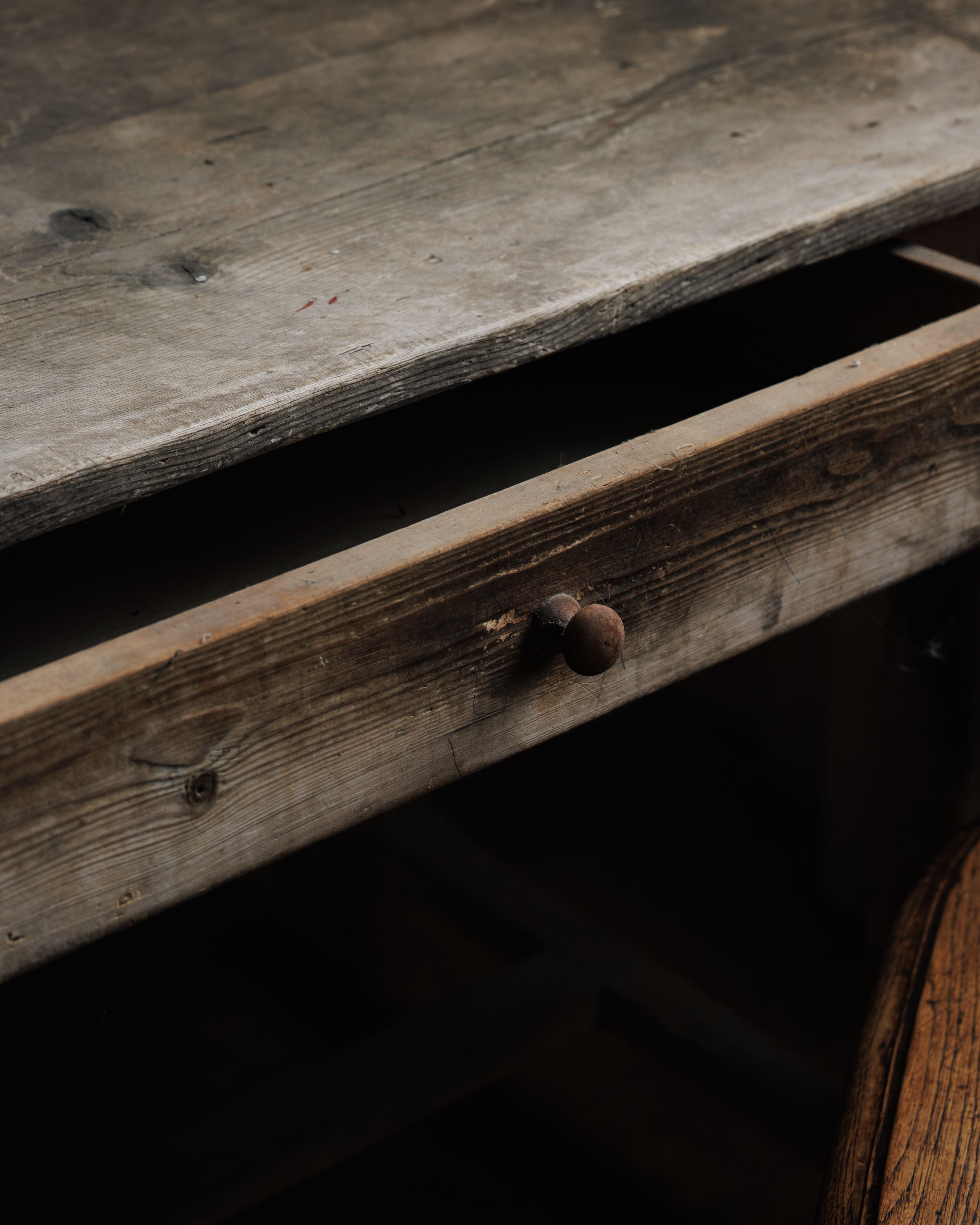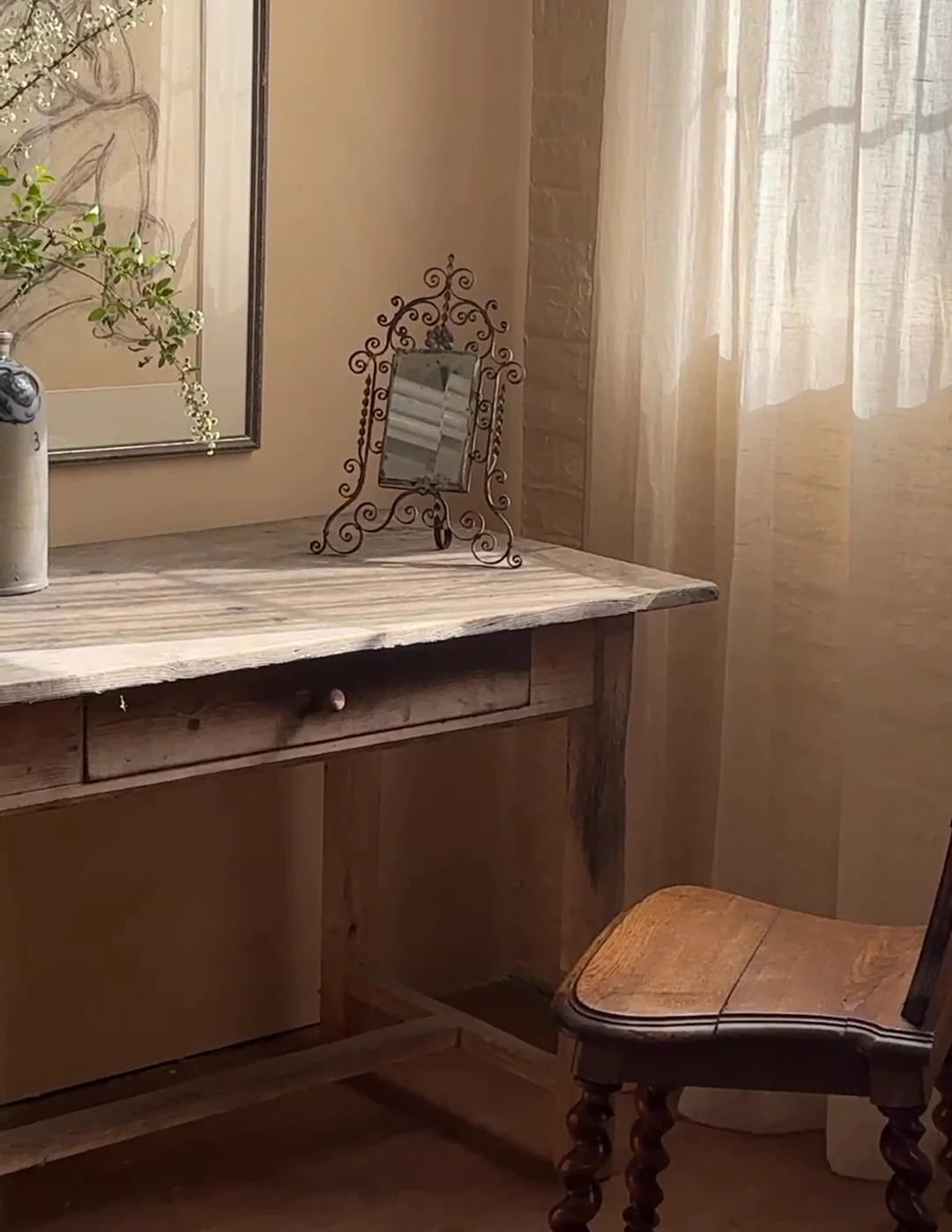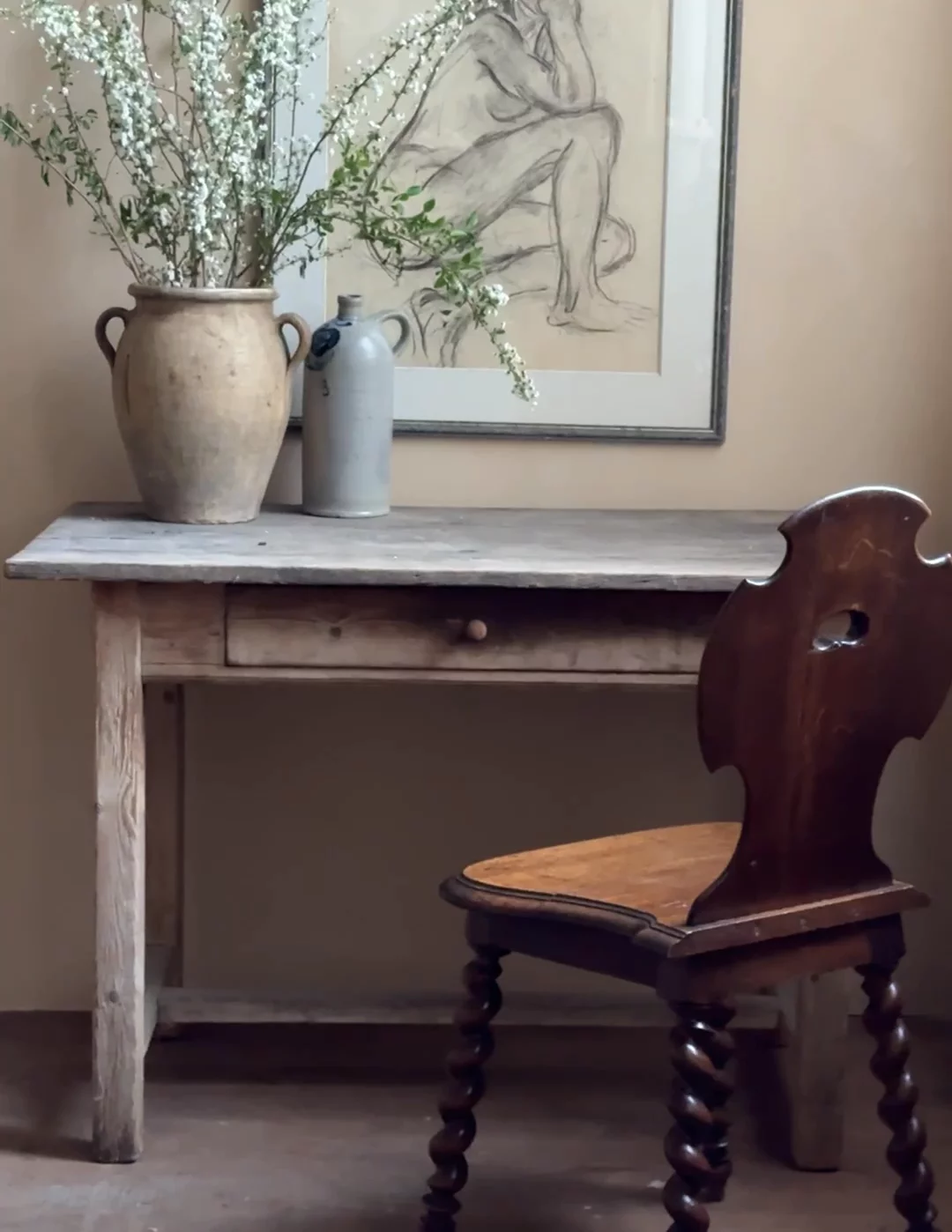 This 19th-century oak desk once sat on a working farm just outside Avignon, its surface slowly fading to a soft grey under years of southern sun. With a single drawer and straightforward build, it's the perfect addition to any home office. Sylvie likes hers tucked against a bedroom wall with a stack of letters, a glass of something chilled, and absolutely no agenda (unless writing the great American novel counts).