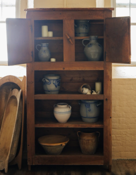 Jaw on ground. This incredibly rare 19th-century Catalonian cupboard was originally from the Spanish countryside. With hand-forged latches, open shelving, and beautifully aged and checked wood, it’s ready for your kitchen, living room or anywhere that could use a little Spanish charm.