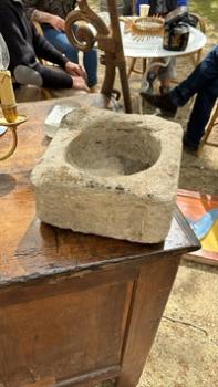 Basically the heavyweight champ of kitchenware. This 18th-century stone mortar from Barjac, carved with a square blocky exterior and a deep round well, once did the hard work of grinding and pounding in French kitchens. These days, it’s less about garlic and herbs and more about presence - Sylvie would keep it by the door as the boldest catch-all bowl you’ll ever own. seriously.