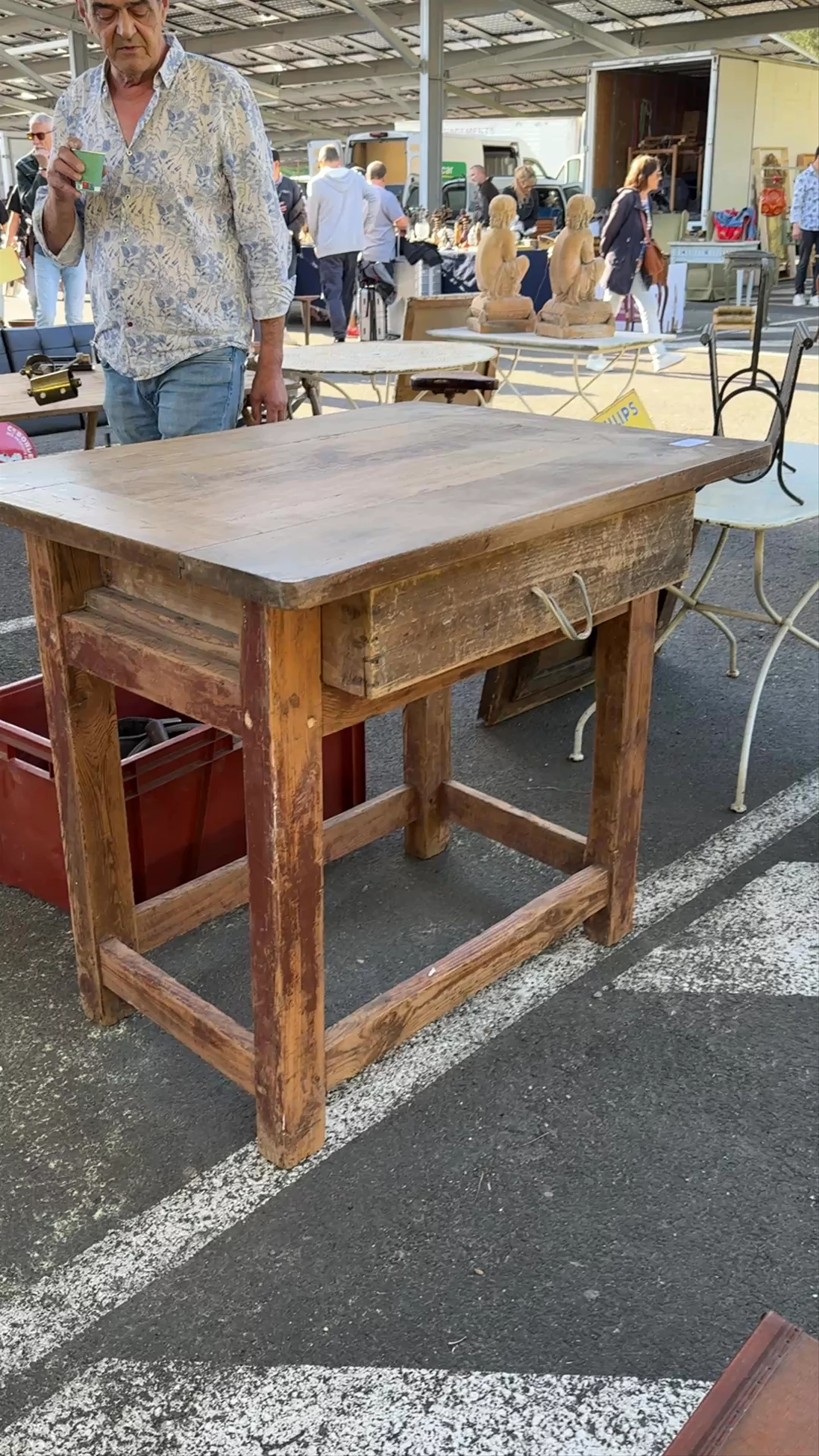 A true workhorse with charm to spare. Found in Avignon and dating to the early 20th century, this French kitchen island stands at 37 inches tall, the perfect height for chopping or meal prep. Its deep drawer, finished with a simple string pull, hints at a life spent in a busy farmhouse kitchen. Sylvie loves it as a compact island or bar table, especially in smaller spaces that still deserve good design.