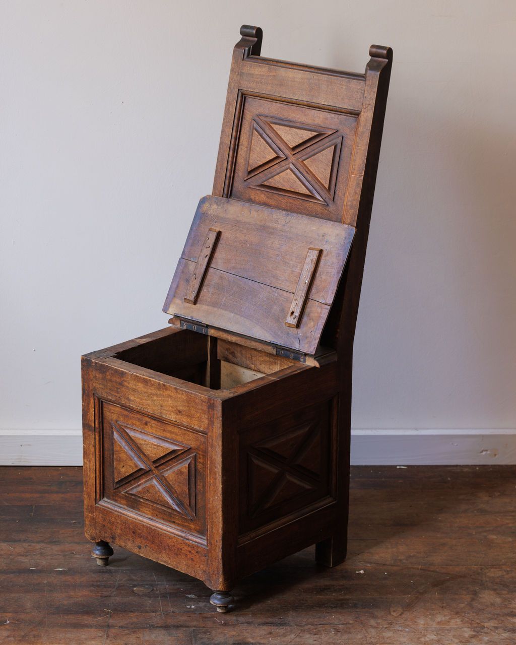 The story behind the salt box chair is a charming one. In 18th-century France, salt was taxed so heavily under the “gabelle” that it became nearly as precious as gold. This led to a clever household trick: a humble-looking chair with a hidden compartment by the fireplace. Each time the tax collector stopped by, the family’s grandmother would settle herself comfortably on the chair, concealing their extra salt. Asking her to move would be unthinkably rude, so the hidden stash remained safe and sound. Now, Sylvie has given this ingenious piece a new purpose, styling it as a unique side table or entryway moment.
