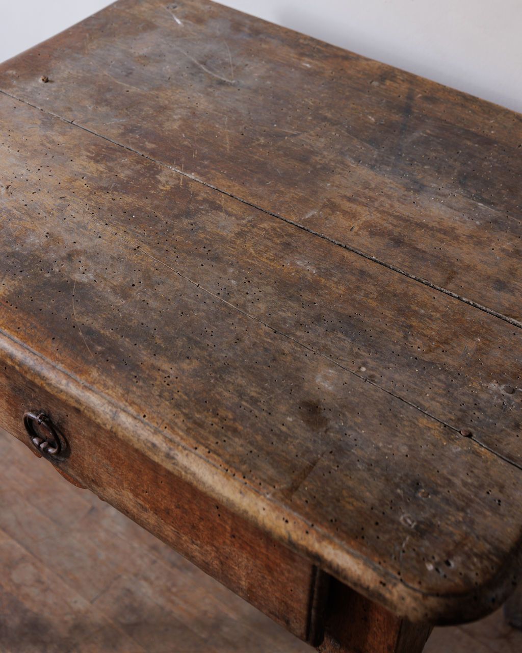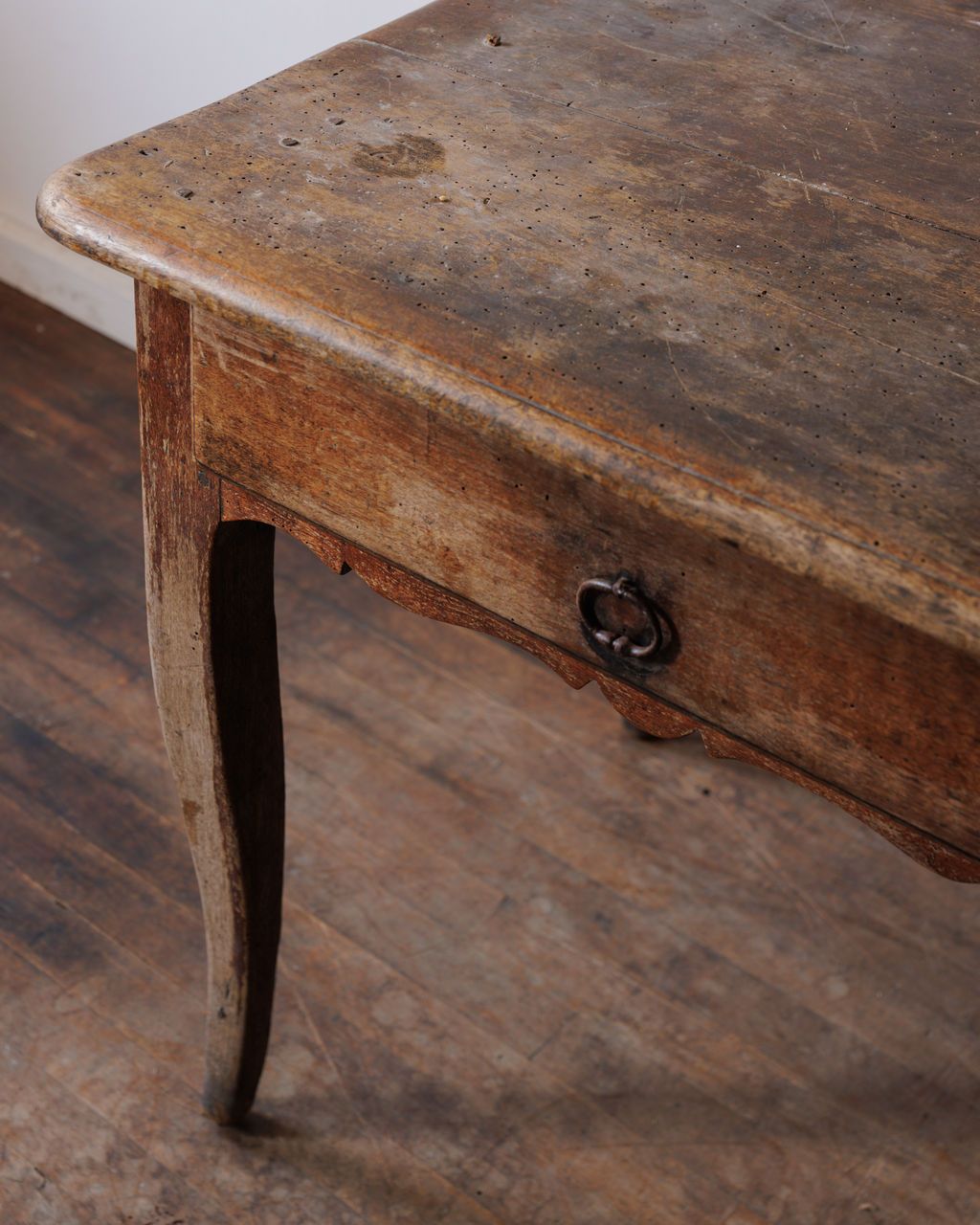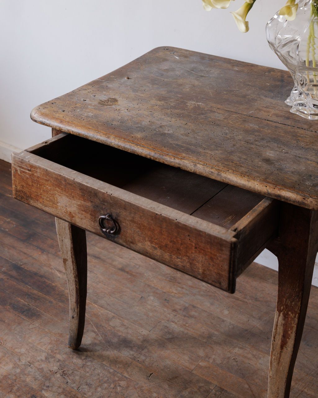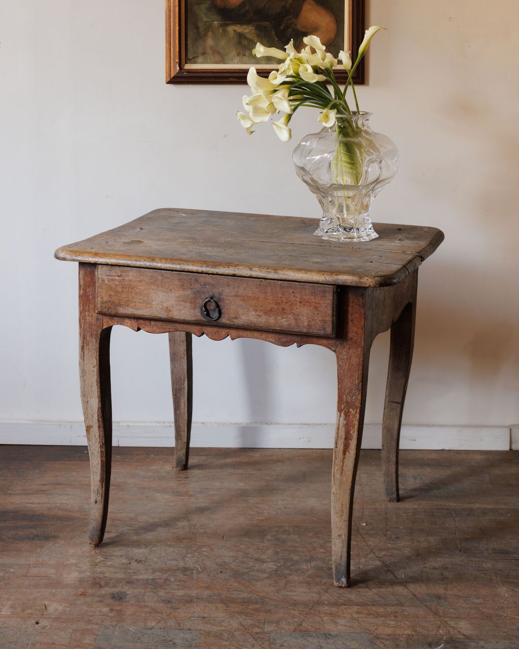 Discovered in Aix-en-Provence, this late 19th-century walnut side table features cabriole legs curve, a single drawer and a top that bears the marks of decades of daily use. Pieces like this would have stood quietly in bedrooms or salons, holding letters, lamps, or a stack of well-thumbed books. Sylvie loves it as a reading chair companion, layered with novels and a glass of wine, or in an entryway collecting the day’s essentials. Exactly as pictured.