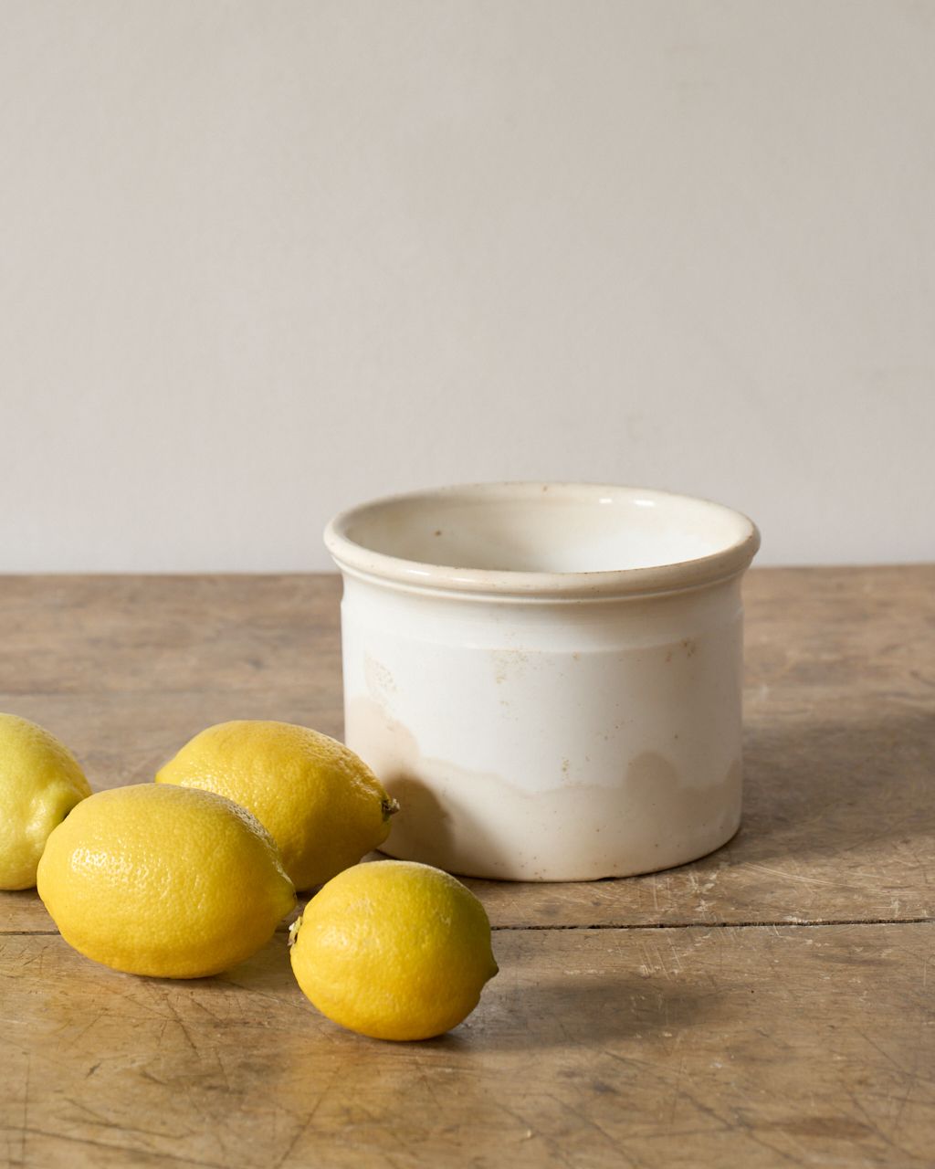A nod to the French kitchens of the past. Found in Villenueve, these antique stoneware pots were once used to store preserves, confit, or jam, their partially glazed surfaces designed for cool cellar storage. Today, they’re right at home on the counter holding garlic, wooden spoons, or salt.