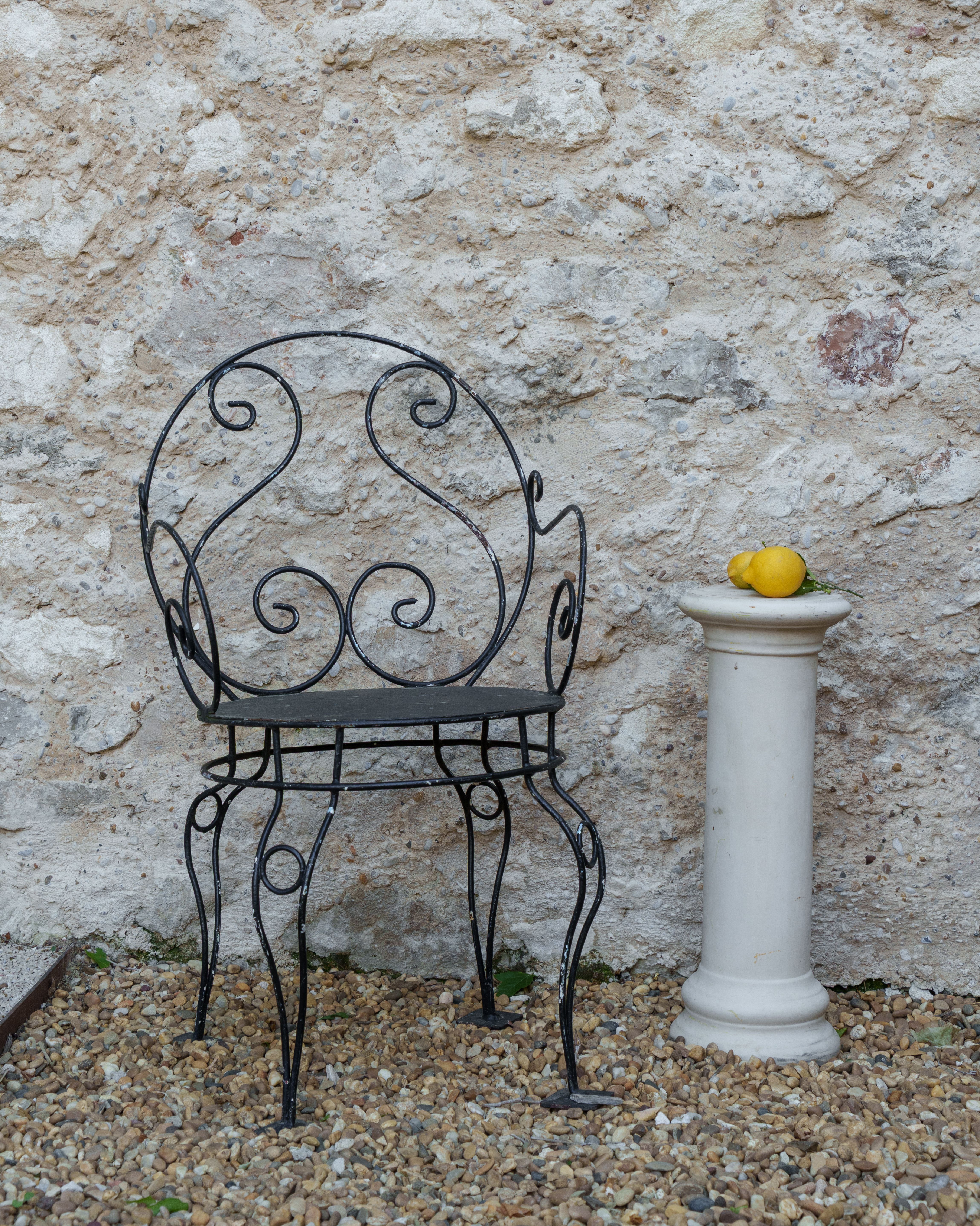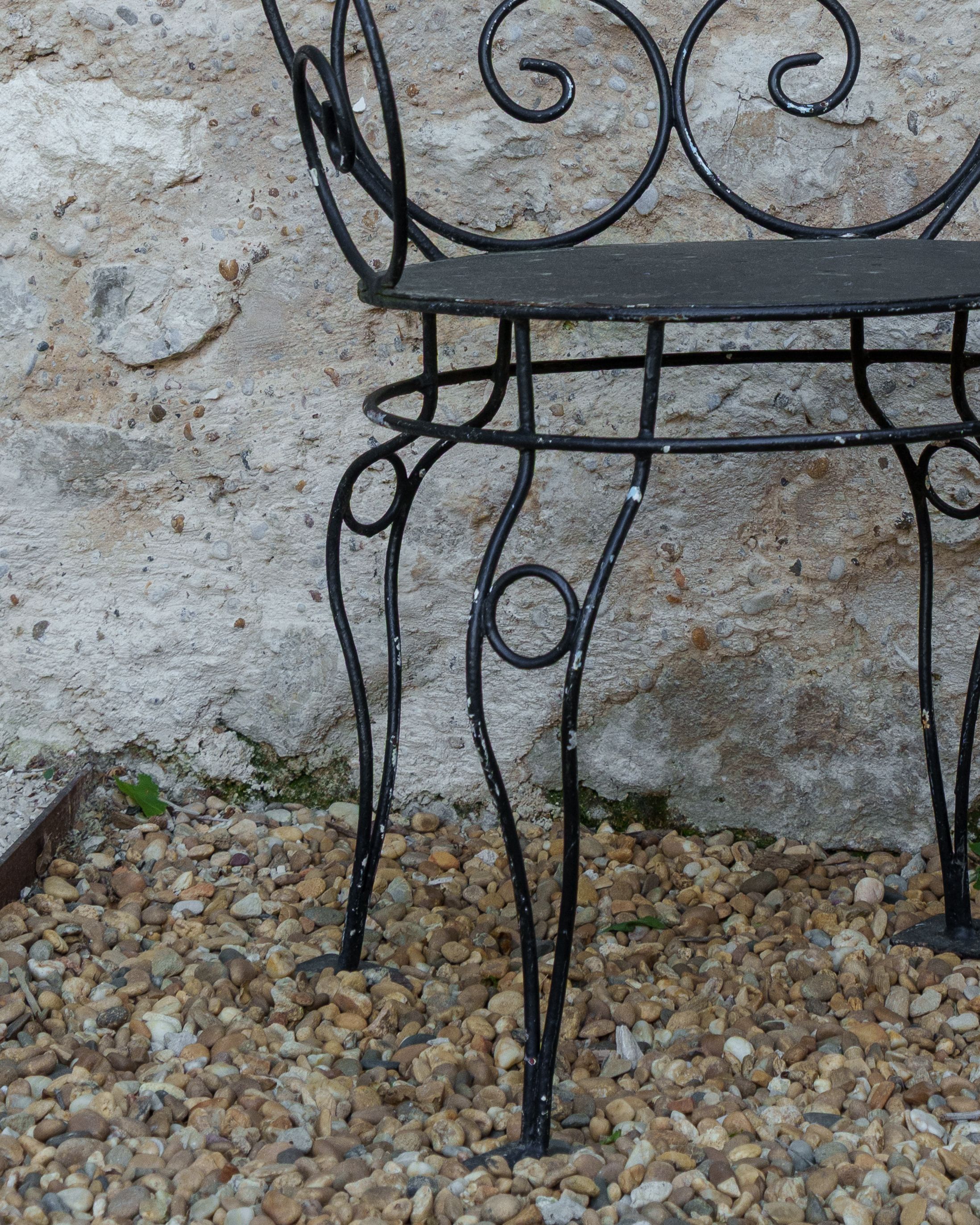 The curves on this one do all the talking. Found in Barjac, this black wrought iron garden chair features intricate scrollwork and rare cabriole legs - a detail not often seen in pieces like this. Strong enough for daily use, sculptural enough to stand alone. Only one available.