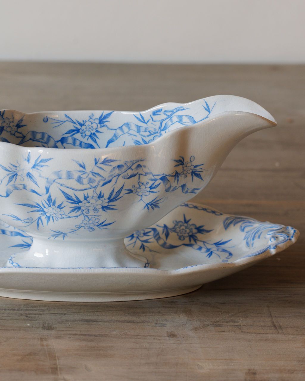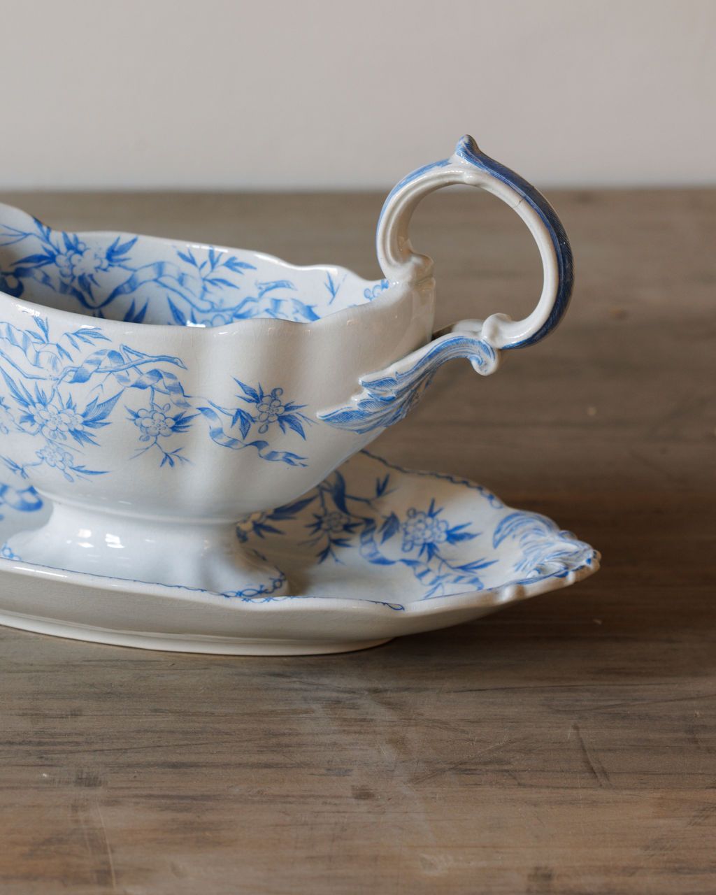 This Epine U & C gravy boat may look like a two-piece set, but it’s actually a one-piece wonder. Made by Utzschneider & Co. in Sarreguemines, a French pottery house famous for its delicate faïence, it dates to the early 1900s when every meal was a chance to show off good taste. The “Epine” pattern’s fine blue florals were a signature of U & C’s romantic flair, mixing elegance with everyday charm. Sylvie says it proves the French mastered the art of making even gravy feel a little glamorous.