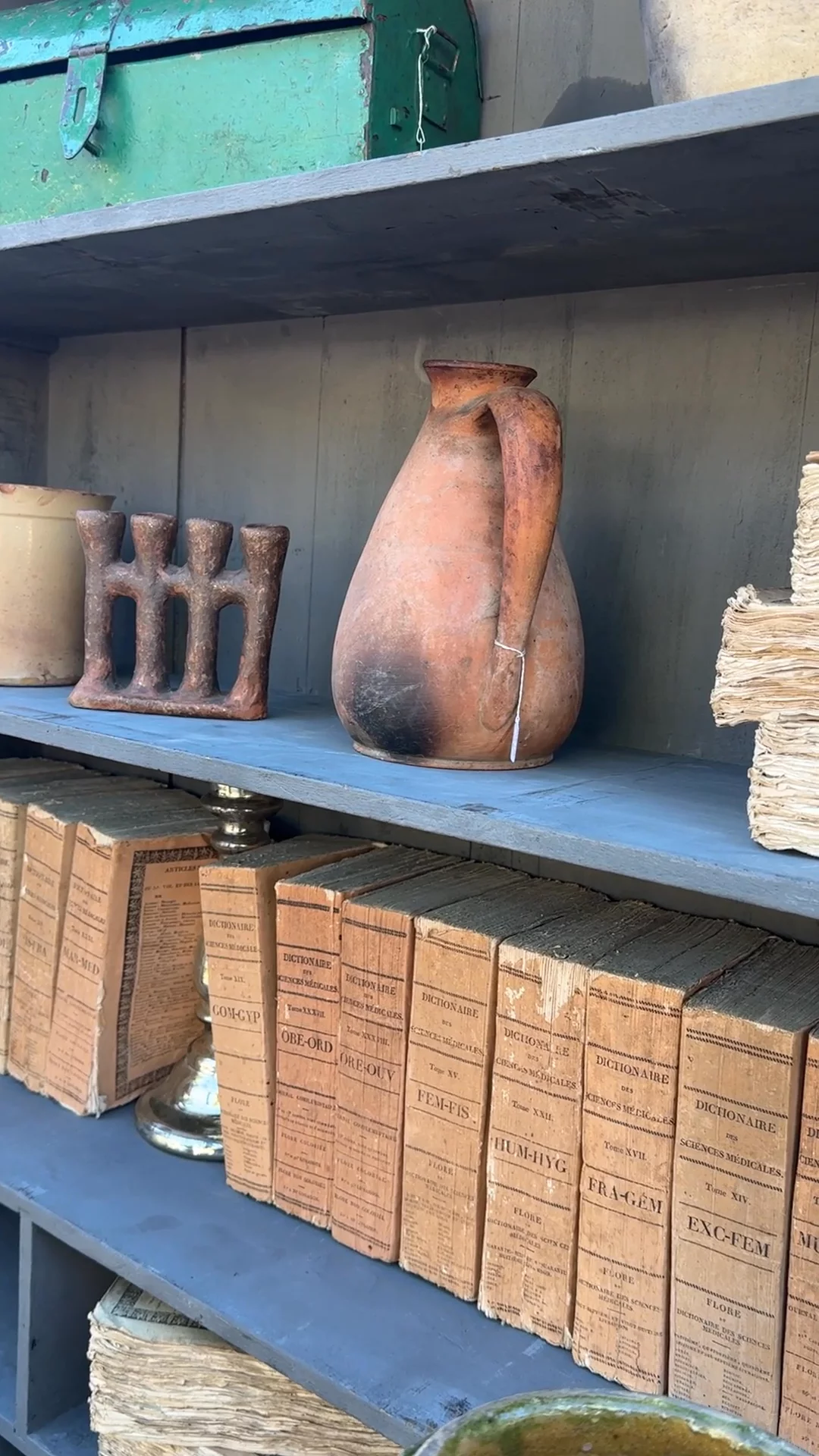Ooh la la! This 19th century terracotta water vessel, found in Villeneuve, has a round belly, fluted rim, and a single handle that still carries the memory of daily use. Once utilitarian for holding water and keeping it cool, now sculptural, Sylvie loves it empty as a statement piece or filled with tall blooms for a dramatic table moment.