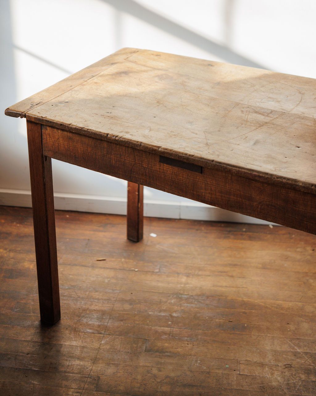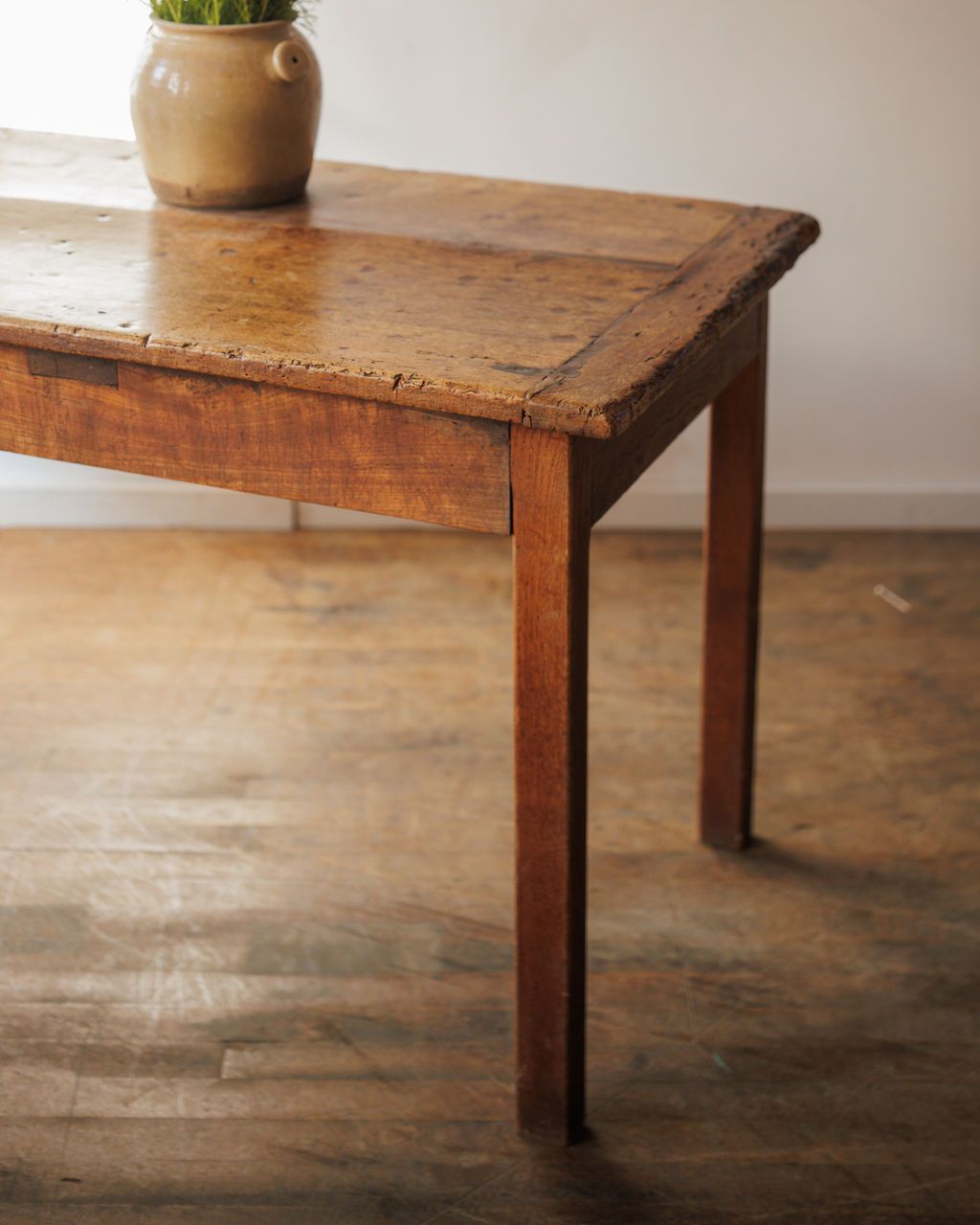 One single plank of walnut - something that is very hard to find. This 19th-century walnut farm table, hails from Cevennes, is built from one impressively wide board that’s naturally split over time, adding to its lived-in beauty. Its breadboard ends and solid joinery keep the top perfectly anchored, a quiet testament to the craftsmanship of its maker. Long and narrow, it’s ideal behind a sofa or along a hallway, though Sylvie swears it shines best when piled high with books, flowers, or a spontaneous spread of cheese and figs.