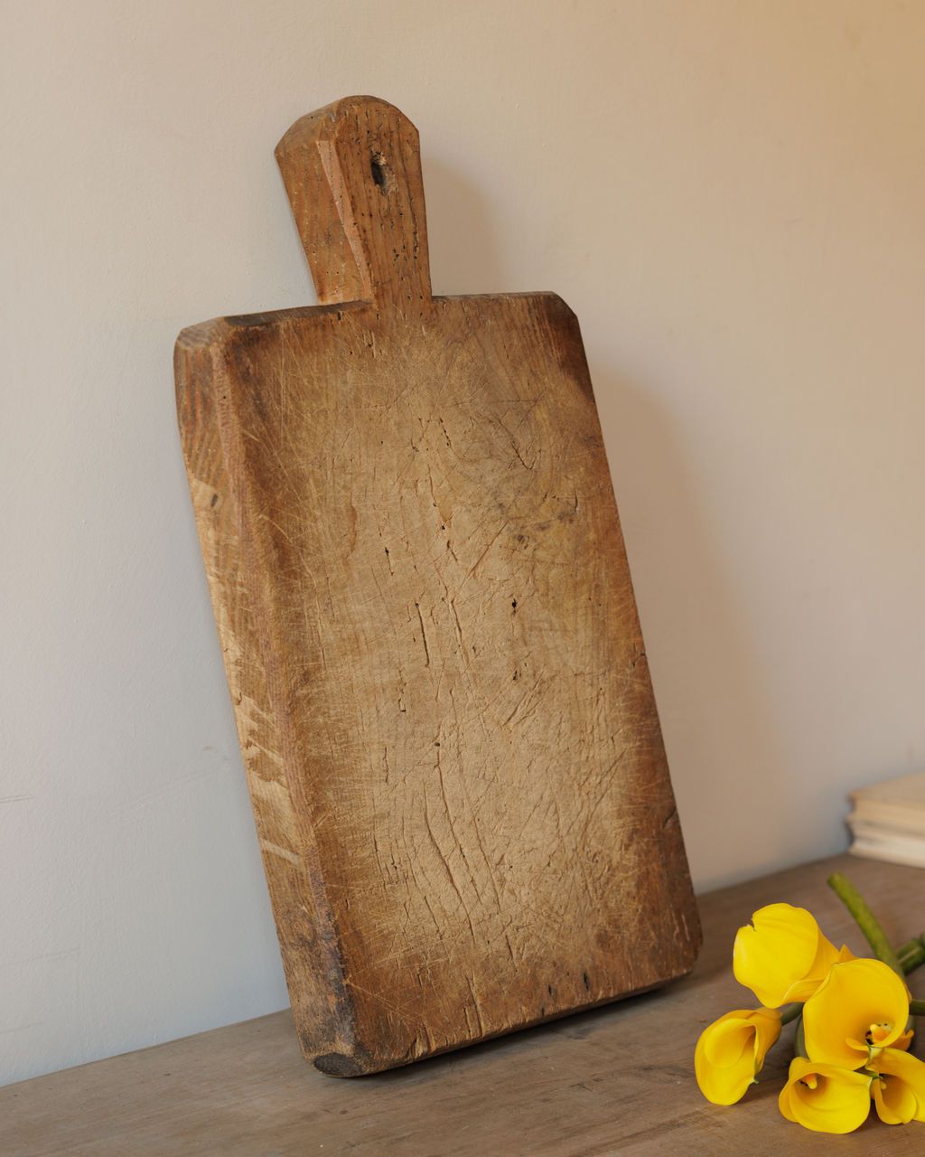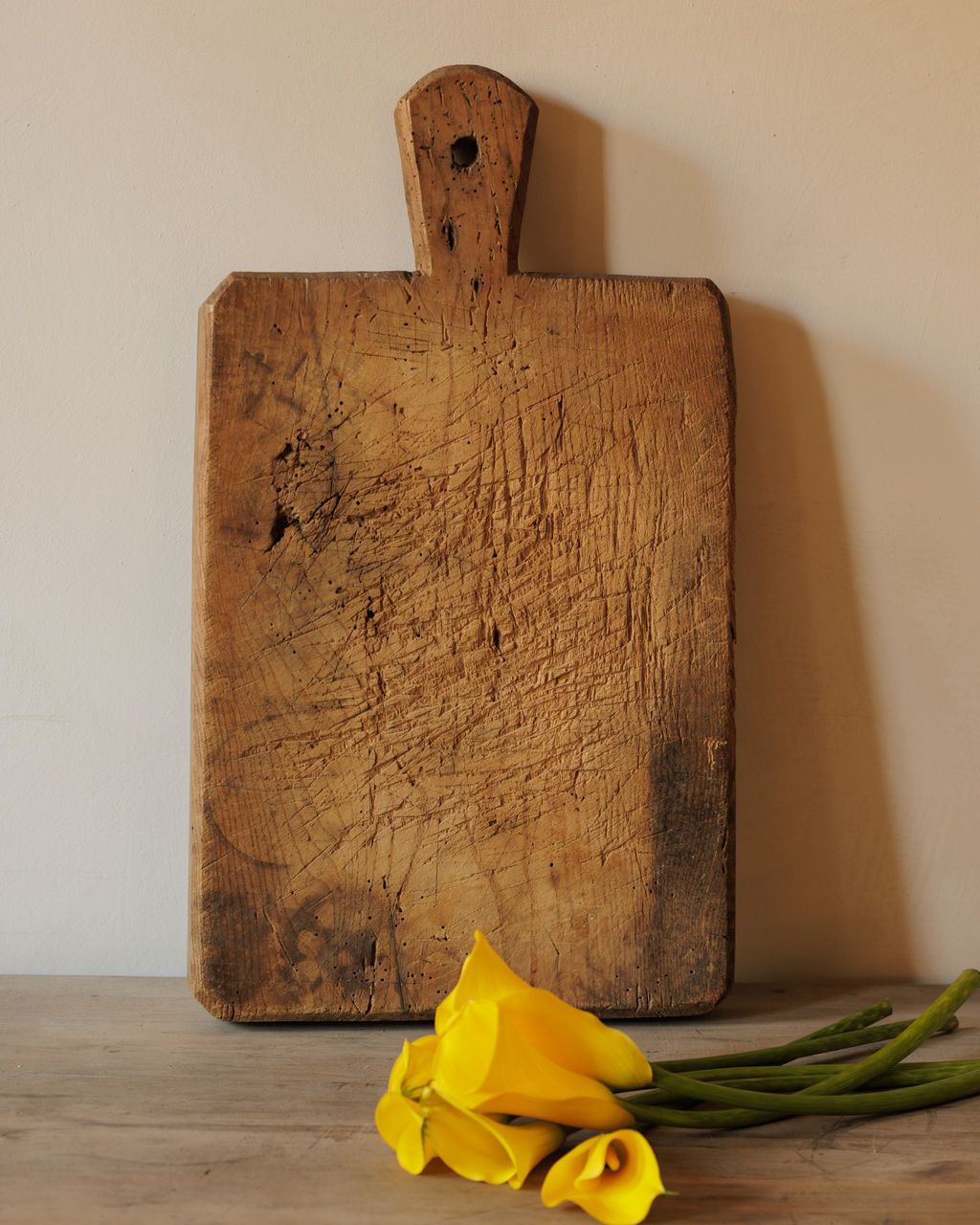 A board that’s done its fair share of chopping. Found in Barjac and dating to the 19th century, this hand-carved wooden board shows deep knife marks and soft edges from generations of use. Its rectangular shape and thick handle give it a sturdy, architectural presence that works as well for serving as it once did for prep. Sylvie leans hers against the backsplash, layering it with other boards to build quiet texture in the kitchen, but it comes out most nights for an impromptu cheese board to accompany an aperitif.