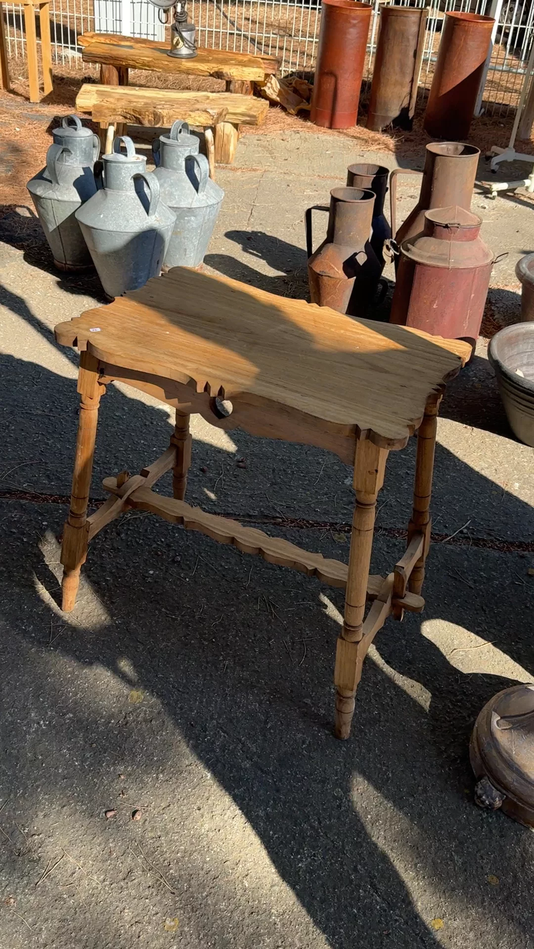 A find from the north! This mid-century Swedish side table brings lightness and whimsy with its pale wood and the small carved heart nestled in its apron, a folk-art flourish that feels both tender and deliberate. The turned legs and stretcher bar keep it balanced and traditional, while the irregularly bleached top, possibly walnut or mahogany, adds a raw honesty earned through time. Sylvie loves it as a little accent table by a reading chair, topped with a lamp or a messy stack of well-thumbed books.