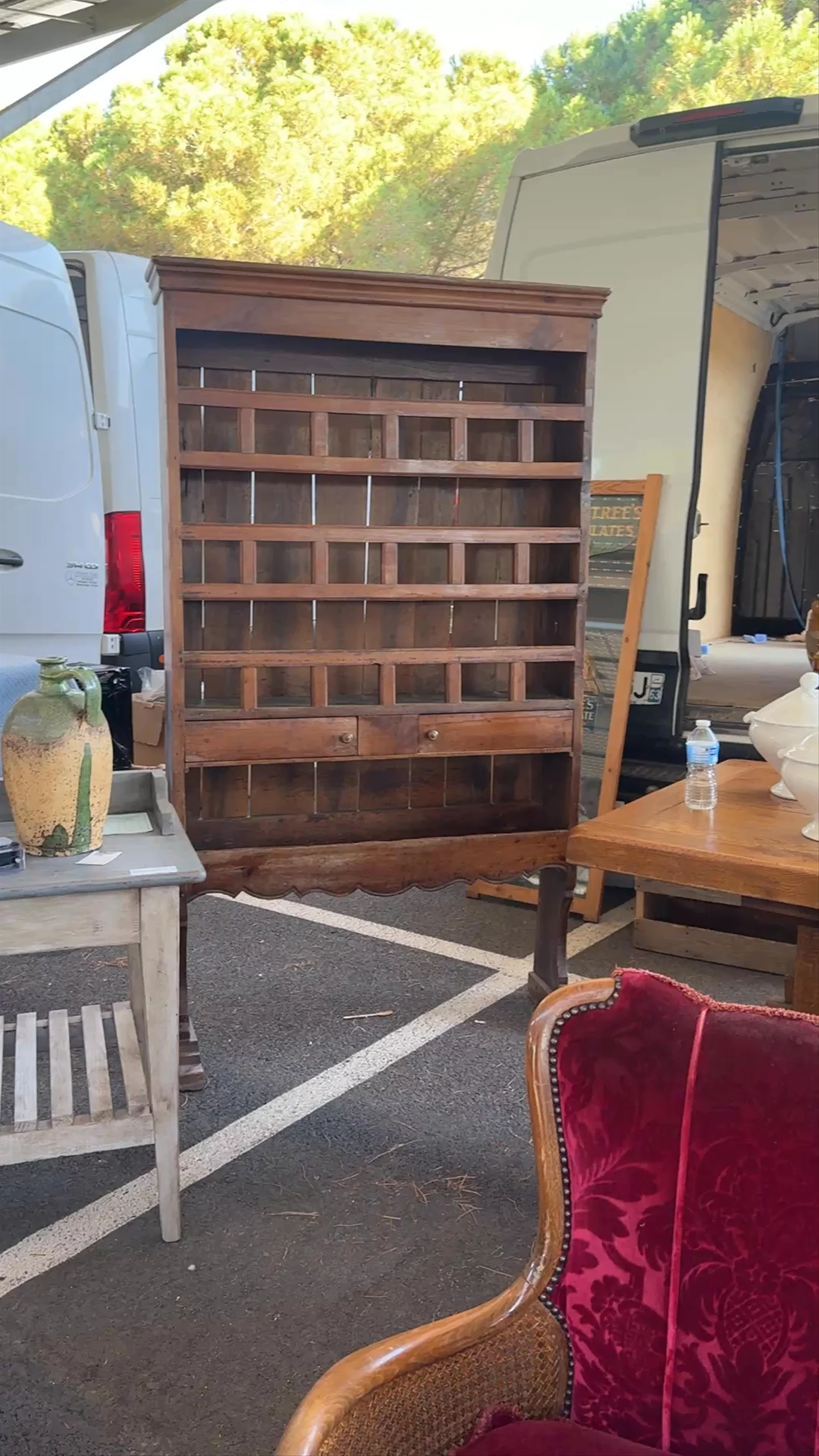 A piece we almost kept for ourselves. Found outside Lyon and dating to the early 20th century, this French plate cupboard was once the pride of a farmhouse kitchen, where every shelf held rows of hand-thrown pottery and Sunday china. The tall frame and scalloped apron rest on elegant splayed feet, with two small drawers at the center for linens or utensils. Made from warm-toned wood that’s mellowed beautifully over time, it carries the quiet precision of provincial joinery. Sylvie loves it as a dining room showpiece or kitchen shelving for stacked ceramics, cookbooks, and glassware.