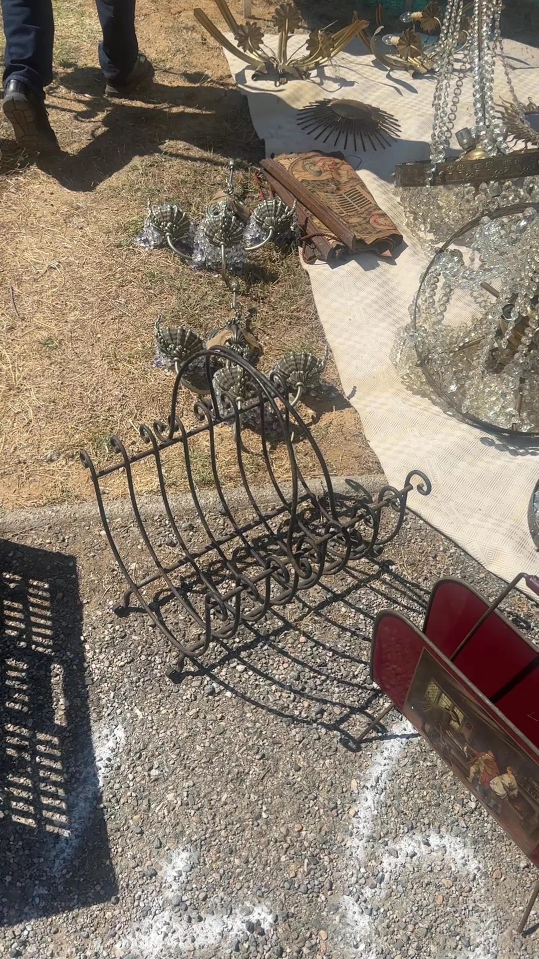 Oh, she’s versatile! Originally a midcentury firelog holder from Pezanes, this wrought iron piece now moonlights as a magazine stand with scrolling curves and a sturdy frame. While it could still cradle a neat stack of kindling by the hearth, Sylvie much prefers it piled high with her ever-revolving mix of design books, glossy gossip rags, and a few well-worn art journals.