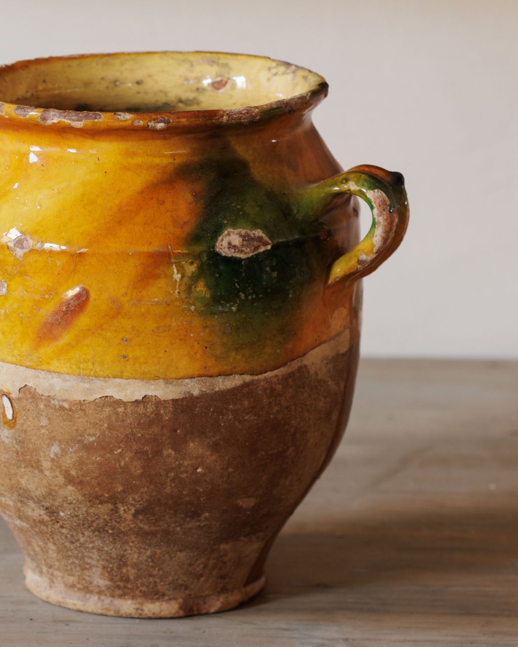 Once upon a time, in old and busy French kitchens, confit pots were essential for preserving rich foods like duck confit. Derived from the French verb "confire," meaning "to preserve," these pots feature a half-glazed top and unglazed bottom, perfect for covering in fabric and burying in cool cellars or the ground. These pots are becoming harder to find, and are often thought to be the king of all the antique french kitchen pots. Today, these charming pots are a welcomed addition to your kitchen window sills or playing the main characters on your dining, coffee, or entryway tables. Exactly as pictured.