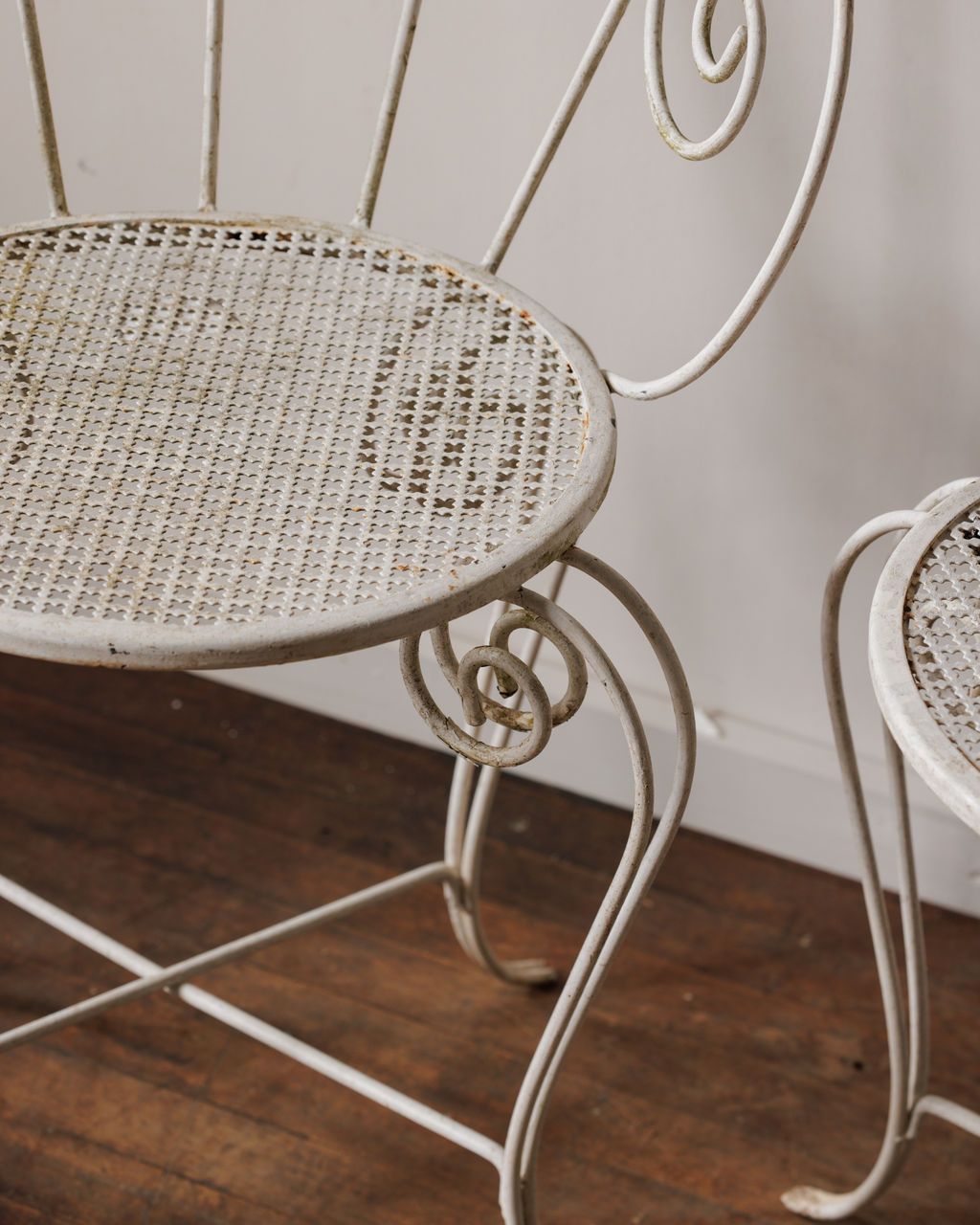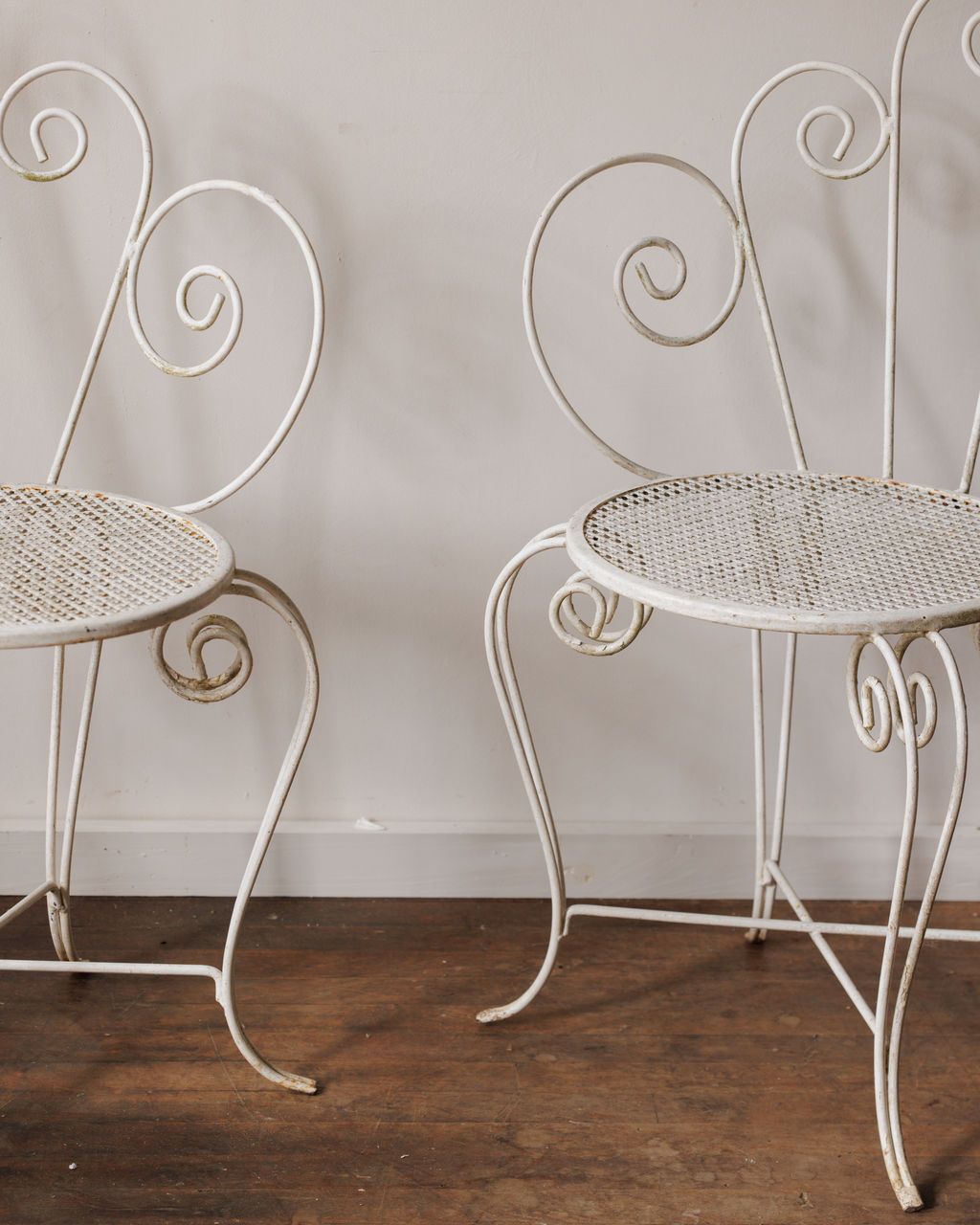 Ooh la la, talk about garden royalty! This set of two French metal chairs, found in Montpelier and dating to the 1930s, originally from Marseille with their playful peacock-style scrolls and airy, woven seats. Once used in sun-splashed courtyards and seaside terraces, they’re made for lingering mornings with coffee, afternoons of pétanque watching, or candlelit summer dinners outside. We’ve got three sets available, so if your dream is a full suite of six, now’s your chance to claim the whole flock.