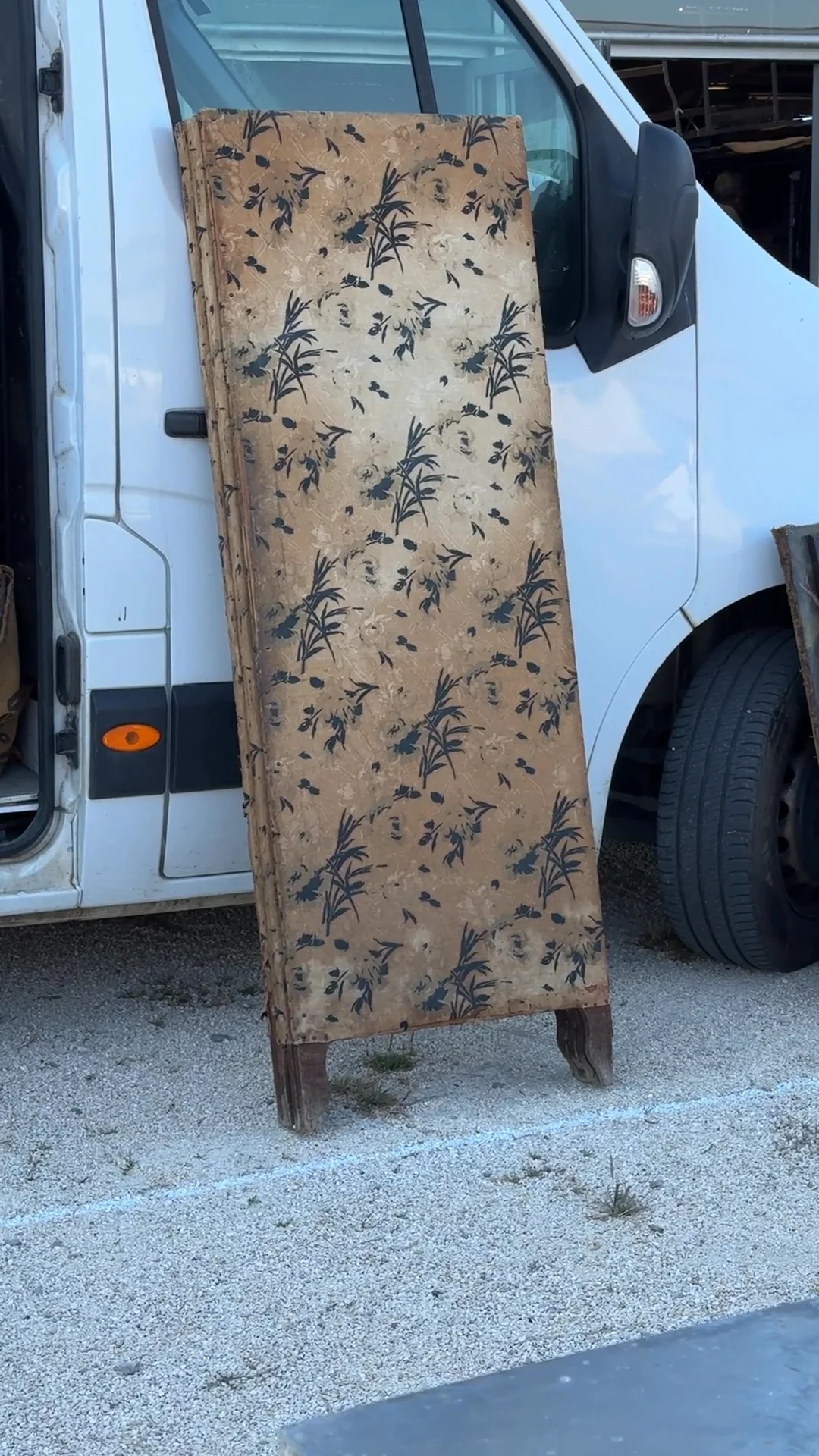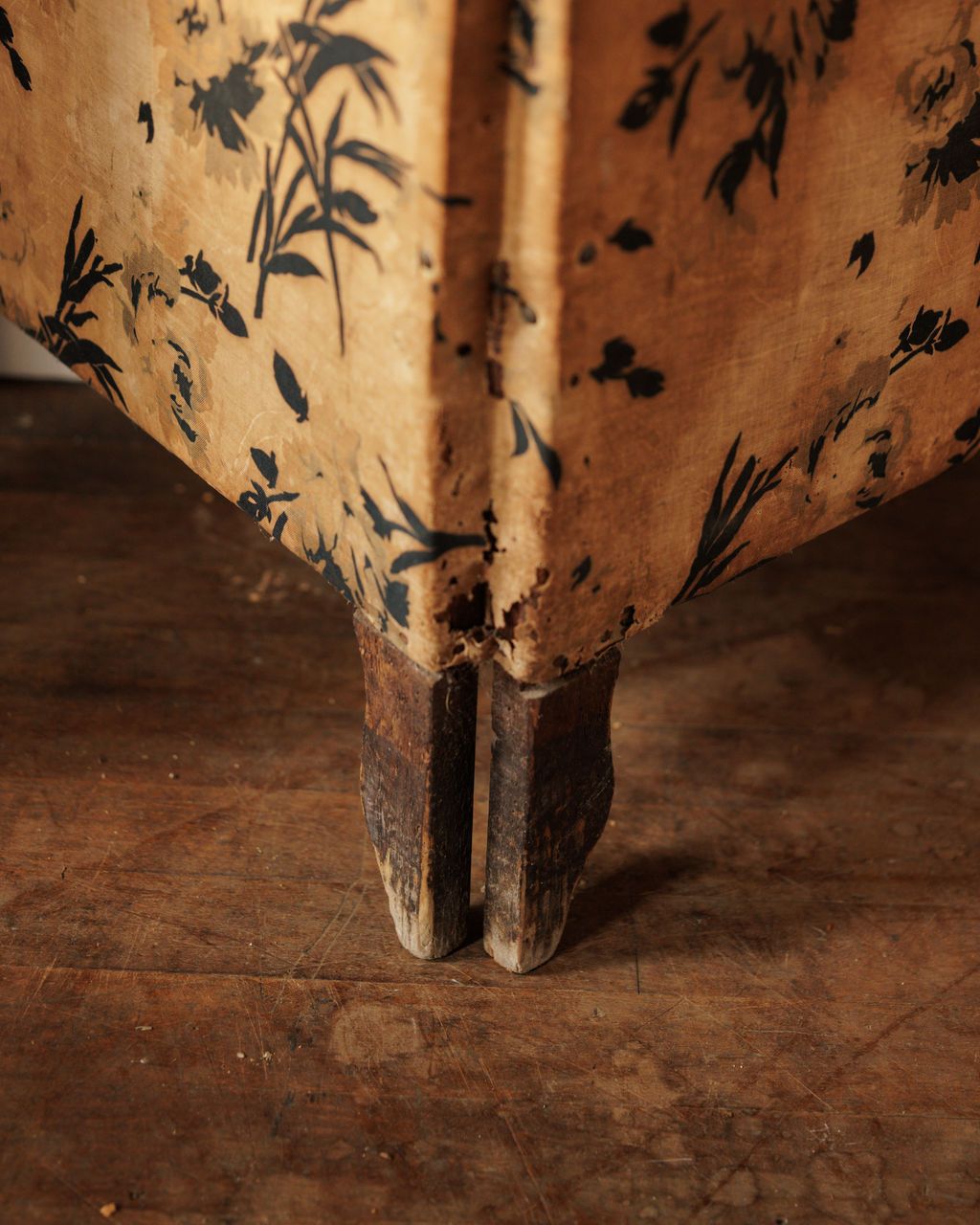 Voilà le drame! This late 19th-century Spanish folding screen, found in a Catalonian masia, commands attention with its fabric-wrapped hardwood frame patterned in moody florals and leafy silhouettes. Folding screens like this have long doubled as both functional dividers and decadent décor, tracing back to their introduction from East Asia into European interiors during the Renaissance, where they quickly became fixtures in boudoirs and salons for their theatrical flair. The fabric here shows its age with small rips and worn spots, but that patina is the proof of a life well lived, shuffling between rooms and stories. Sylvie would plant it behind a bedframe as an instant headboard or swing it open to carve out a private nook in a studio apartment, the kind of piece that rewrites a room in seconds.