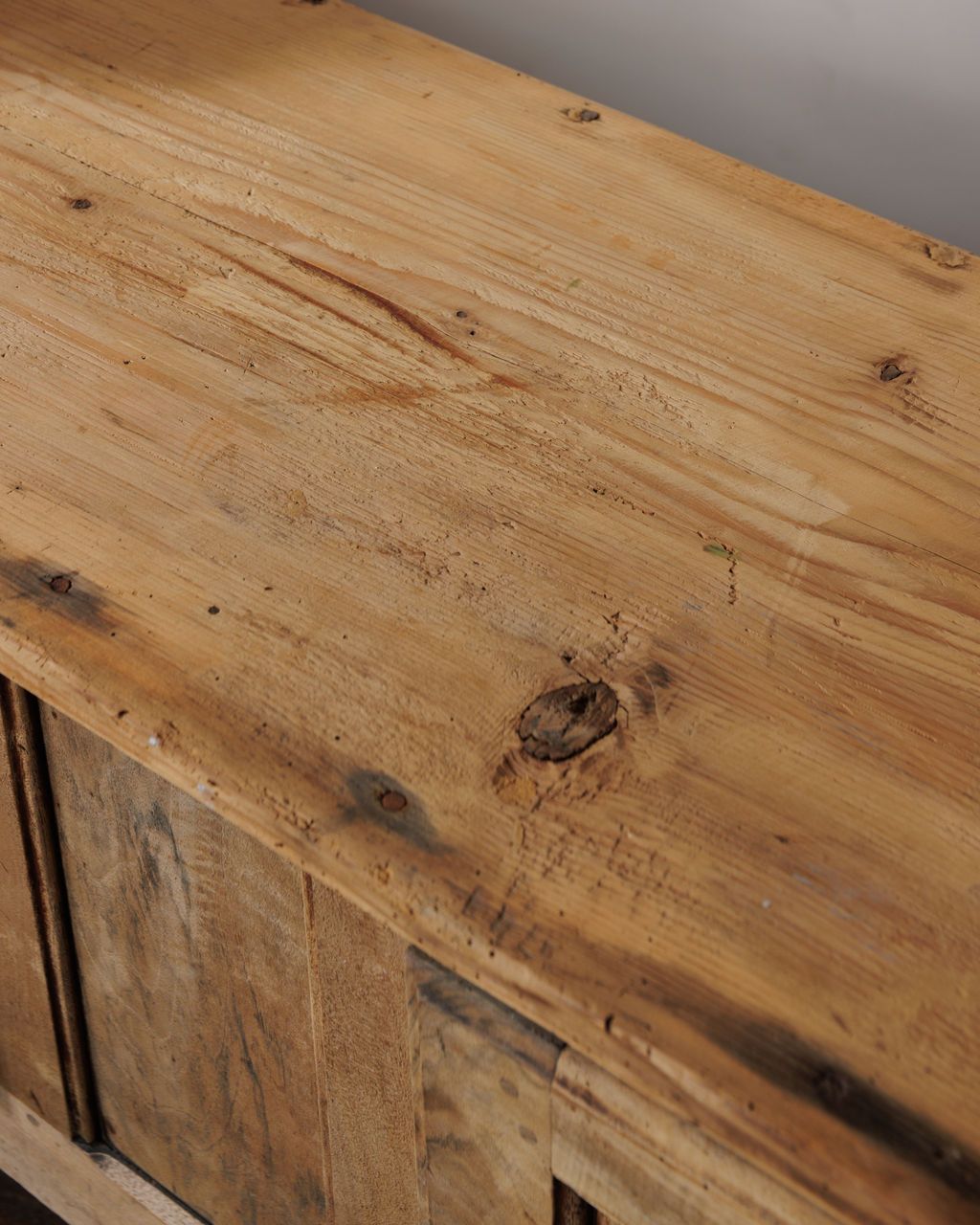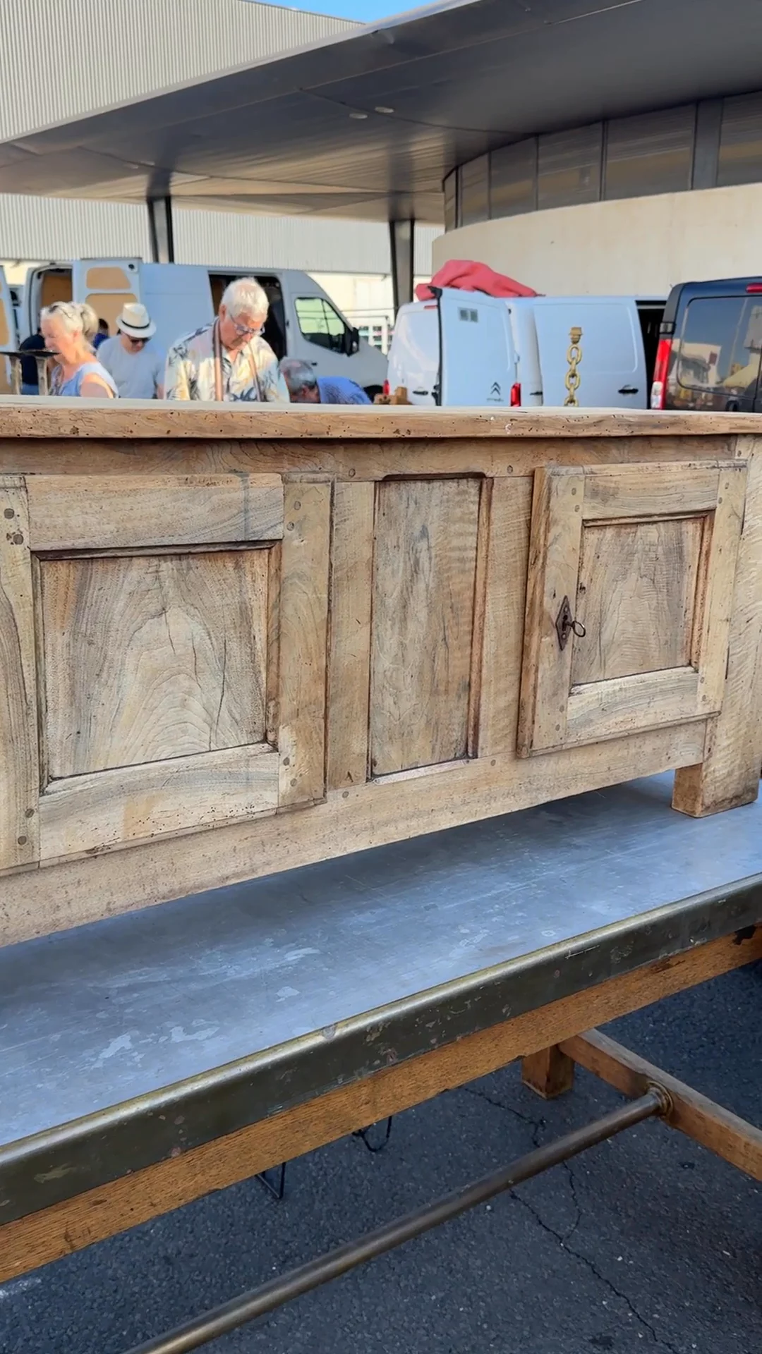 Meet the 19th century trunk cupboard, a piece that wears its history proudly in every stain and mark across its pale, raw oak surface. Originally crafted for practical storage in a rural French home, its stout proportions and paneled doors were designed to hold linens, tools, or household essentials, secured safely with its own original key that still survives today. In a modern home, Sylvie imagines this doubling as a low sideboard for books and ceramics, or at the foot of a bed to tuck away extra blankets.