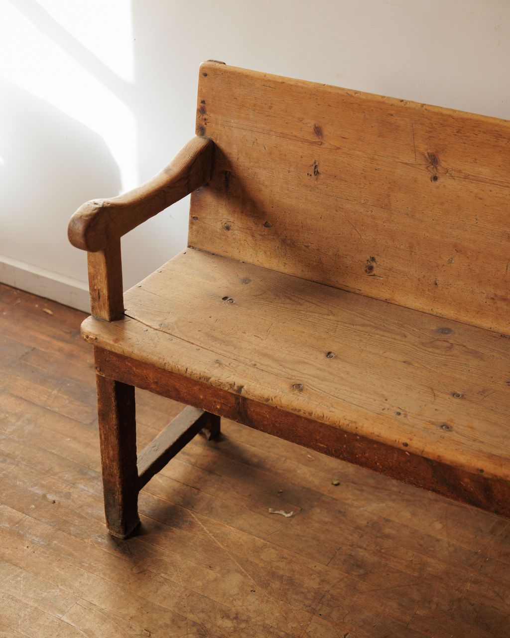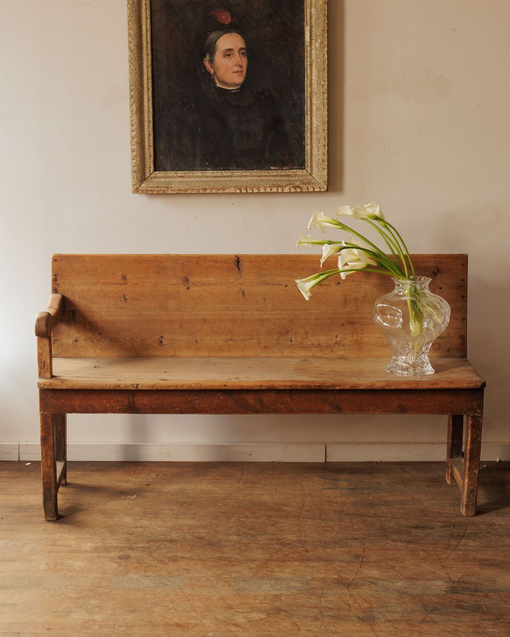 A bench with incense and hymns in its grain. Found in Avignon and sourced from a small church in the hills of Luberon, this wide-plank pine bench has a single armrest and a timeworn surface that speaks to decades of use. It’s perfect in an entryway for slipping off shoes or changing your sweater, the kind of everyday ritual Mrs. Rogers would approve of.