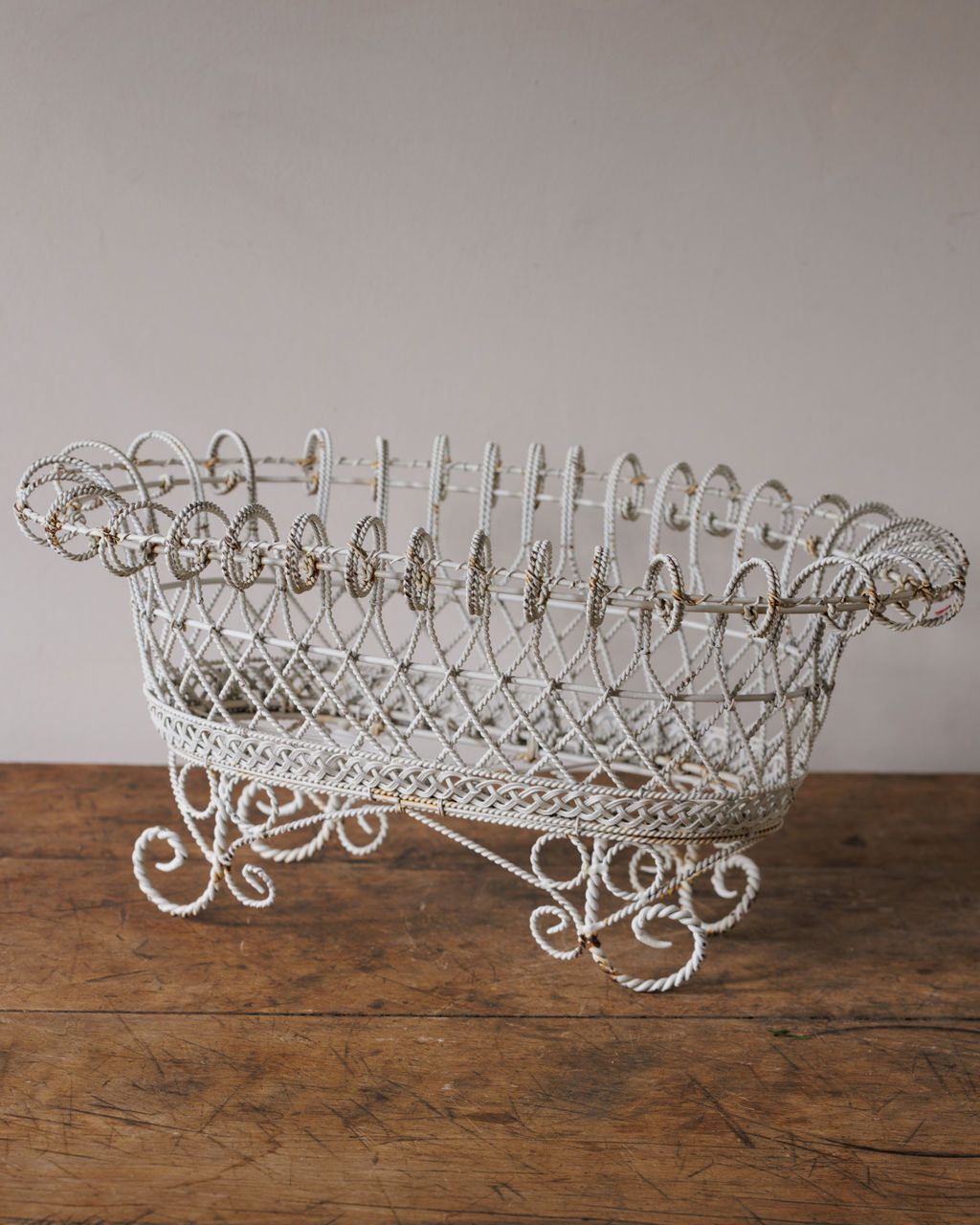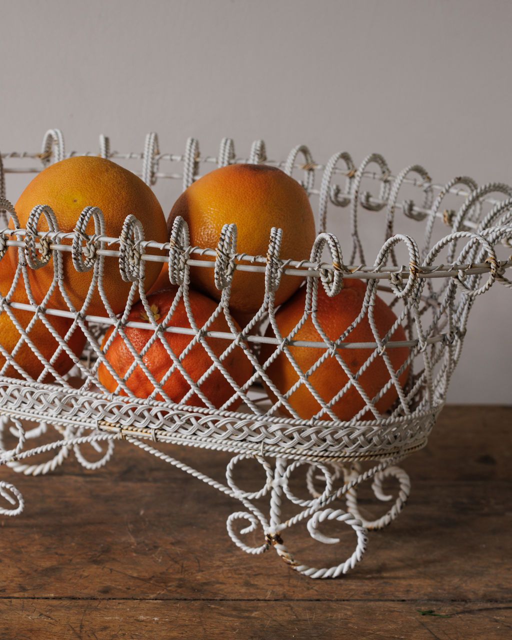 This 1920s jardin basket, unearthed in Montpellier, is a tangle of scrolls, twists, and latticework fine enough to feel like jewelry in iron. Once meant for flowers or fruit, it was built to dress up the everyday and give even grapes a stage. Sylvie keeps hers brimming with citrus, as if she’s just strolled back from the market on a sun-soaked morning.
