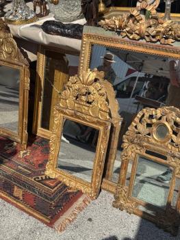 We found this Louis XV gilt mirror in Montpelier, and honestly, we’re still swooning. Hand-carved in the 19th century with basket weave, scrolling florals, and shell motifs at the crest, it’s elaborate in the best way. The gilt has mellowed to a warm glow, and the mirror shows the soft blur of age. Sylvie loves it leaned against the wall above a console where it quietly steals the spotlight.