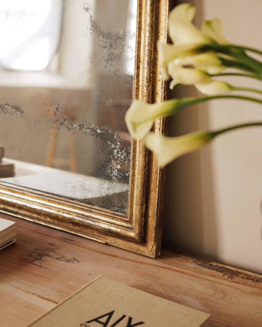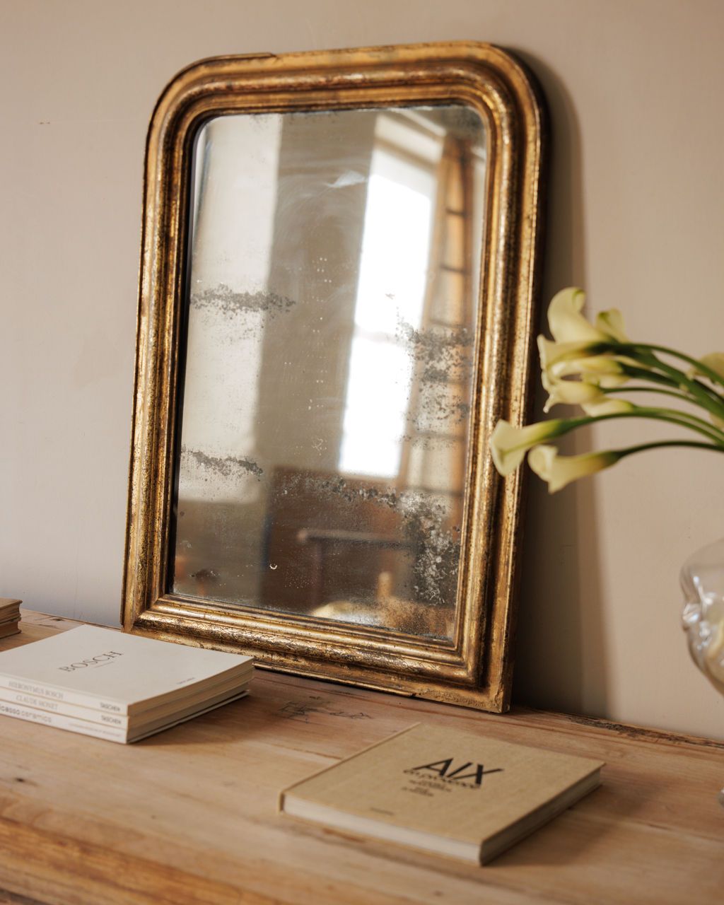 Once the centerpiece of a 19th-century salon, now just showing off. Dating to the mid-19th century, this Louis Philippe mirror features its original antique glass, softly freckled with age and framed by gentle curves. The gilded frame is characteristic of the Louis Philippe period, which celebrated refinement and balance over elaborate decoration. These mirrors became staples of well-appointed homes - simple, balanced, and endlessly adaptable. Sylvie loves this one for its restrained shape and golden glow, the kind of piece that feels right in any room it lands.