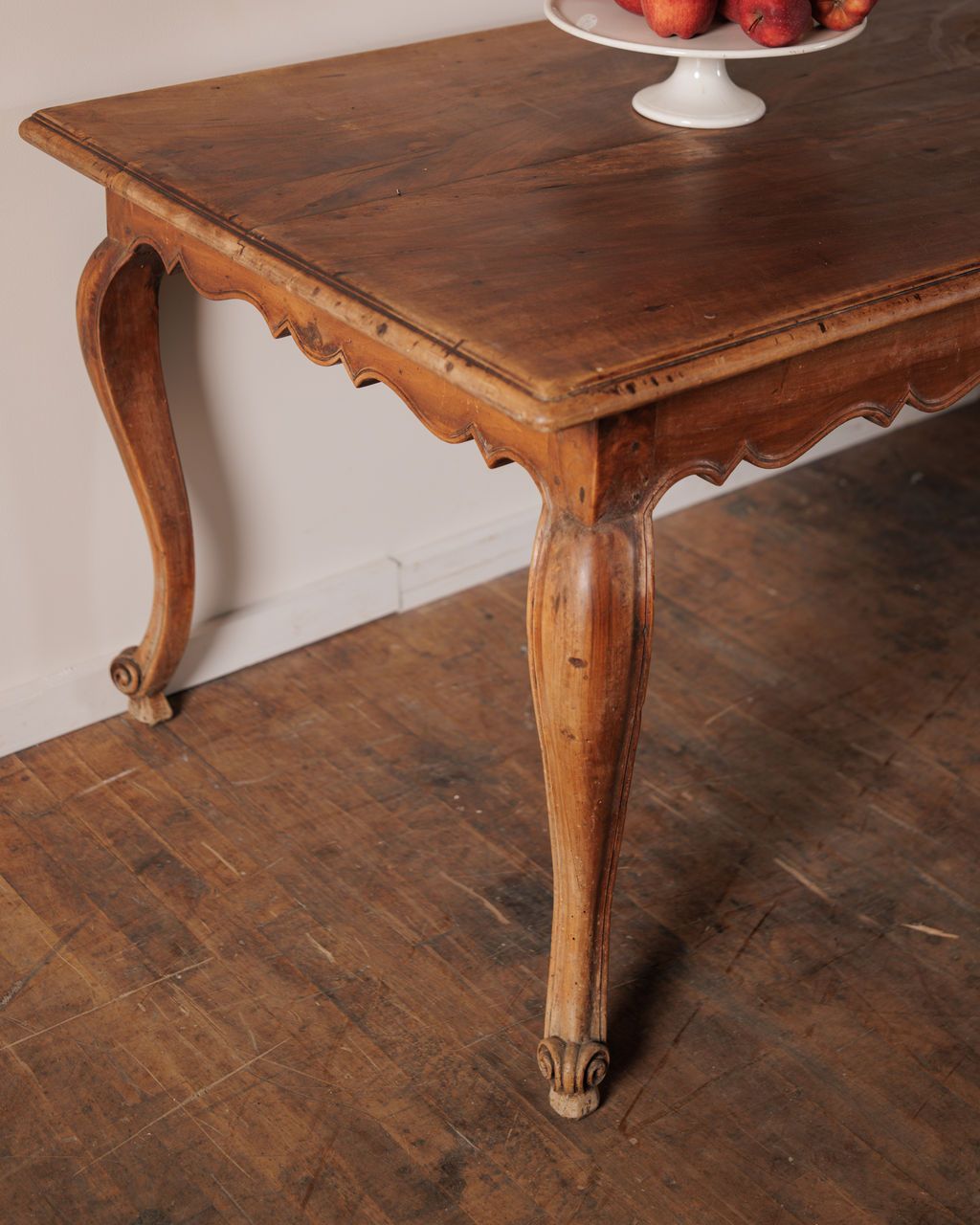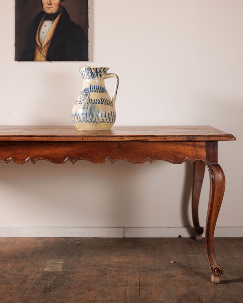 If you’ve been looking for an eight-seater dining table, this might be the one you wait for.Originally from a home in Maussane and found in Villeneuve-lès-Avignon, this scalloped dining table has undeniable presence - a rhythmic carved apron, elegantly curved legs, and a top meant for use, not reverence. Tables like this anchored French homes for generations, hosting everyday meals, long conversations, and the kind of family gatherings that inevitably drift late and end in laughter.