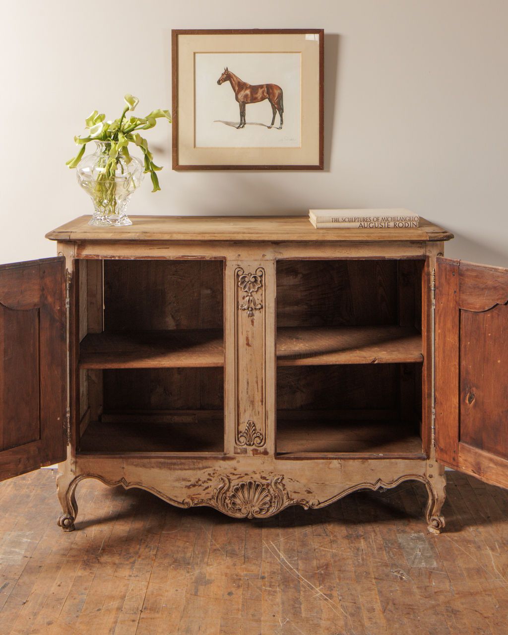 Sylvie spotted this cabinet in Avignon and didn’t even hesitate. A 19th-century oak piece with hand-carved panels, a scalloped apron, and those curled little feet that give it a bit of lift. The surface has a dry, matte finish from decades of use, with small scuffs and variations that come from being opened and closed a thousand times. Inside, the shelving is wide and practical, making it just as useful in a dining room as it is in a bedroom. Sylvie loves it as a storage piece that still feels collected and considered. Exactly as pictured.