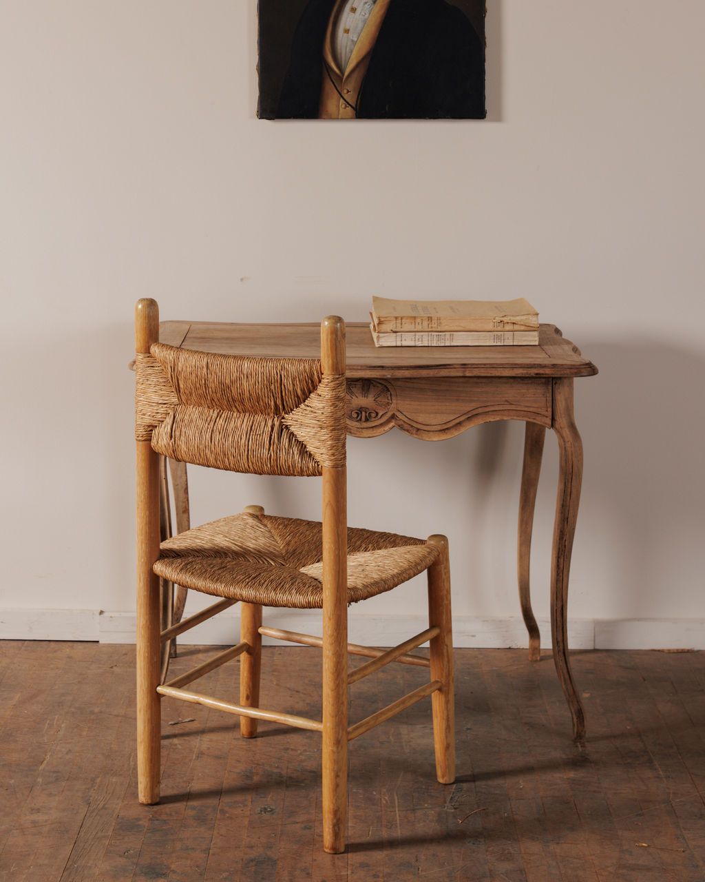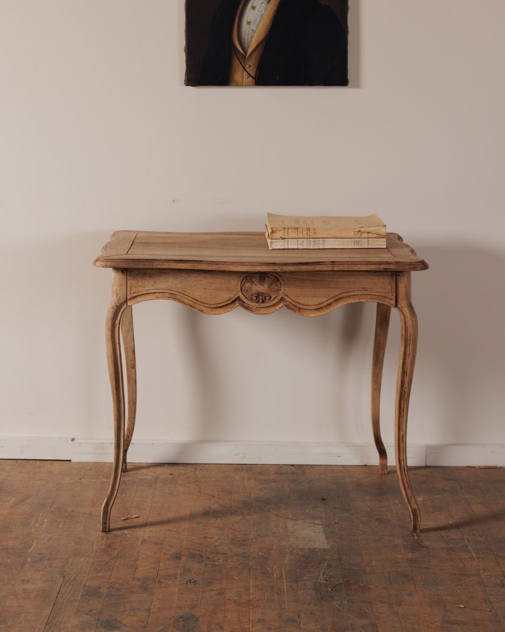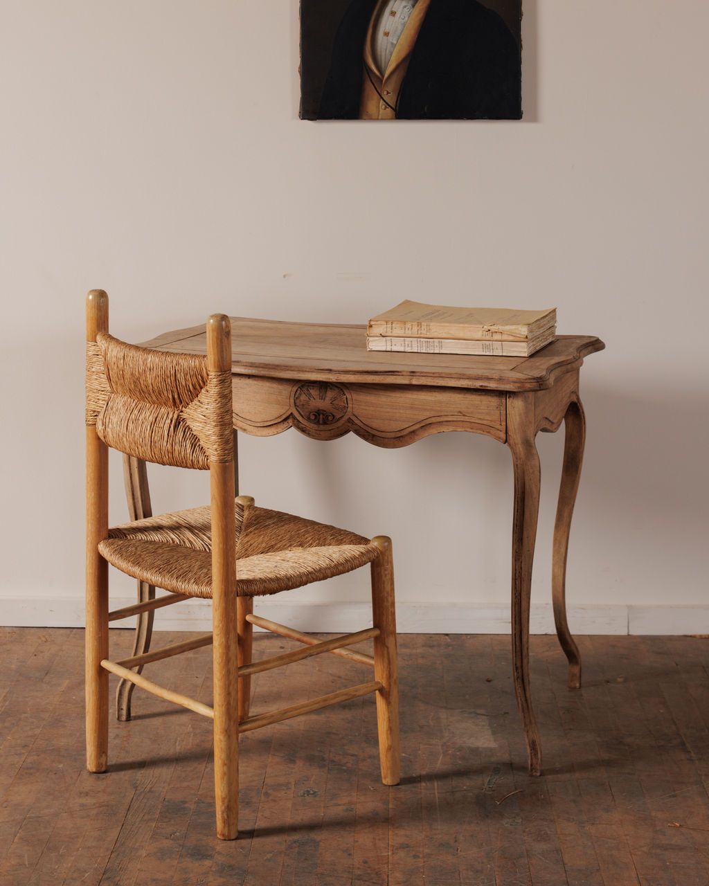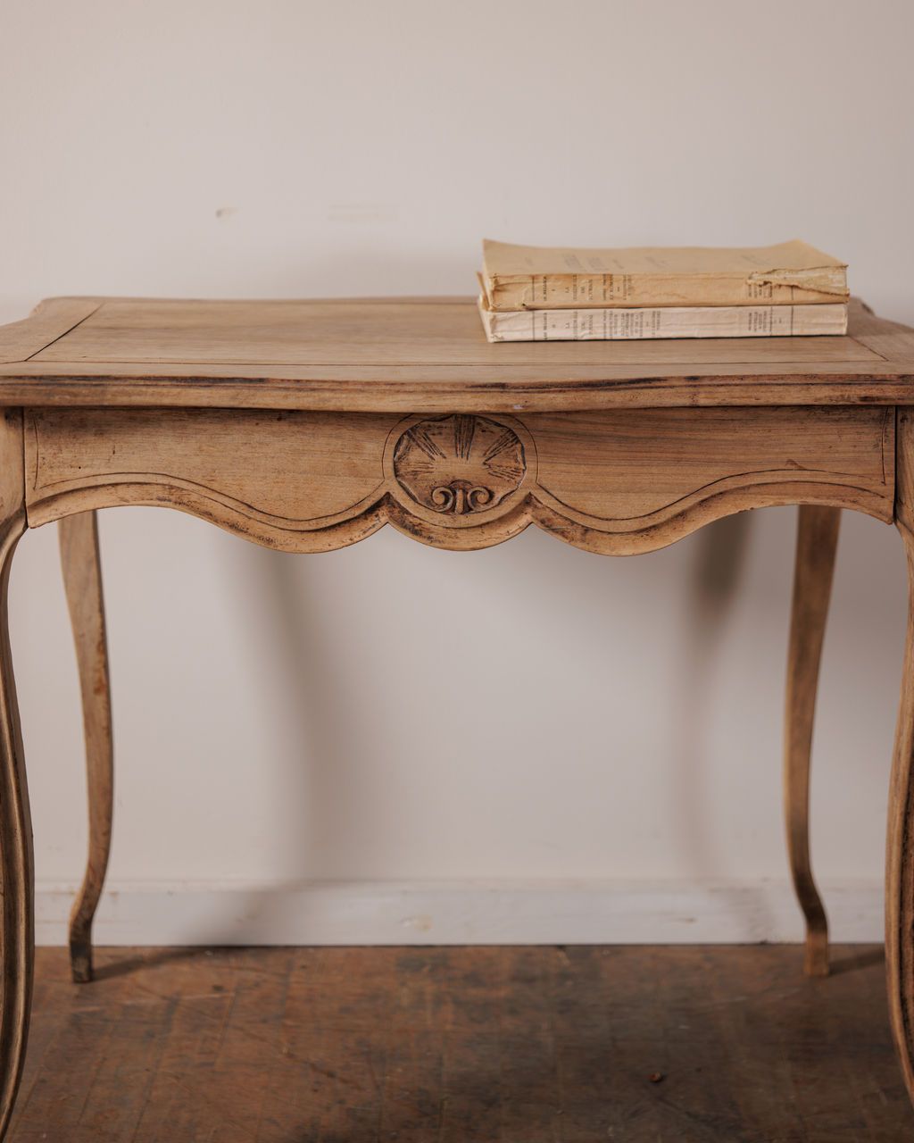 This 19th century oak desk has a quiet elegance that comes straight from its craftsmanship. Found in Avignon, it rests on slender cabriole legs and has a hand carved drawer front that disguises itself as a functional apron of a table. The hand carved front pulls open to reveal a perfectly sized drawer for all your make-up or correspondence. As a vanity it offers just the right amount of space for your morning or evening routine, keeping things intimate and intentional.