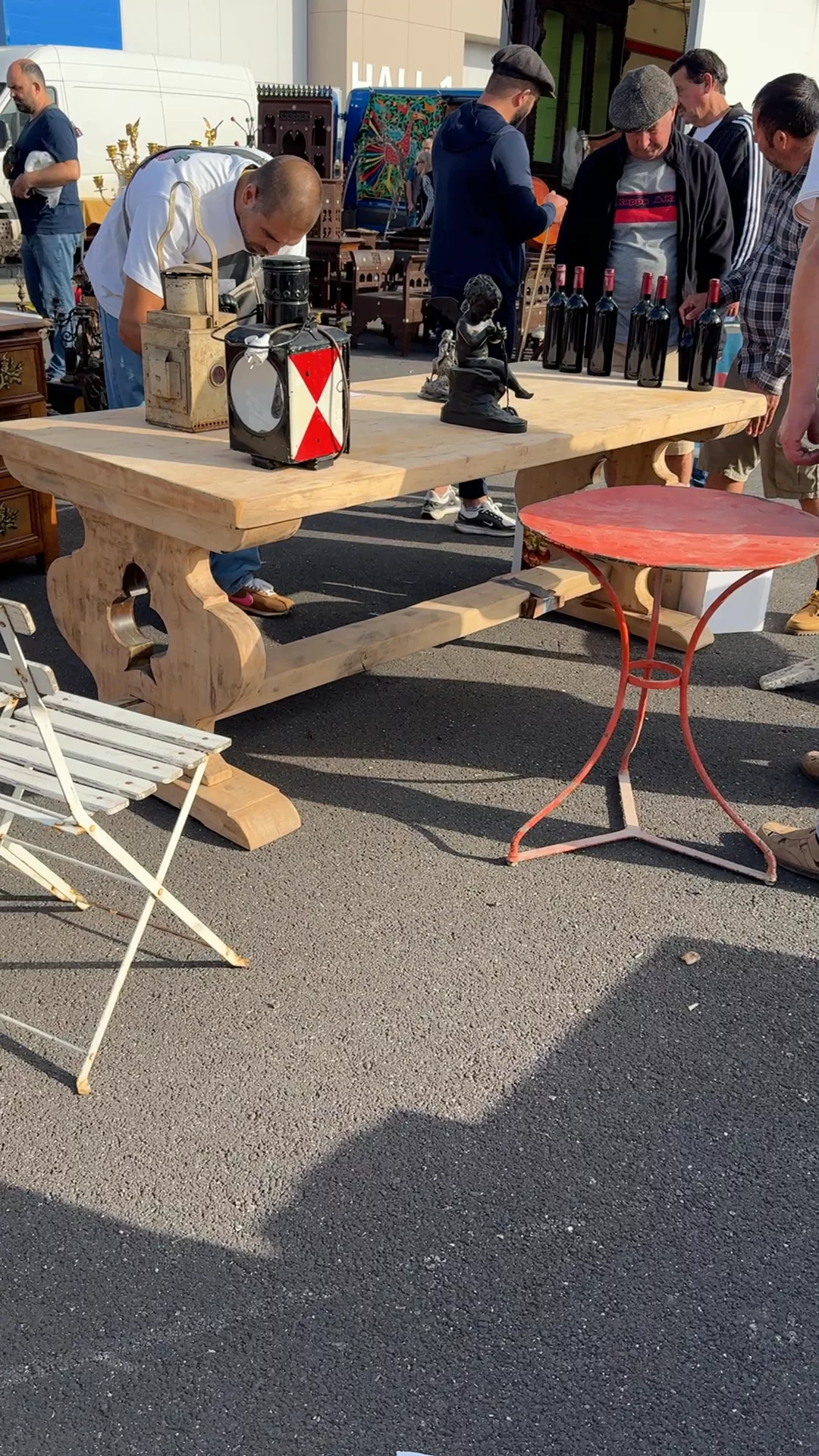 You don’t decorate around this table - you organize your life around it. Found in the French countryside, this monastery table is crafted from solid wood and finished to a pale, raw tone that lets the construction do the talking. Original hand-worked tool marks are visible throughout, especially across the thick plank top and the bold trestle base. Monastery tables were built for communal dining and long meals, sturdy enough to withstand daily use without fuss.
