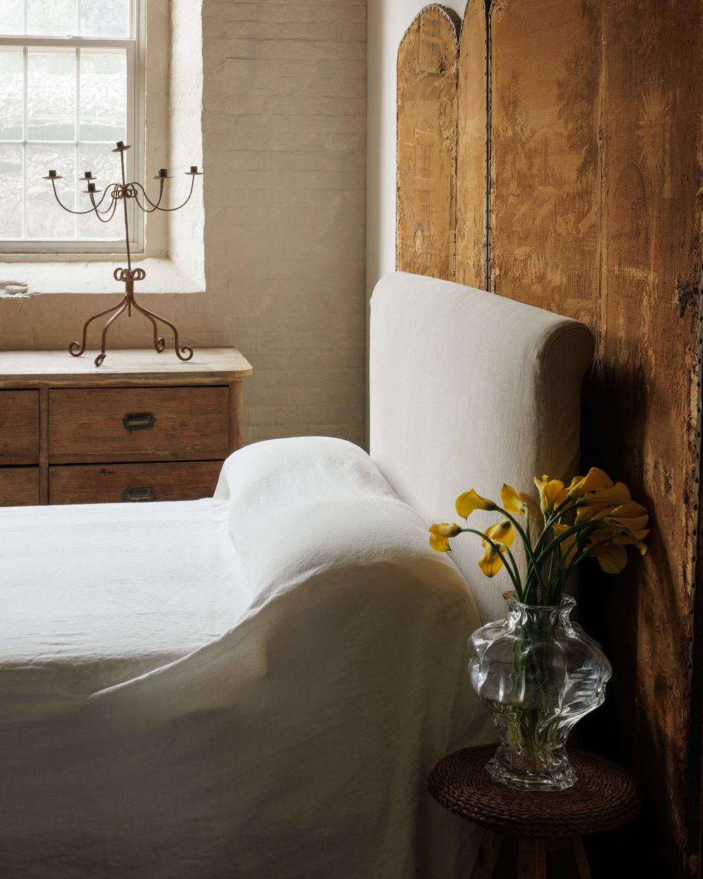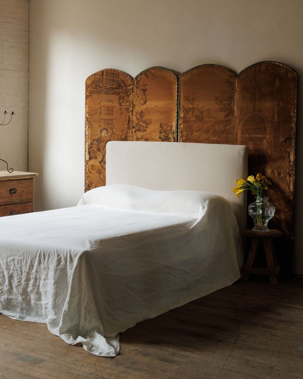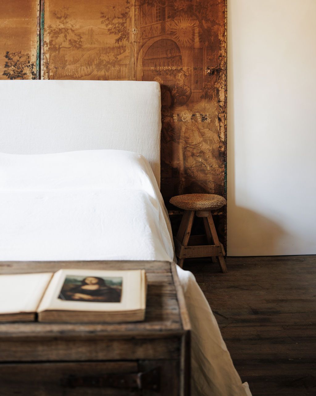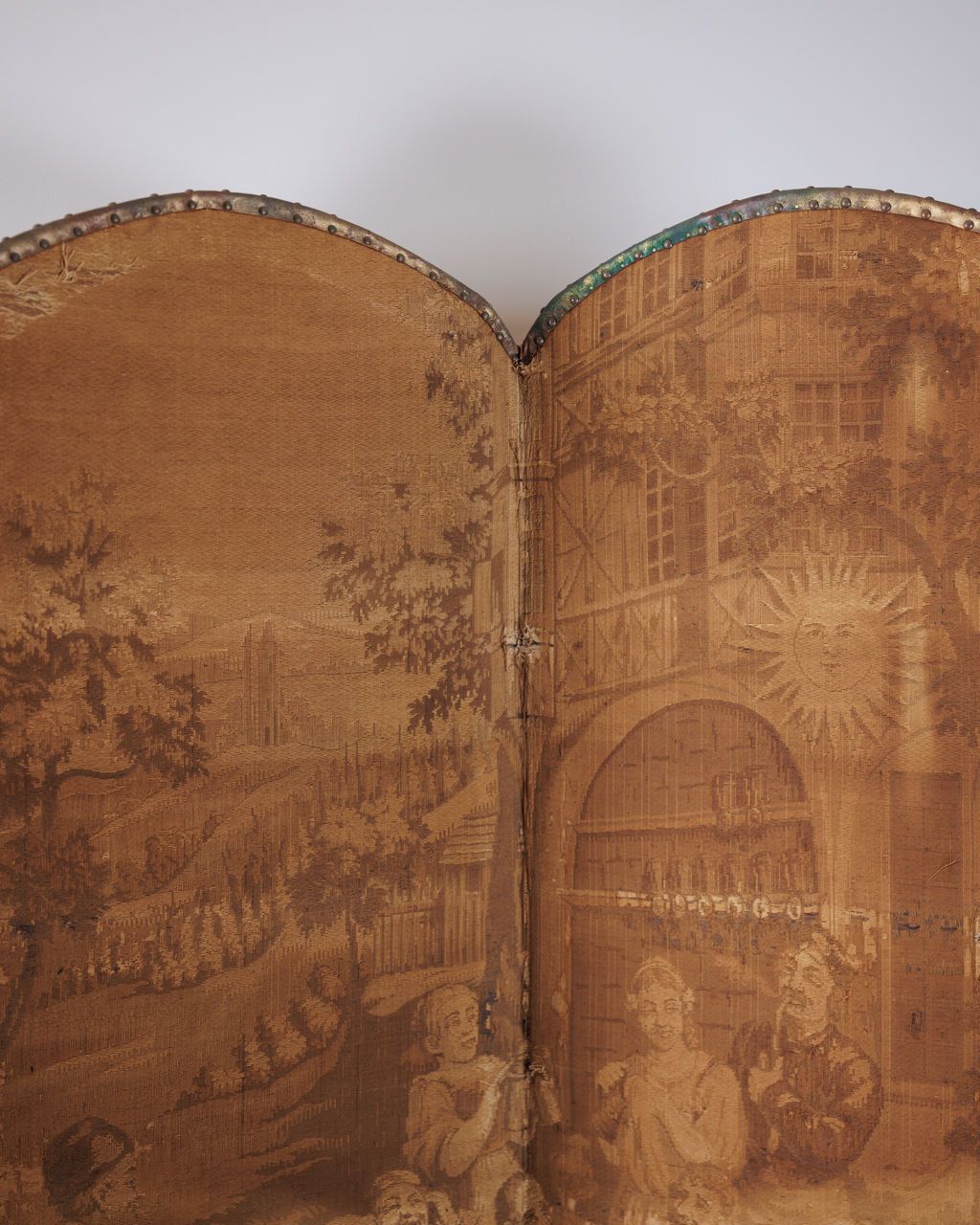 This one was a piece we almost kept for ourselves. This four-panel Italian screen carries a sweeping pastoral scene across its surface, each panel unfolding like a chapter from a well-traveled storybook. The tapestry’s age is written in its tears, loose threads, and gentle sun-fading, all of which only deepen its authenticity. Originally made to divide rooms and buffer drafts in grand Italian interiors, it still brings tremendous atmosphere wherever it stands. Sylvie uses it as a headboard for a bed, where its layered imagery and worn texture instantly give a bedroom the feeling of a tucked-away European hideaway.