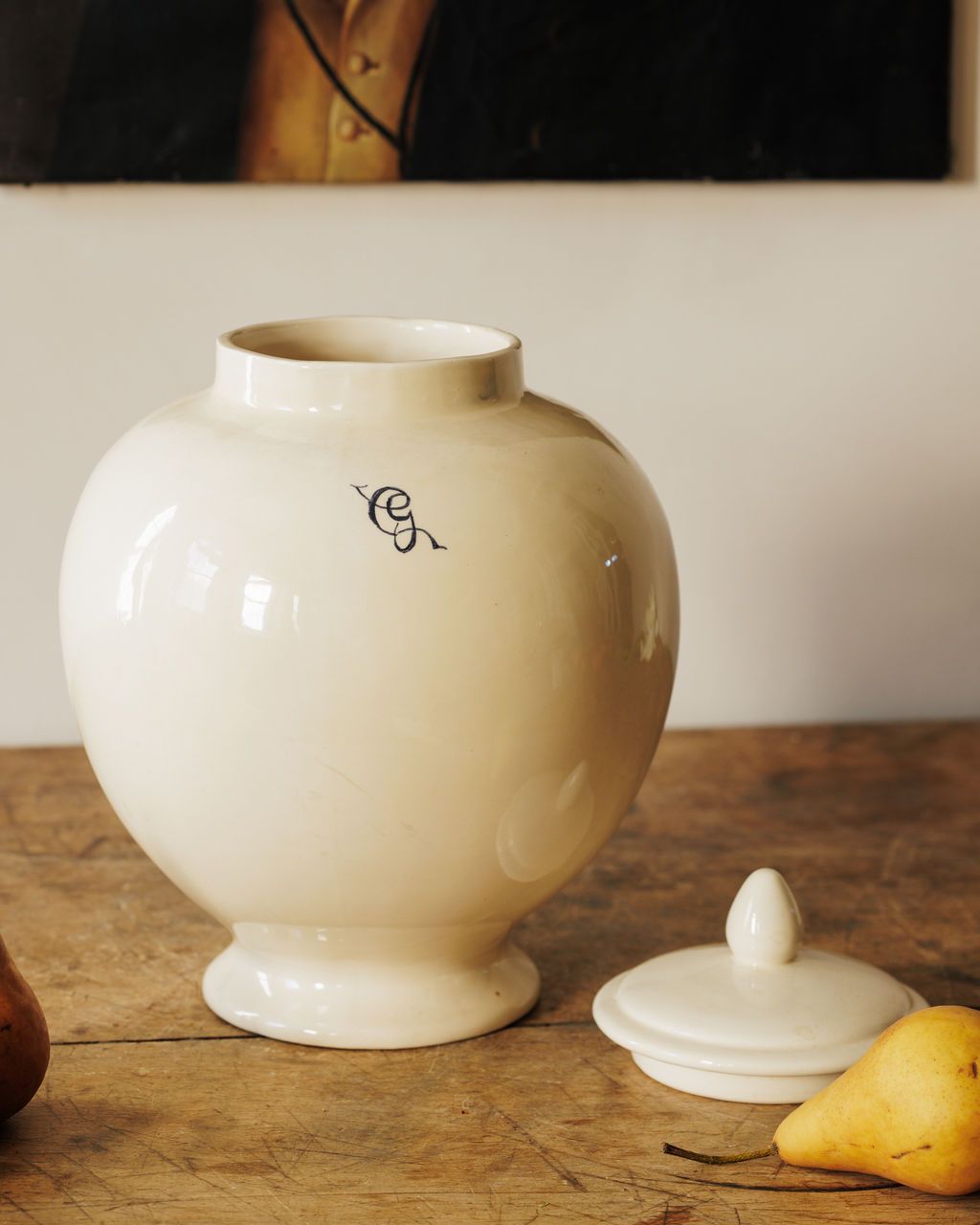 Found in Avignon, these French pharmacy pots have that perfect round, slightly weighty silhouette that only old apothecary pieces get right. Each one is handmade, so the shapes echo each other without matching. The pedestal base, the simple lid, the little monogram… it’s all wonderfully straightforward. Sylvie keeps hers on a bathroom counter or kitchen shelf holding whatever needs a nicer home - cotton rounds, tea bags, dried herbs. Sold individually, exactly as pictured.