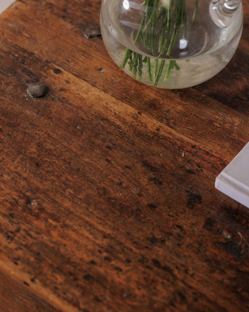 This is a beautiful sturdy little table. It has tiny flecks of green paint in the grain, probably because it was once painted green. As with many antiques, this piece may show gentle repairs, cracks, scratches, holes, years worth of patina, and stains - just the way we like it.