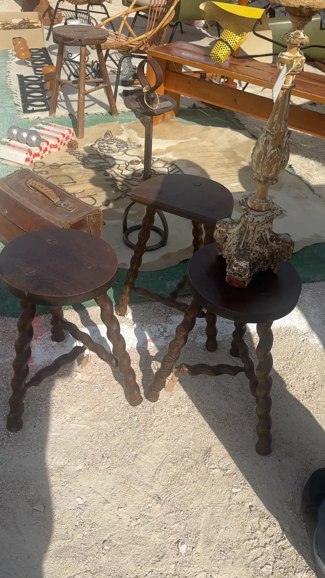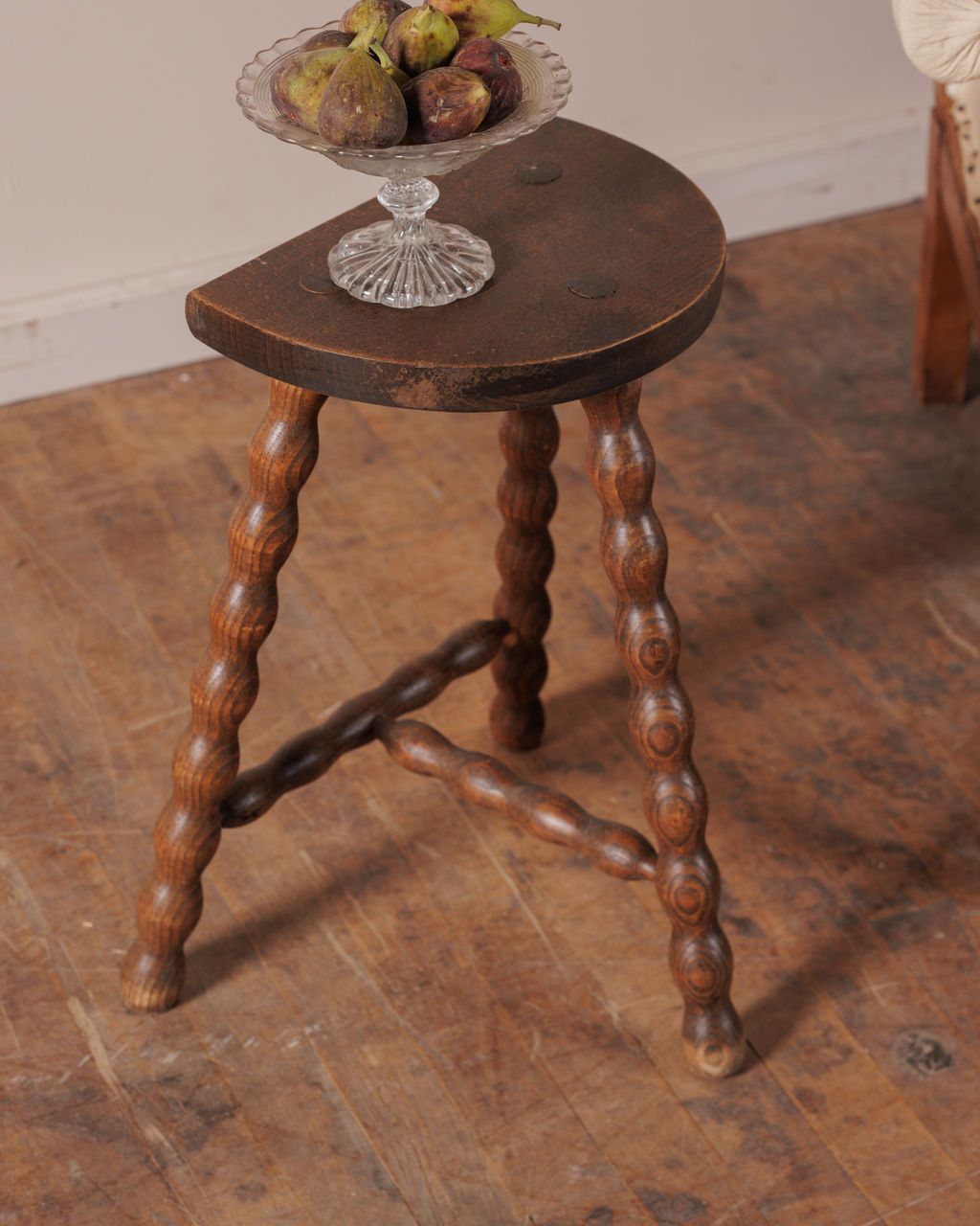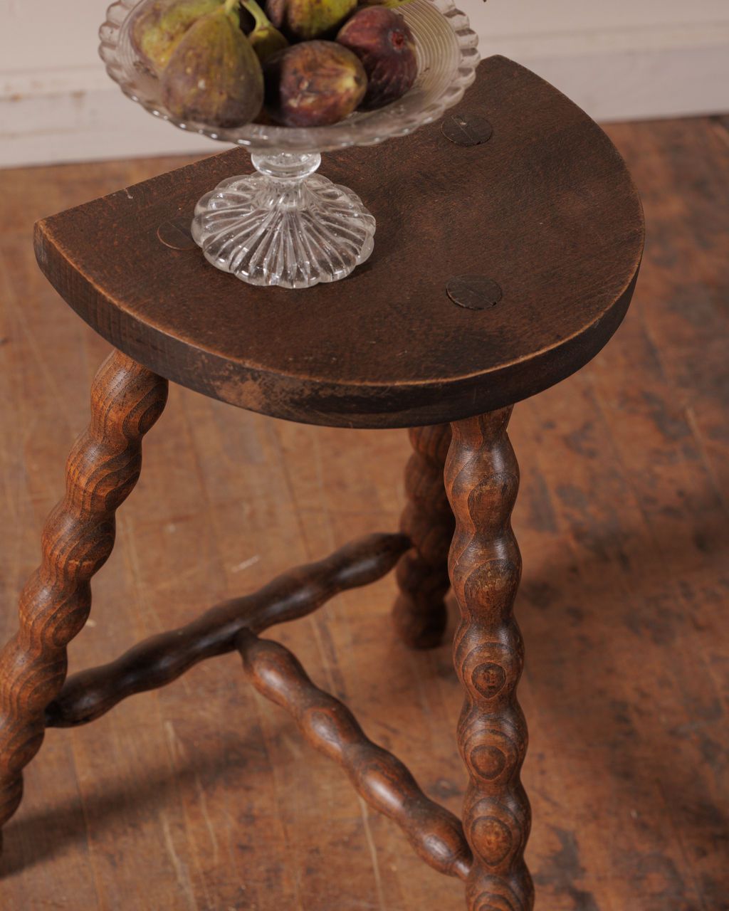 Found in Montpellier, this demi-lune stool has a straightforward half-moon seat and barley-twist legs, all in solid, lived-in oak. The stretchers are strong, and the feet show the kind of wear that comes from years on a farmhouse floor. Sylvie uses stools like this beside a chair, under a console, or as the small surface for a candle and whatever she’s currently reading.
